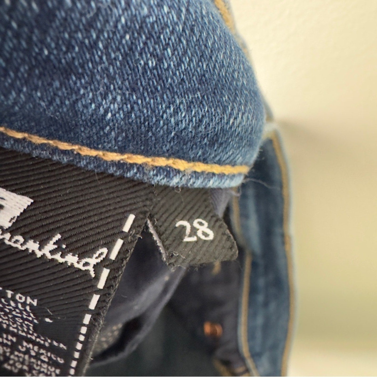 Stylish dark blue flare jeans. Perfect for a chic look. Comfortable fit.