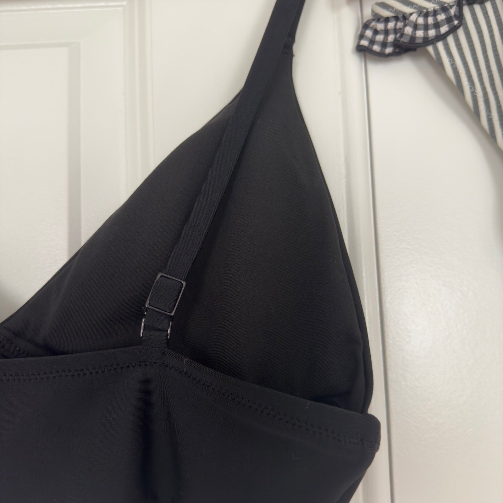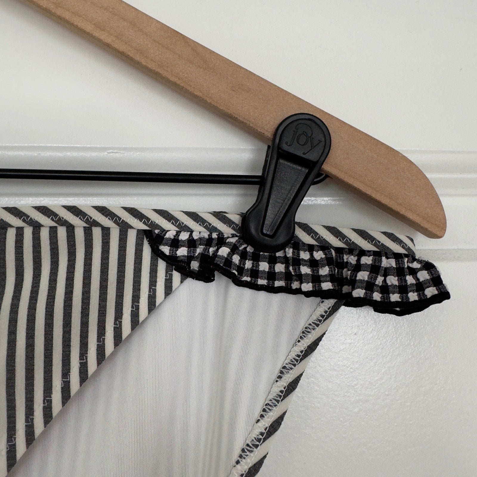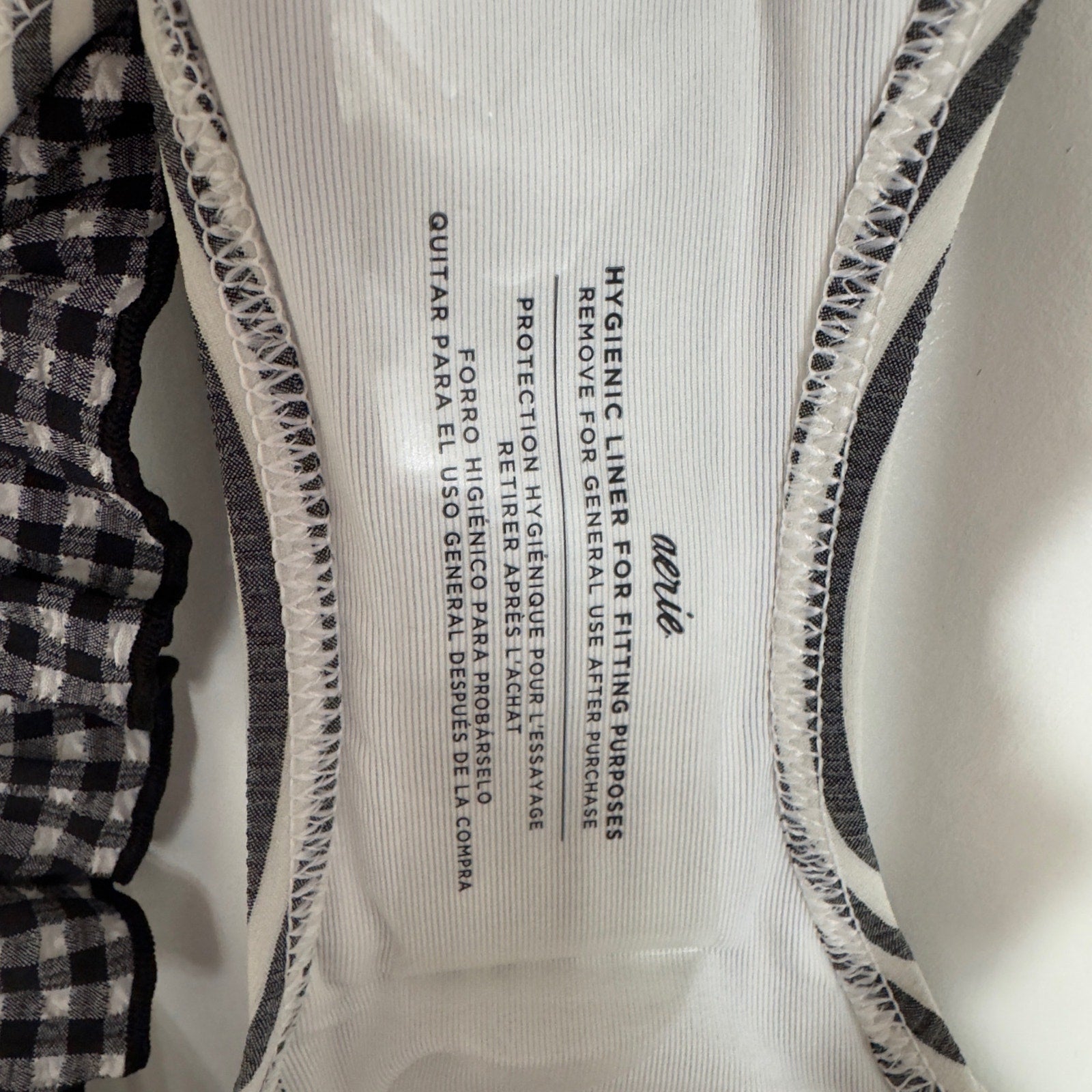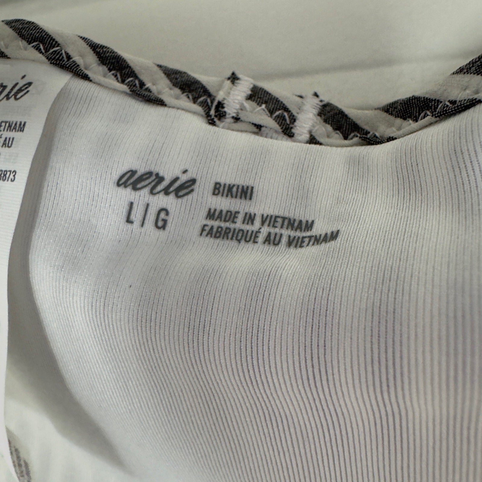 Aerie Bikini Swimsuit Set Triangle Top Striped Ruffle Bottom Black White Padding
