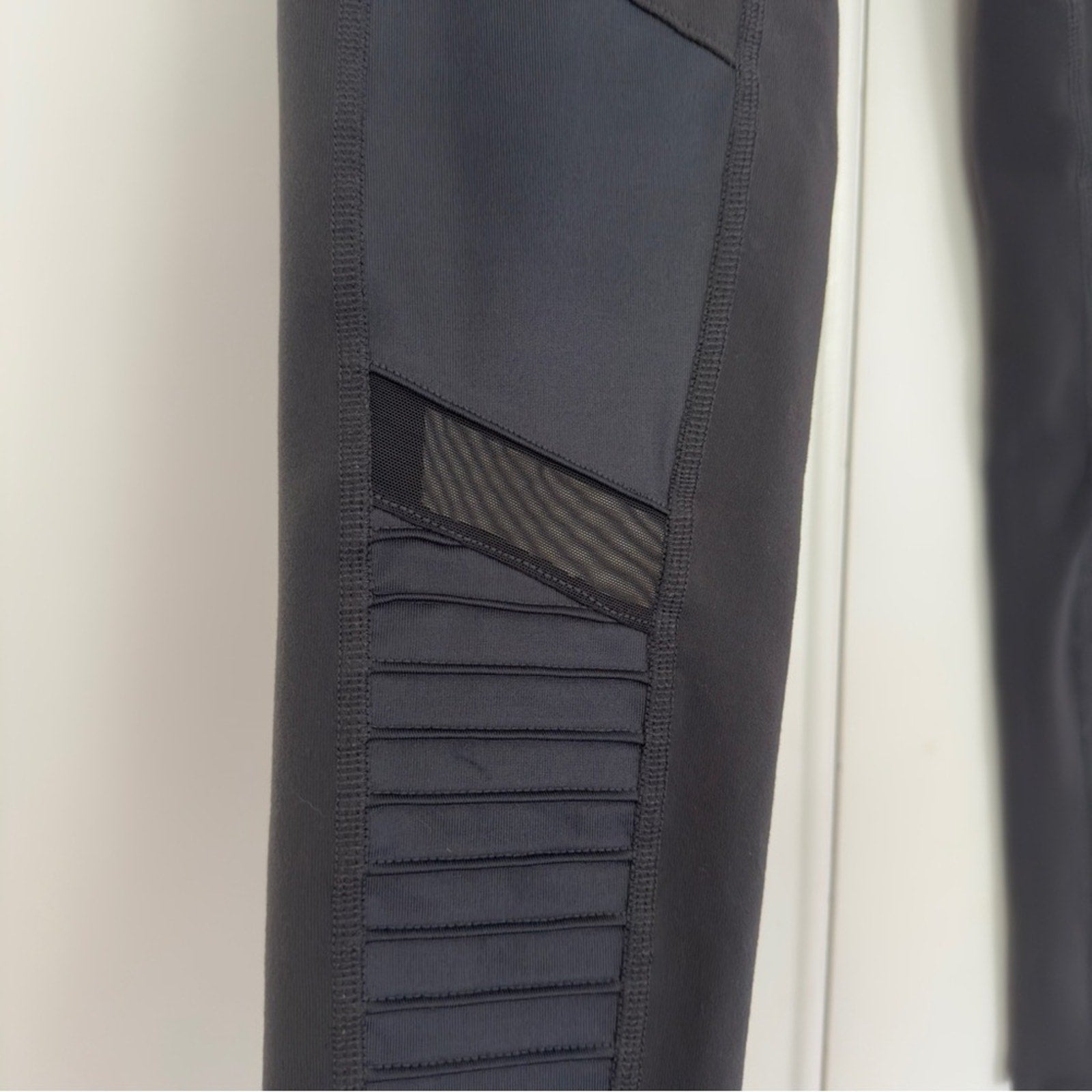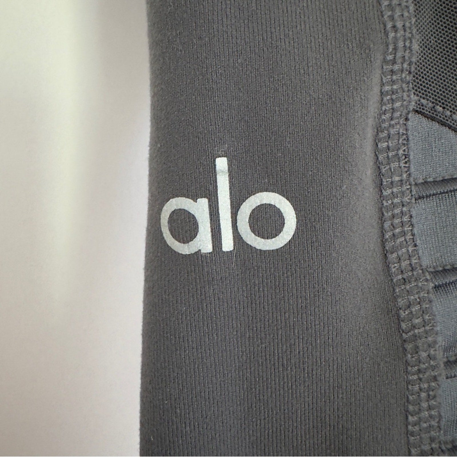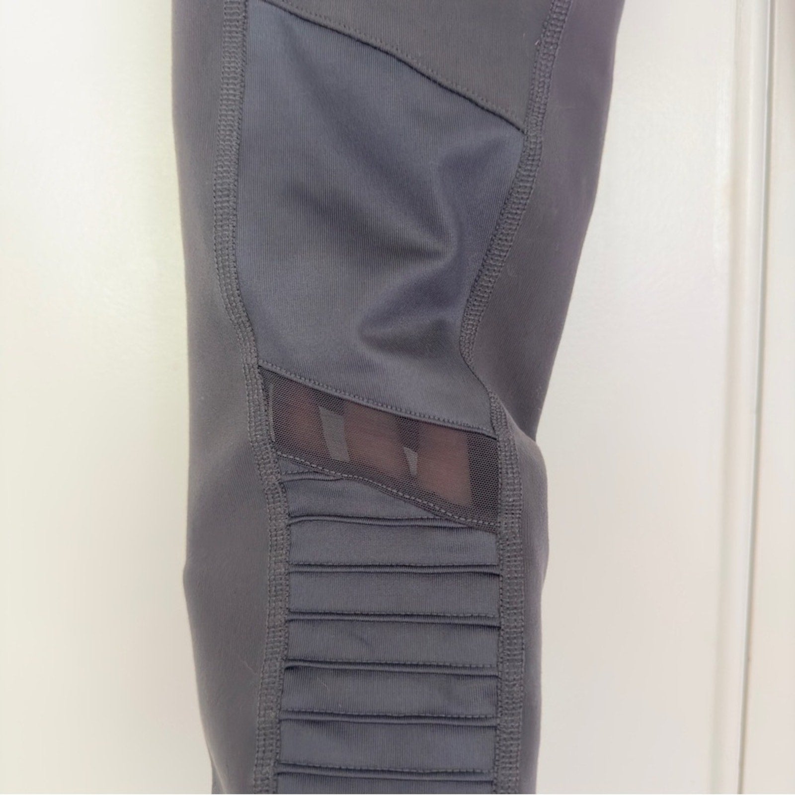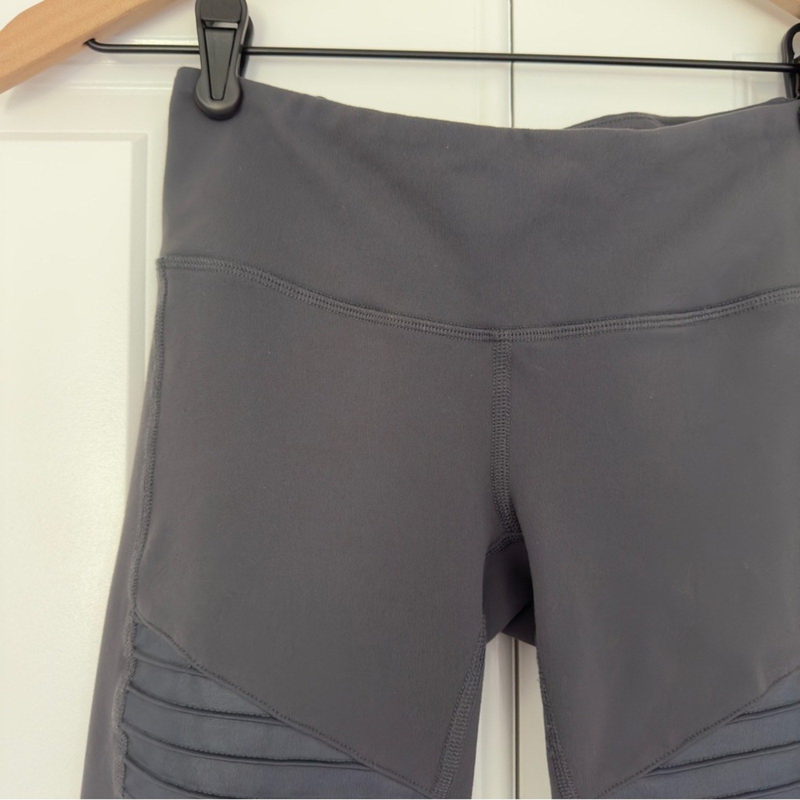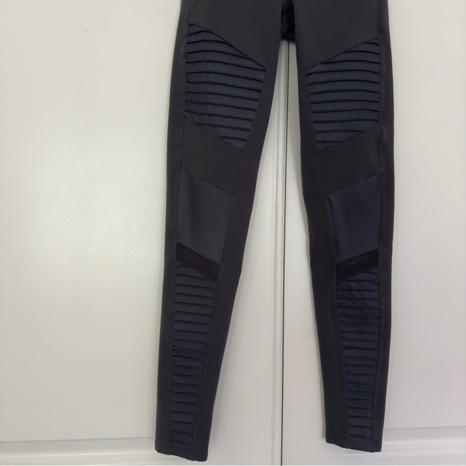Alo Moto Athletic Leggings Mesh Faux Leather Active Athleisure Activewear Gray