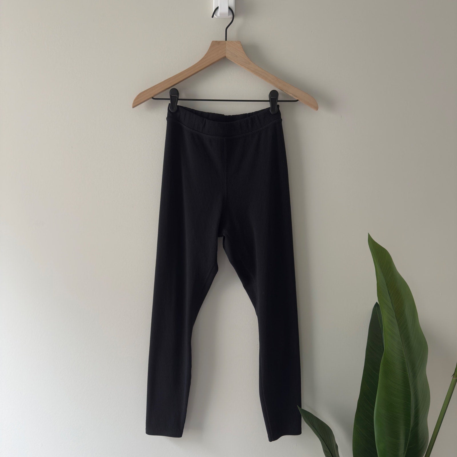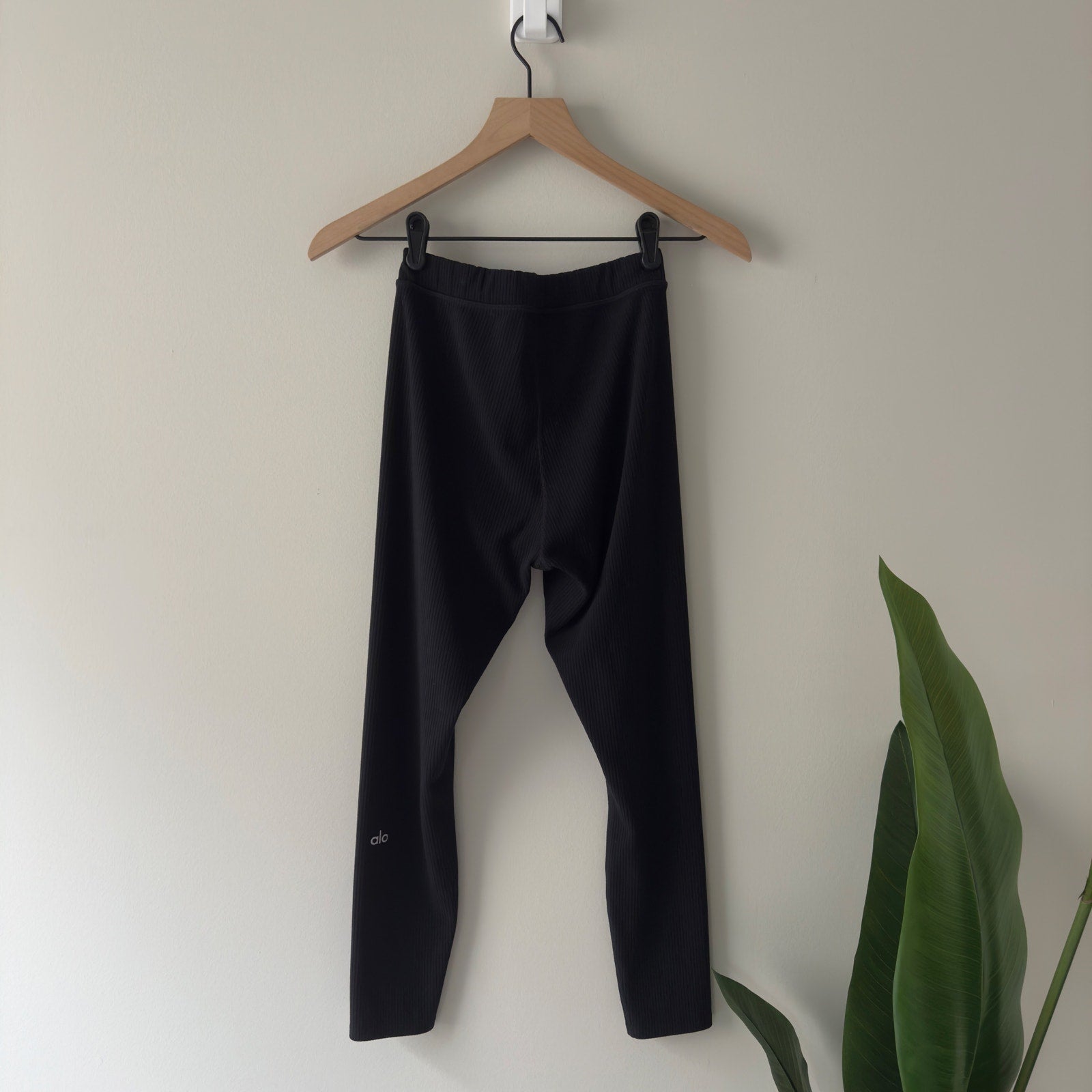 Alo Yoga Ribbed Leggings Black Stretch solid athletic Athleisure activewear EUC