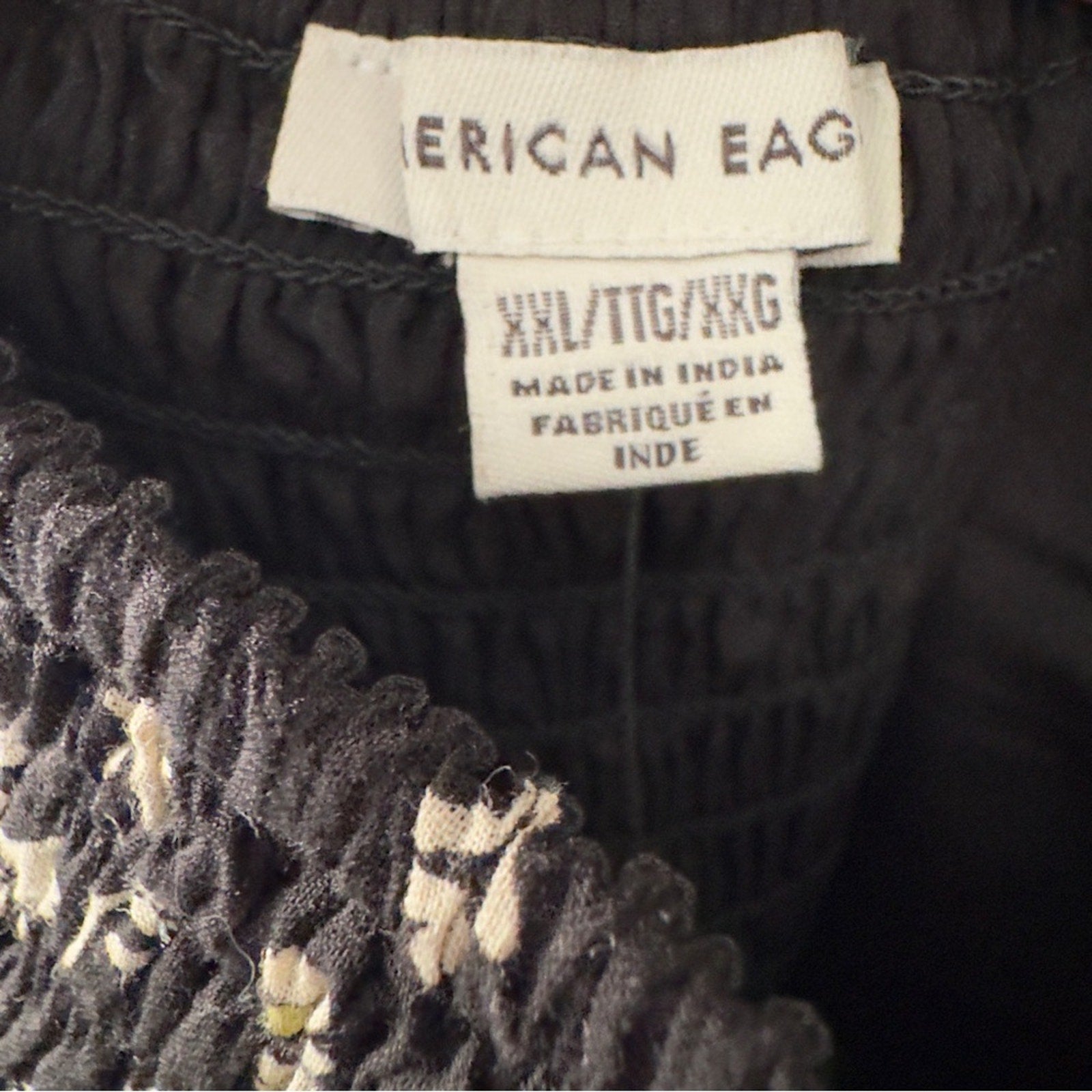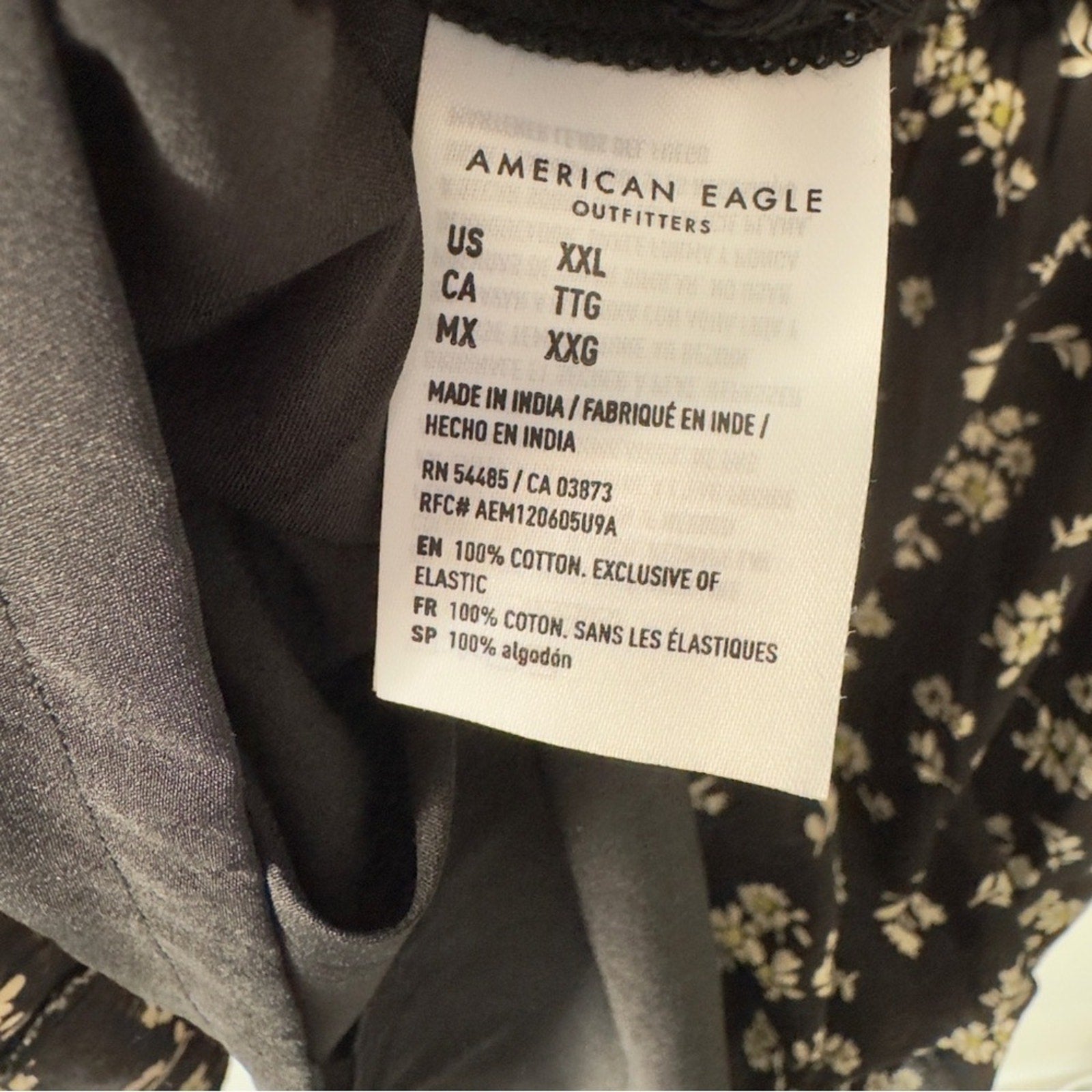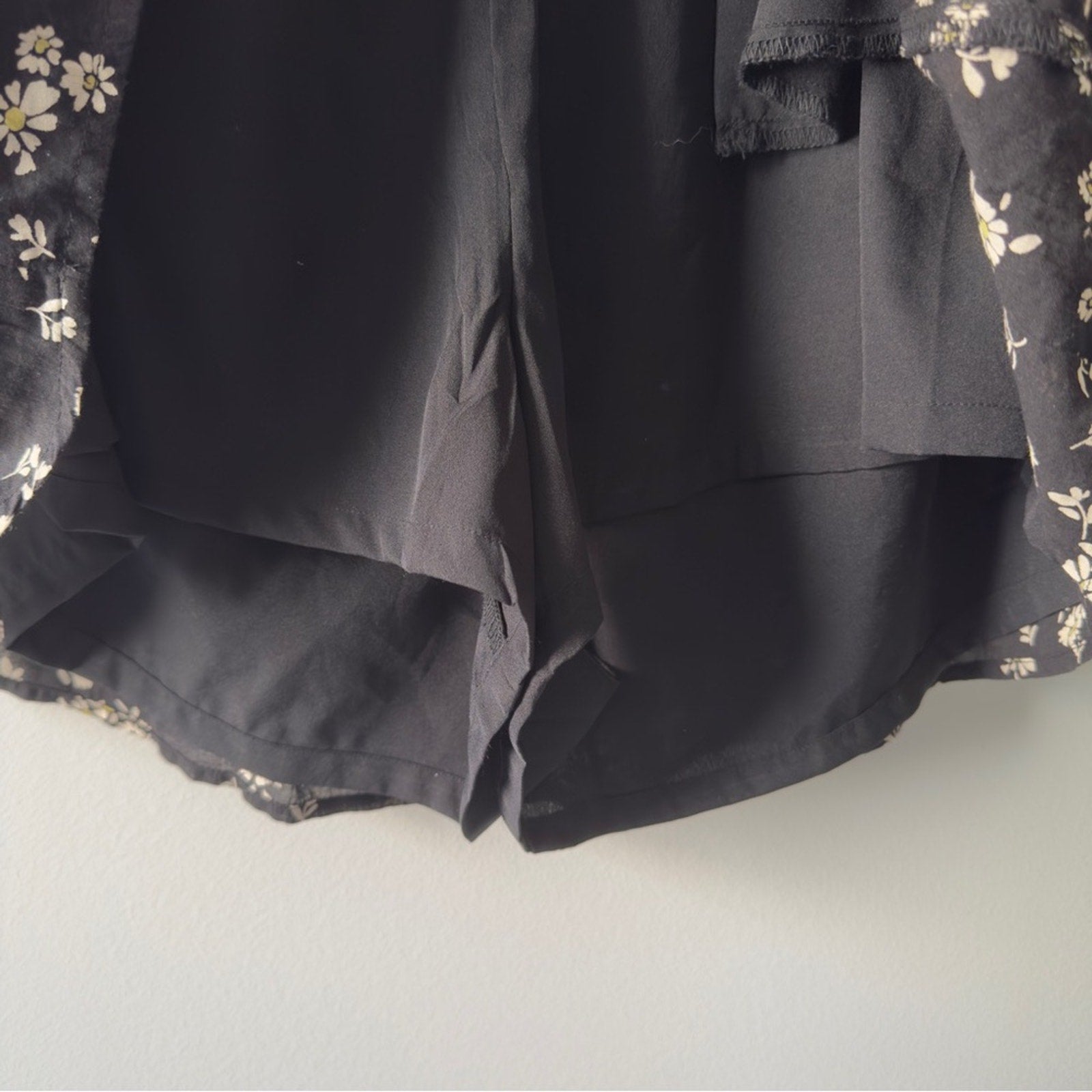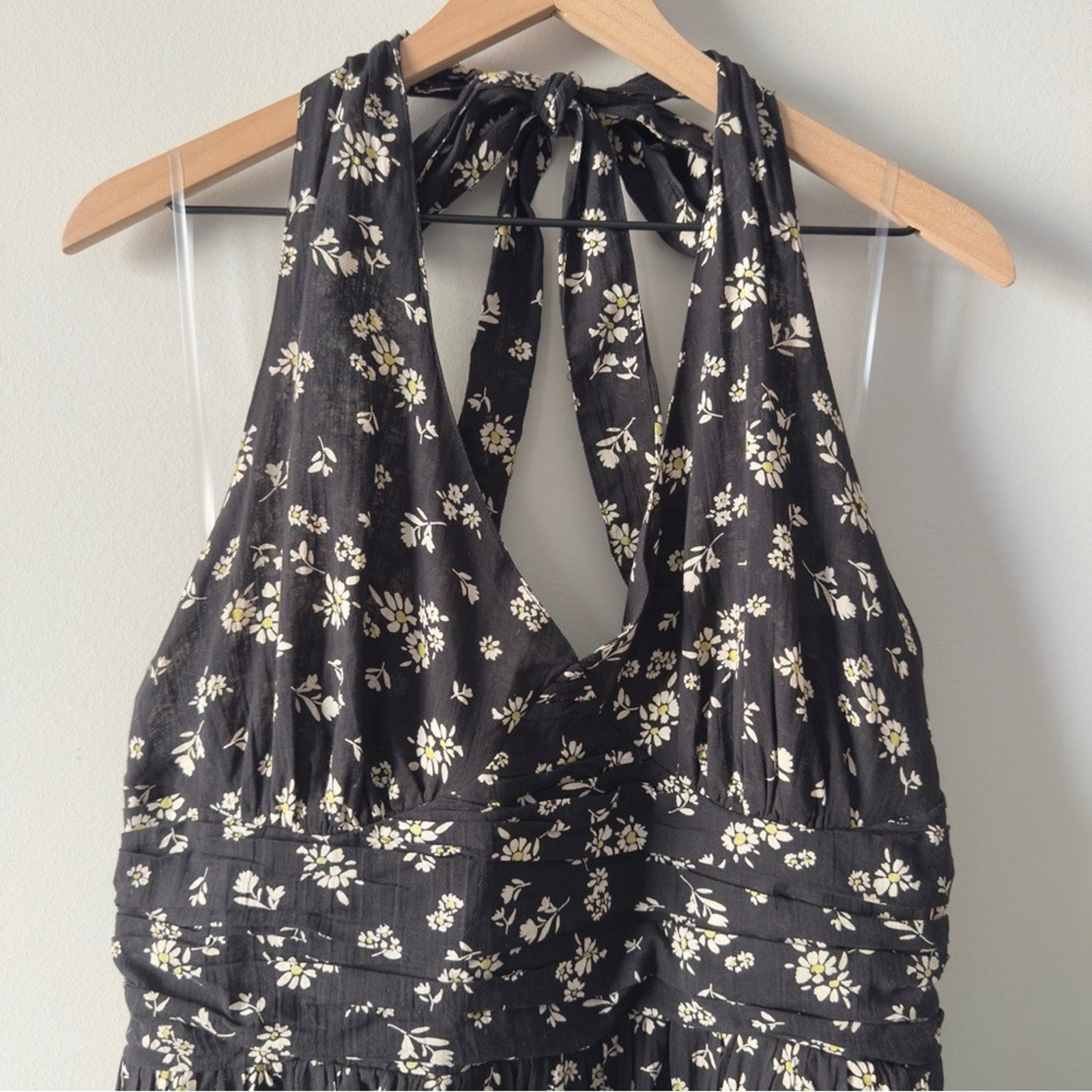 American Eagle Floral Halter Neck Romper Black and Cream Scoop V-Neck Tie Bow
