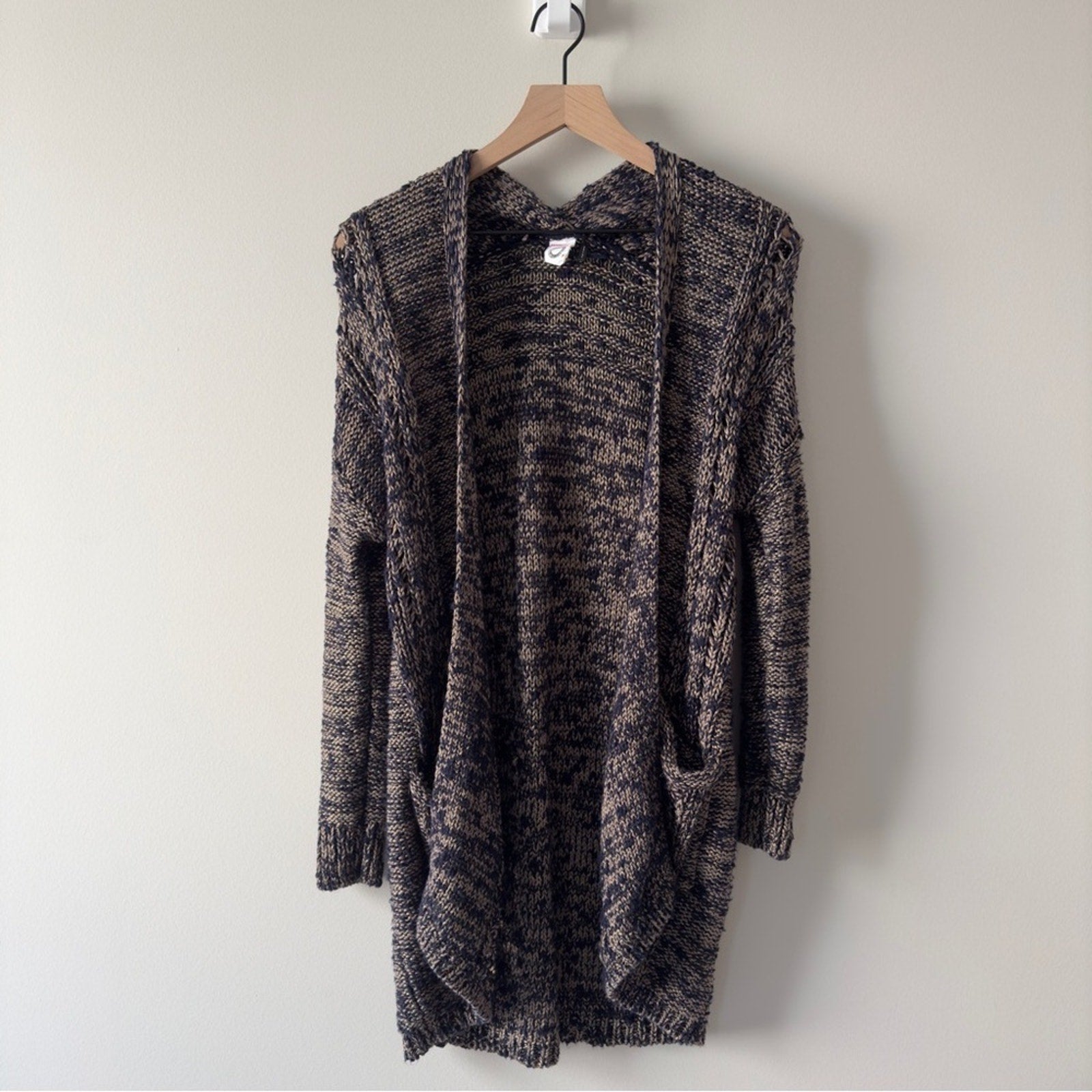 Anthropologie Akemi + Kin Metallic Pocket Front Tunic Cardigan Long Sleeve open