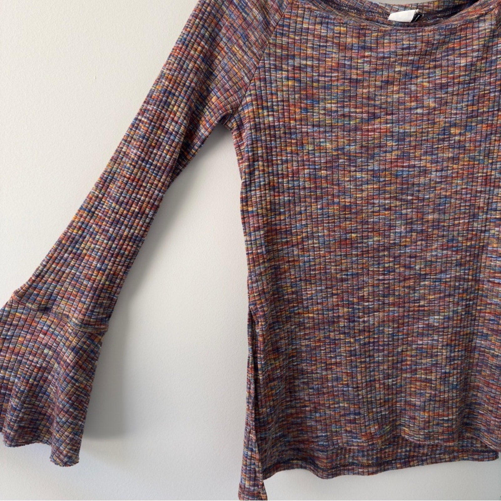 Anthropologie Akemi + Kin Rainbow Multicolor Knit Top long bell sleeves ribbed S