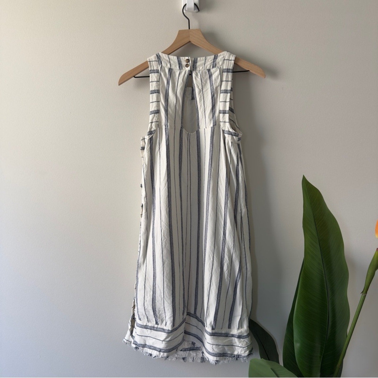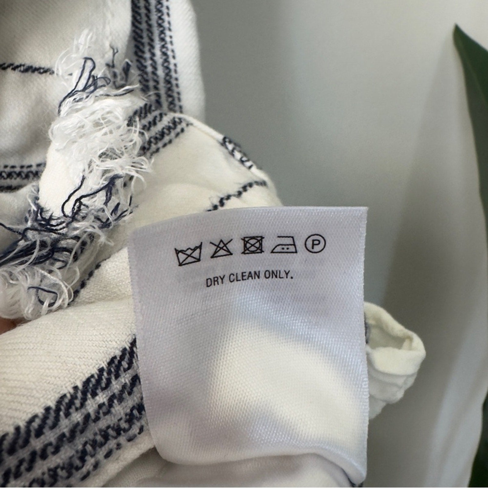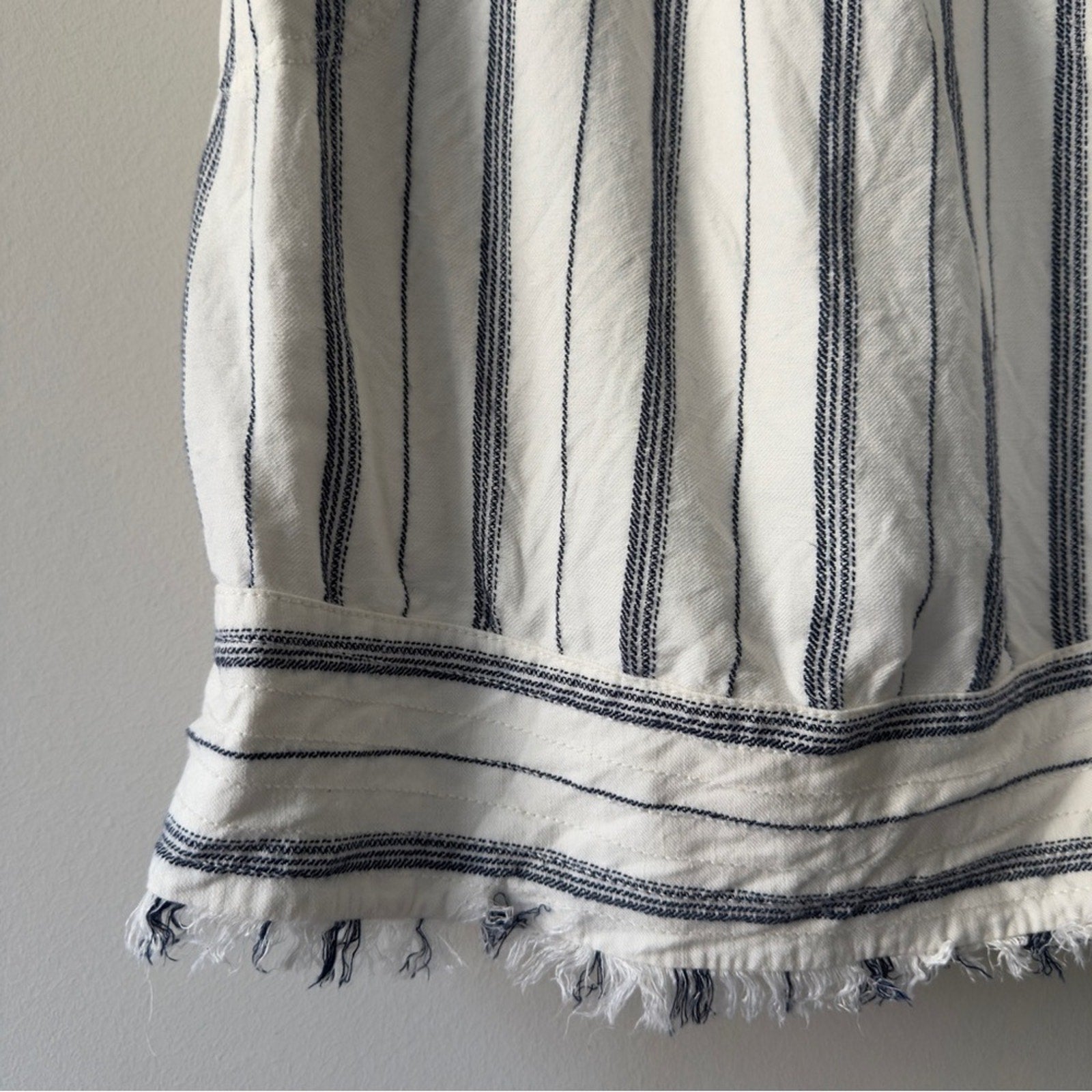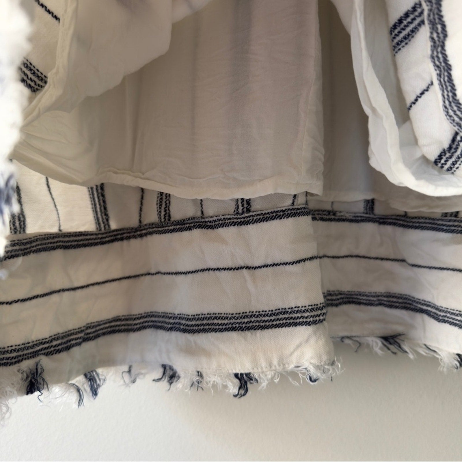 Anthropologie Akemi + Kin White Navy Striped Shift Dress Mini Fringe Hem buttons