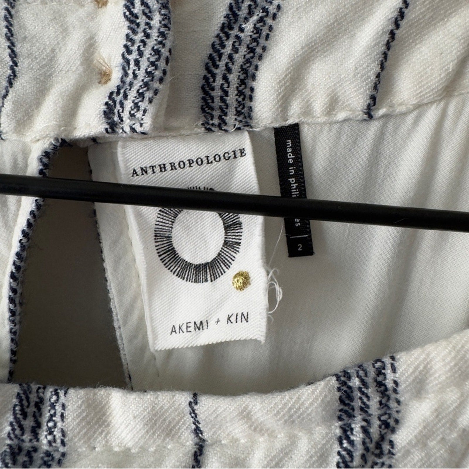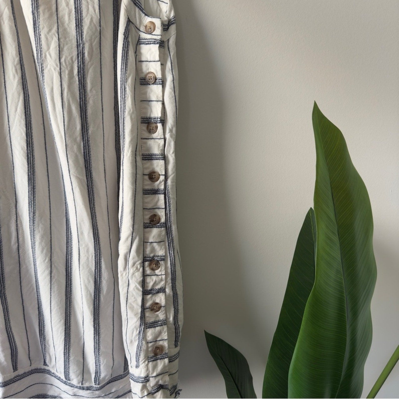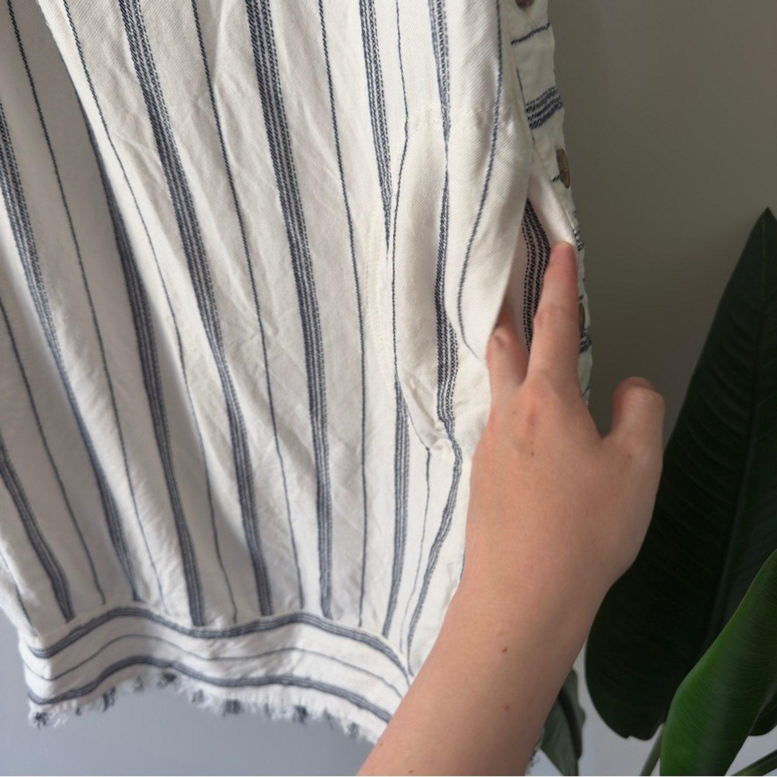 Anthropologie Akemi + Kin White Navy Striped Shift Dress Mini Fringe Hem buttons