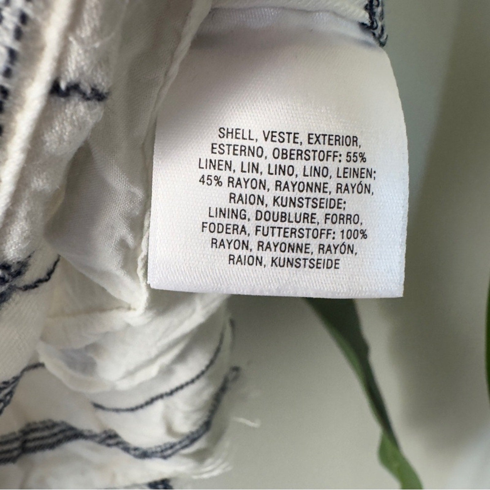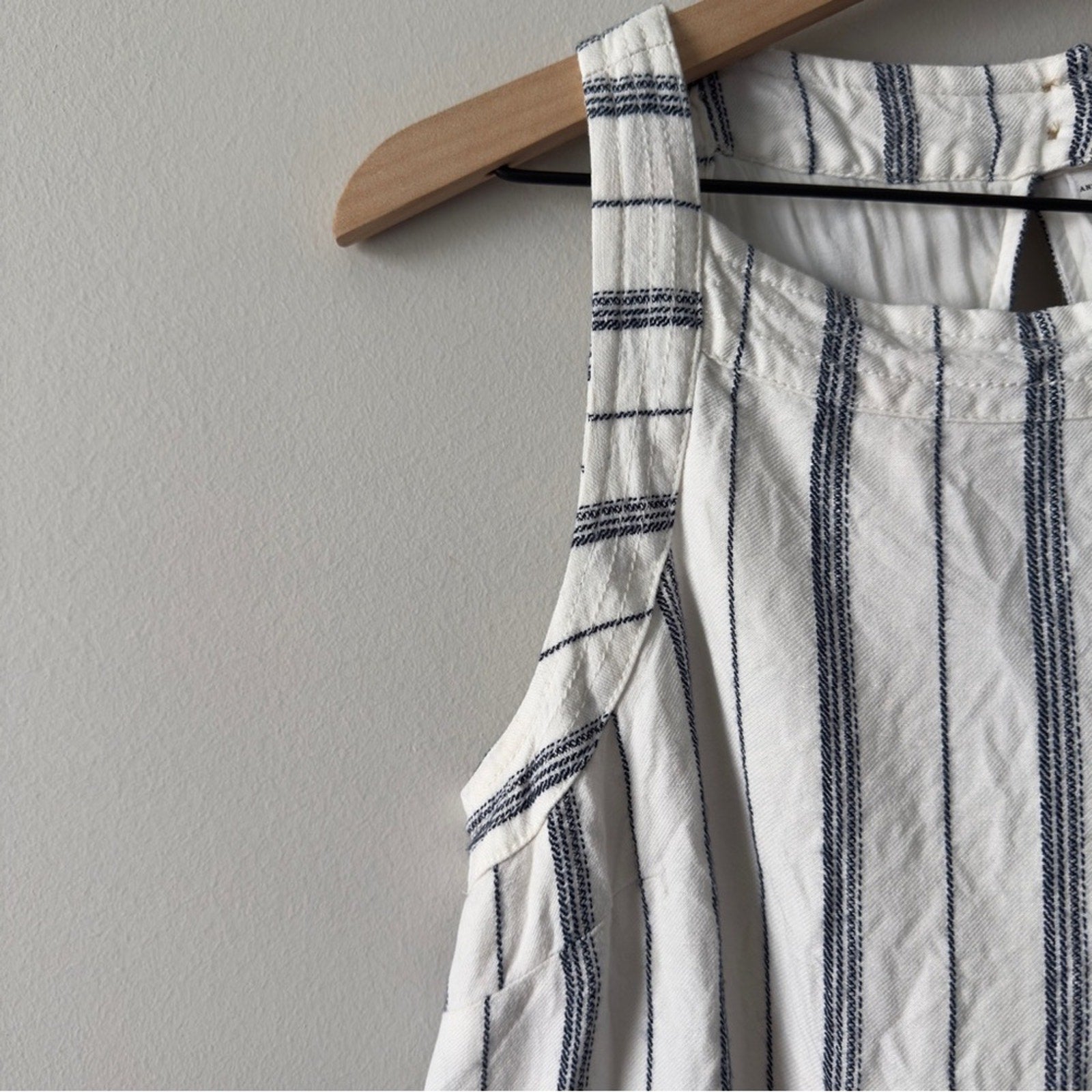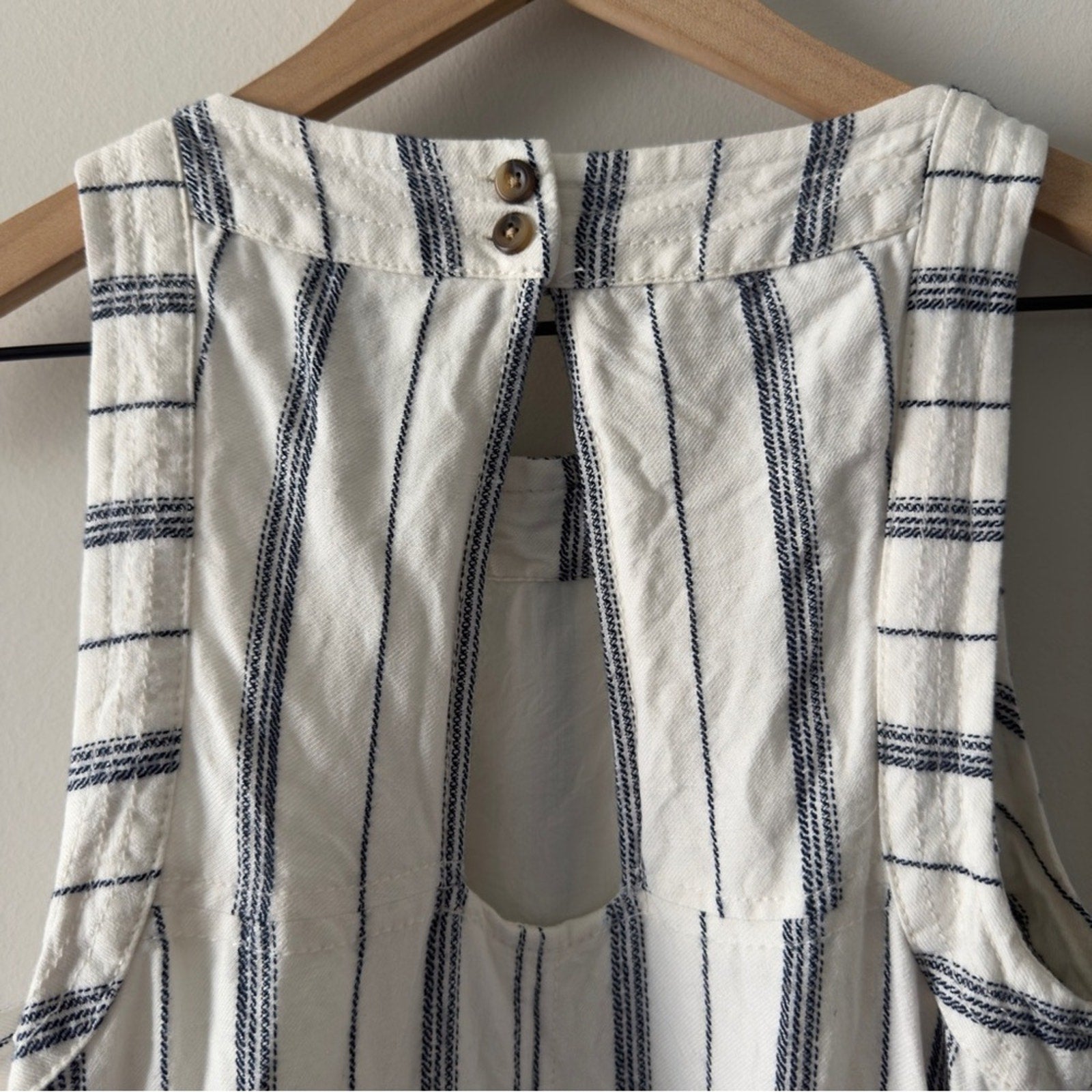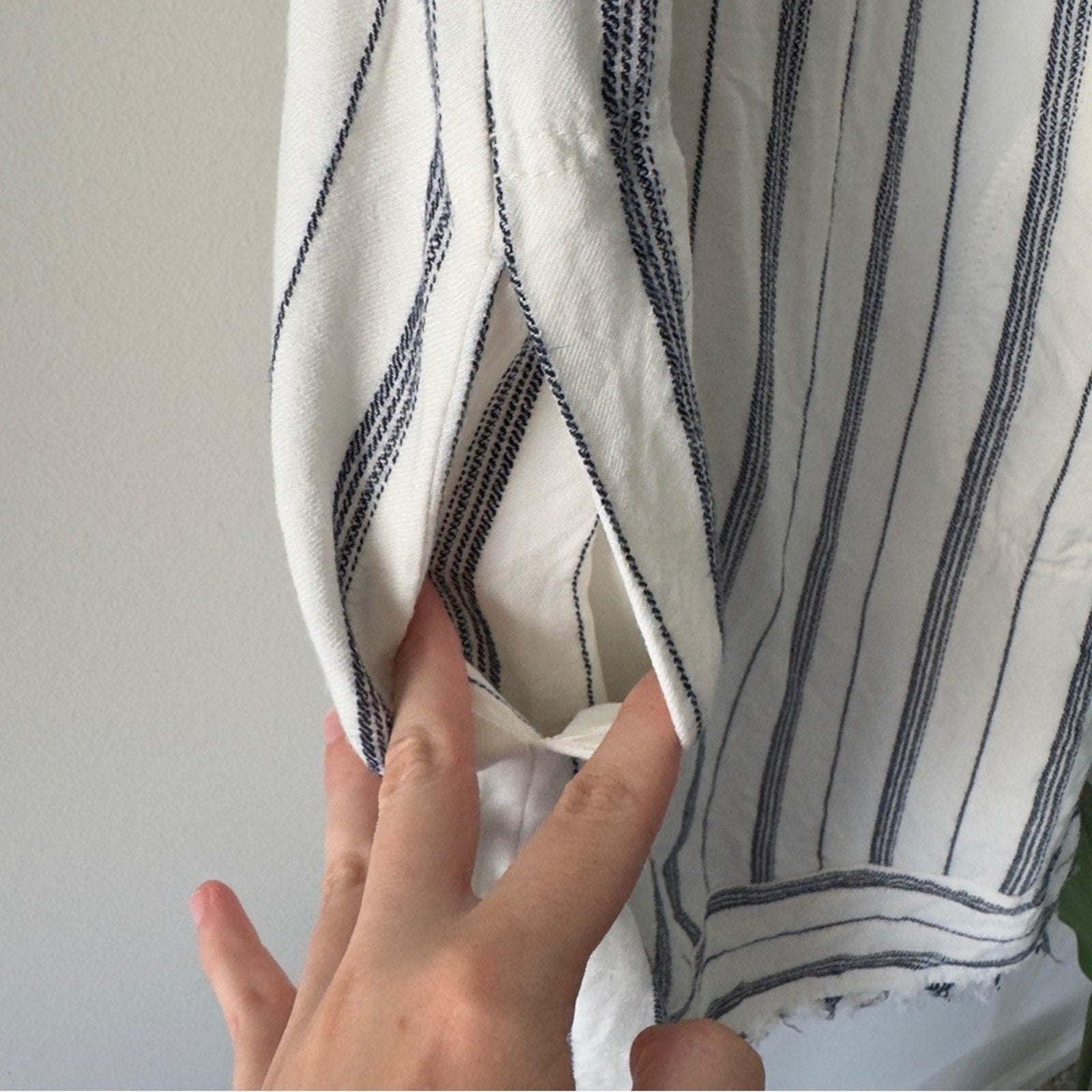 Anthropologie Akemi + Kin White Navy Striped Shift Dress Mini Fringe Hem buttons