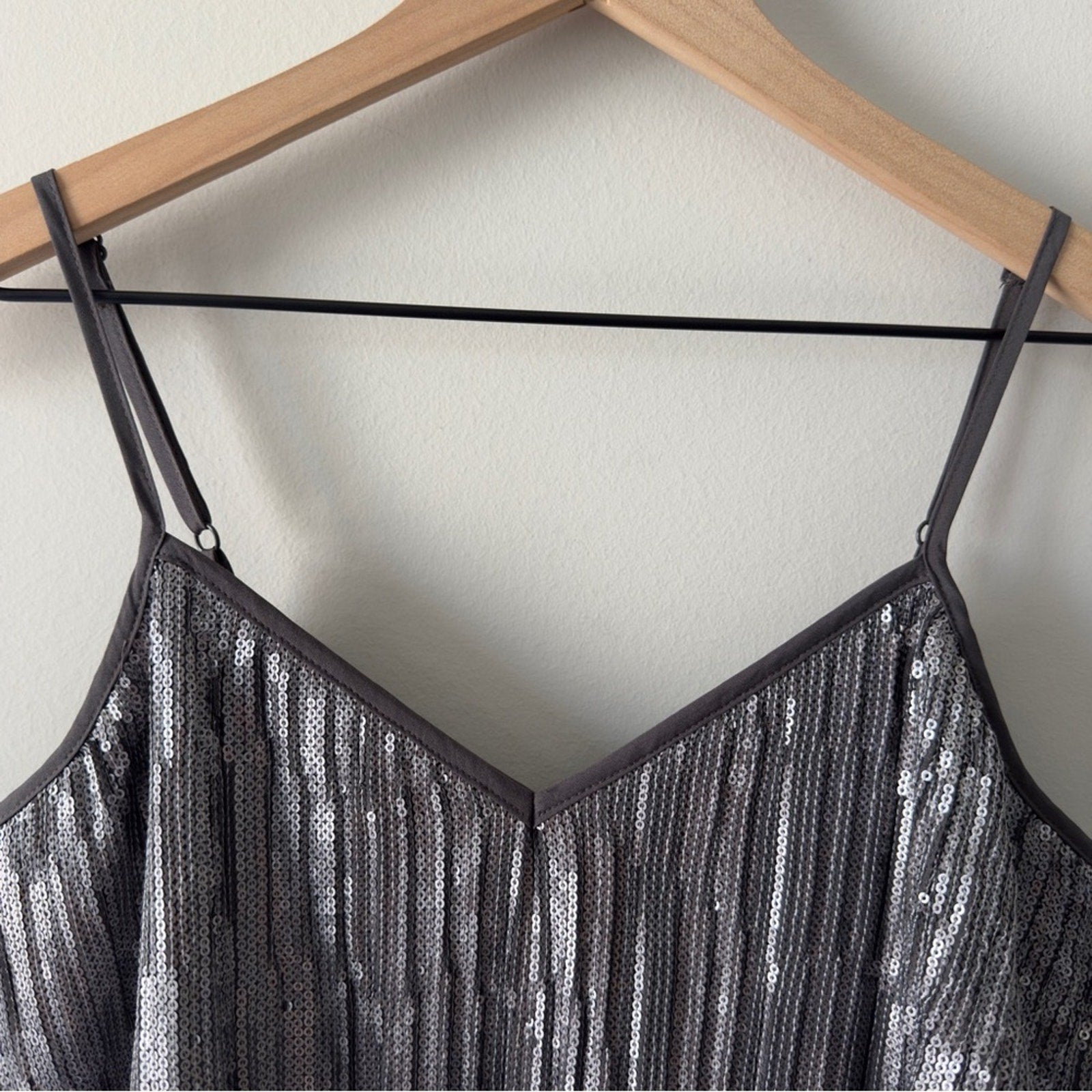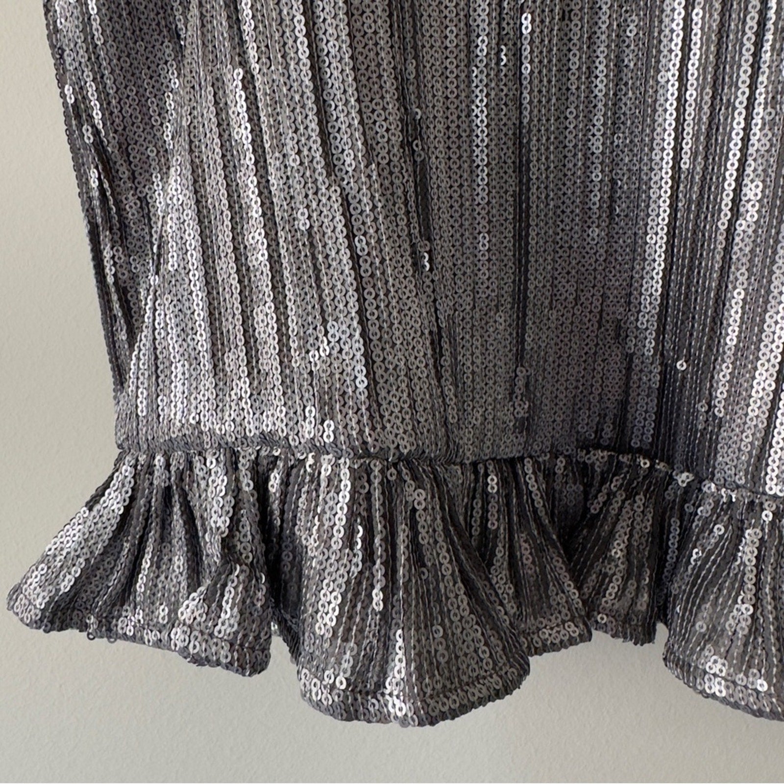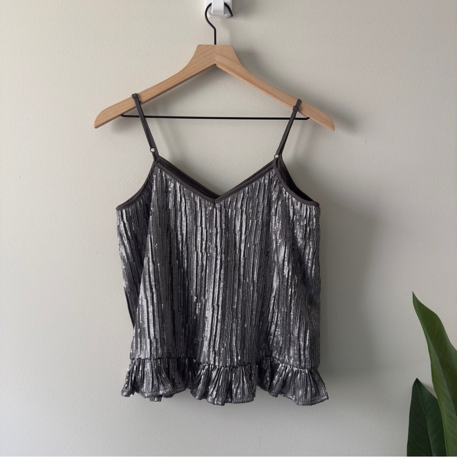 Anthropologie Amelie Sequin Cami Top Silver Ruffled Hem Camisole spaghetti strap