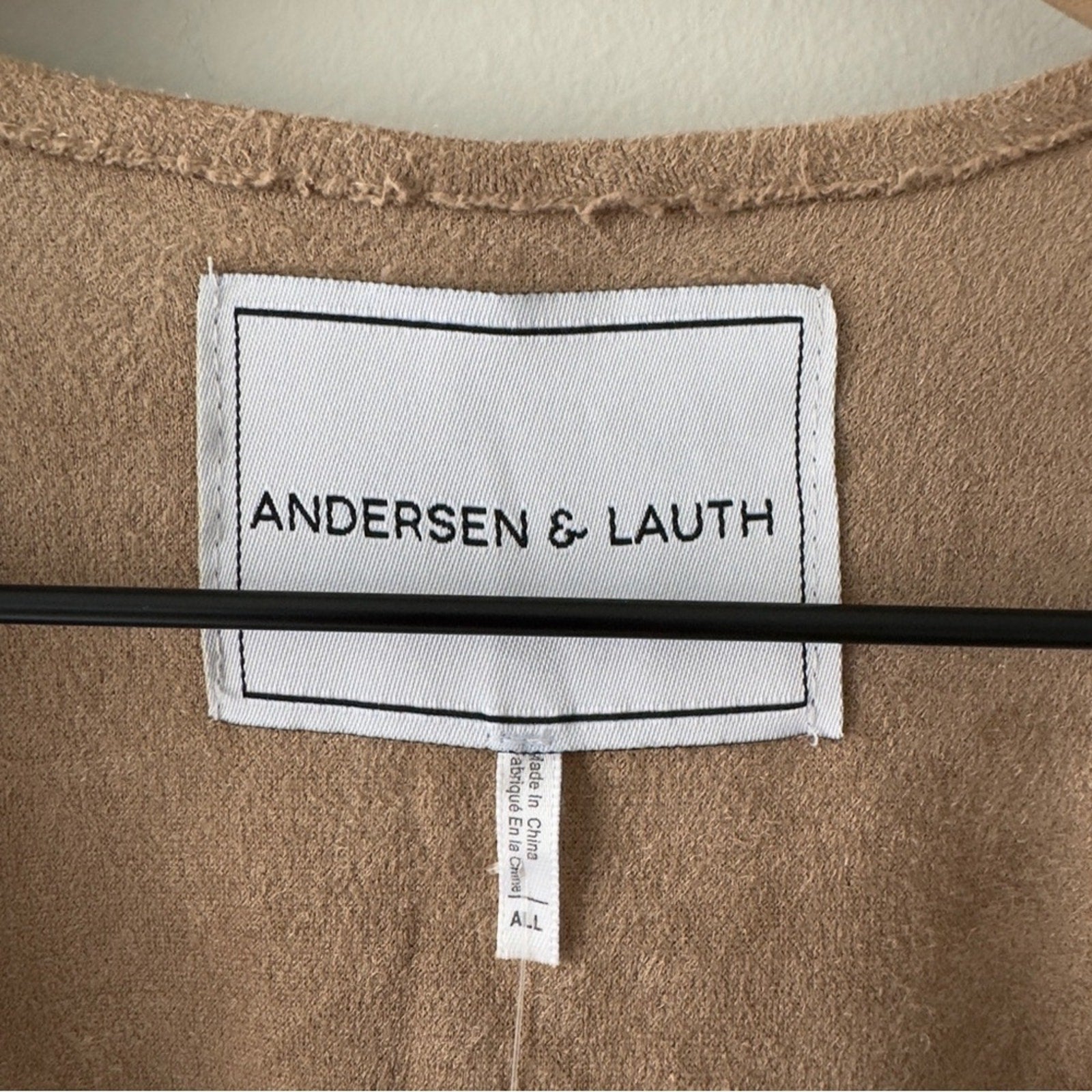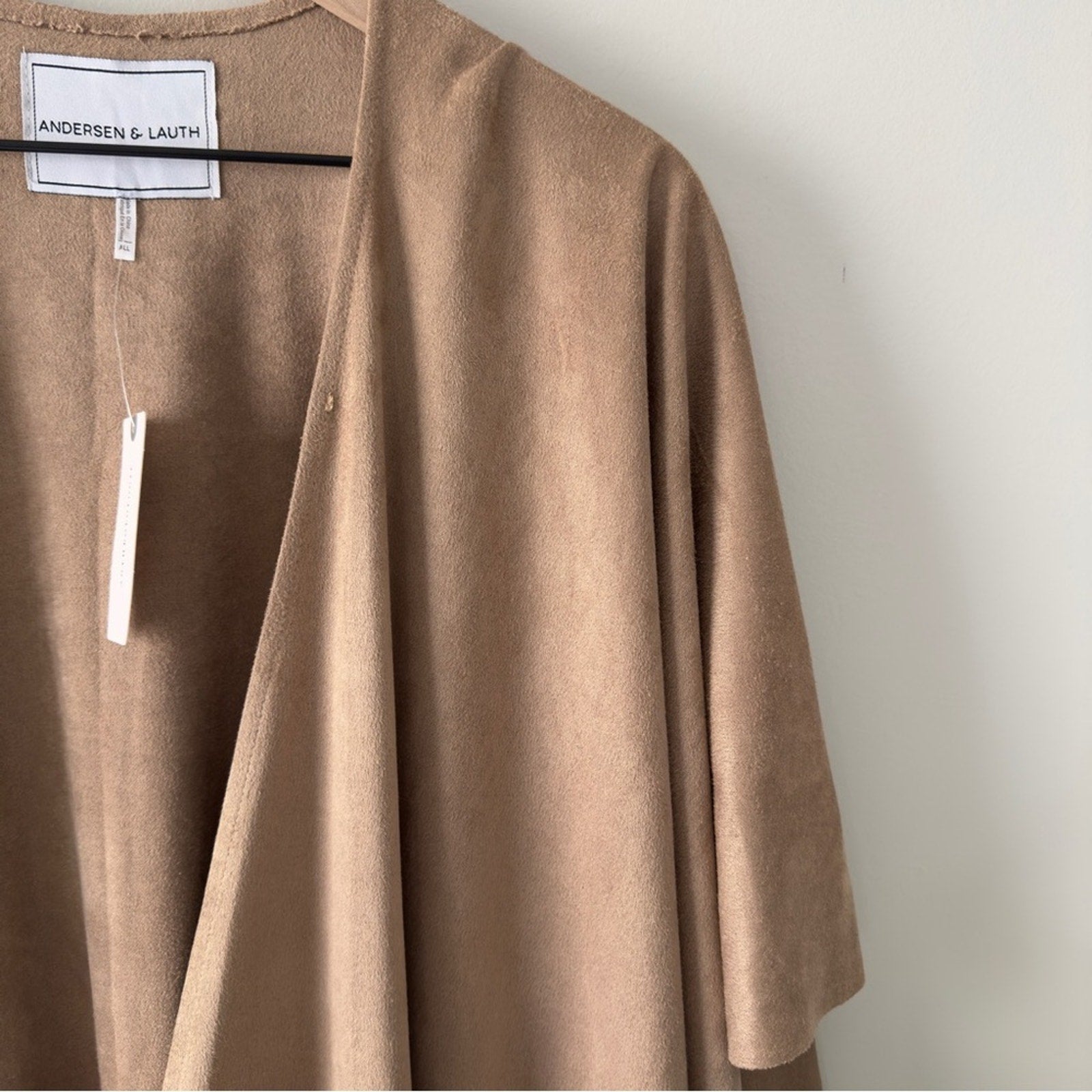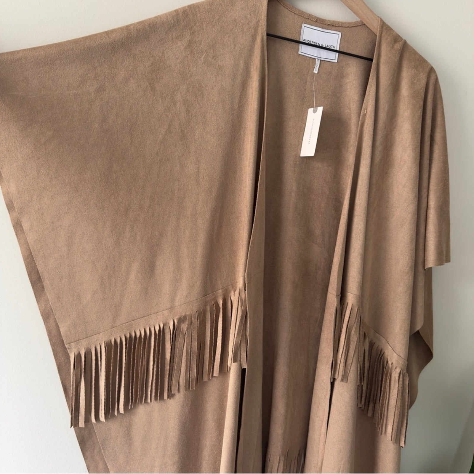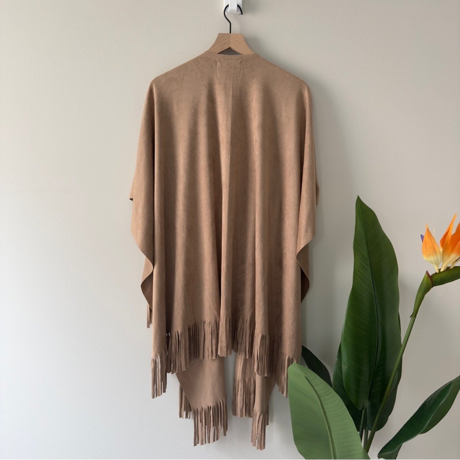 Anthropologie Andersen & Lauth Faux Suede Poncho Tan Open Front with Fringe hem