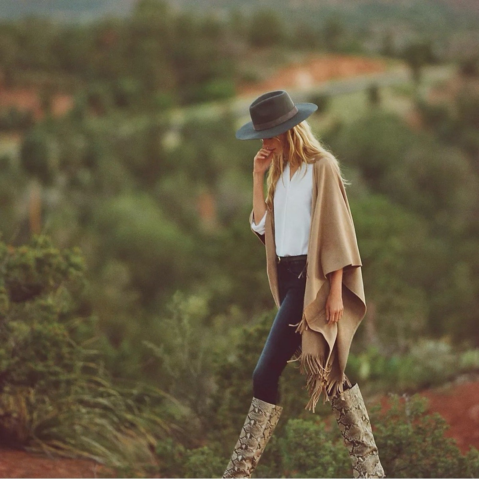 This tan poncho features a flowing silhouette with a delightful fringe detail along the hem, offering a relaxed and stylish look. Its open front design and soft knit texture make it a versatile layering piece for any casual occasion.