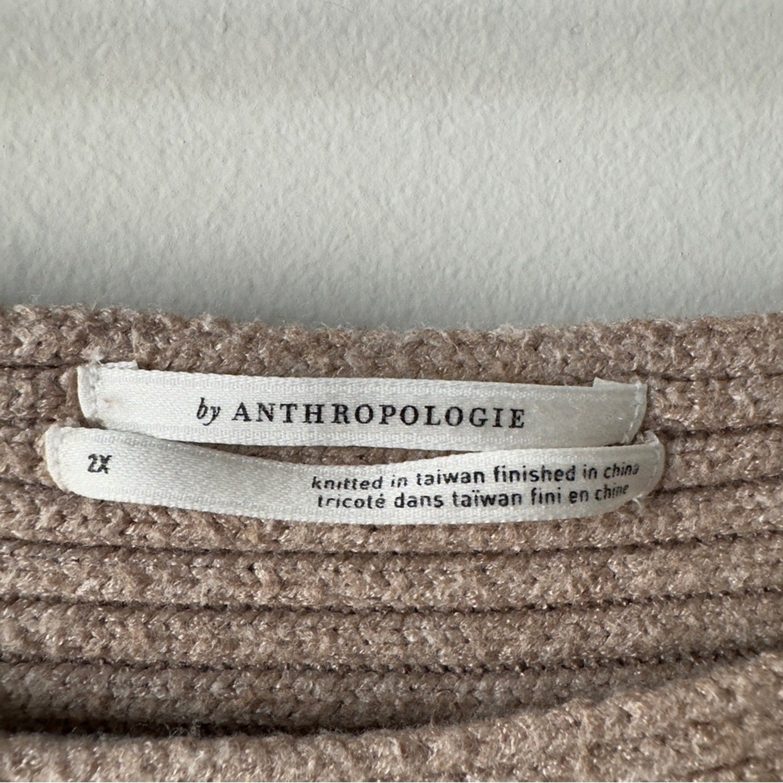 Anthropologie Beige Tan Ribbed Crew Sweater Batwing Long Sleeve Solid Autumn 2X