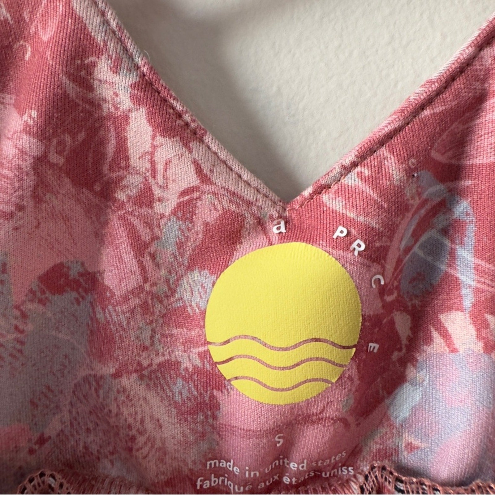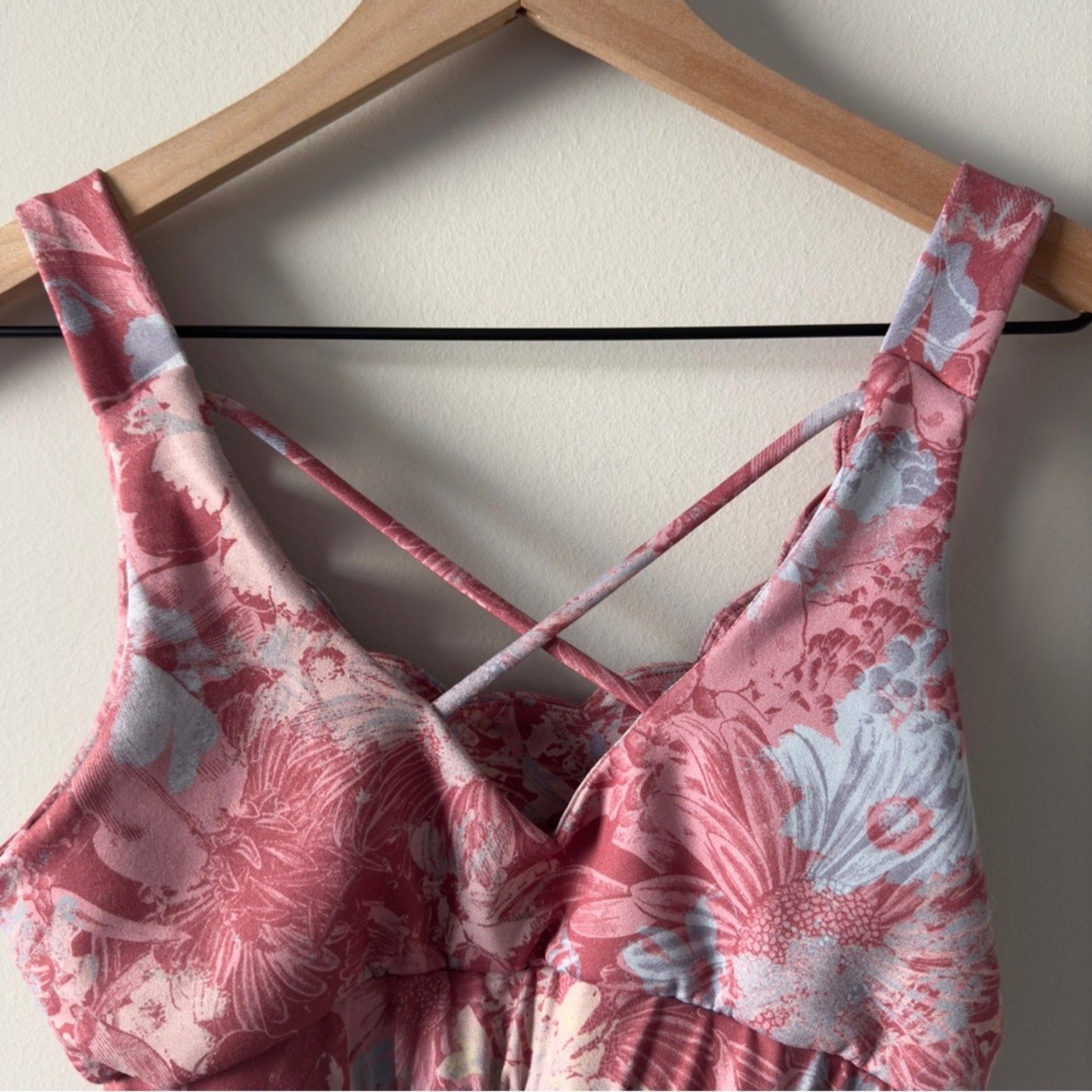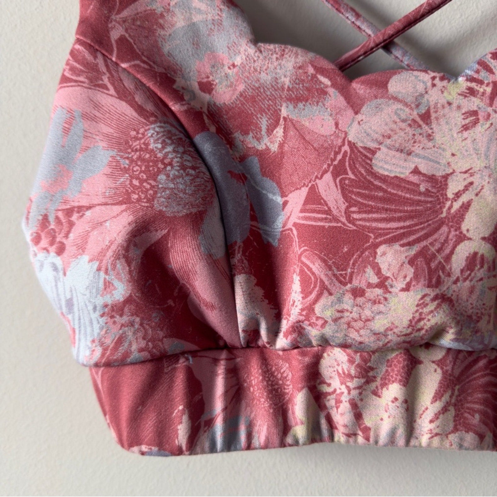 Anthropologie Daily Practice Pink Floral Scalloped scoop neck Sports Bra stretch