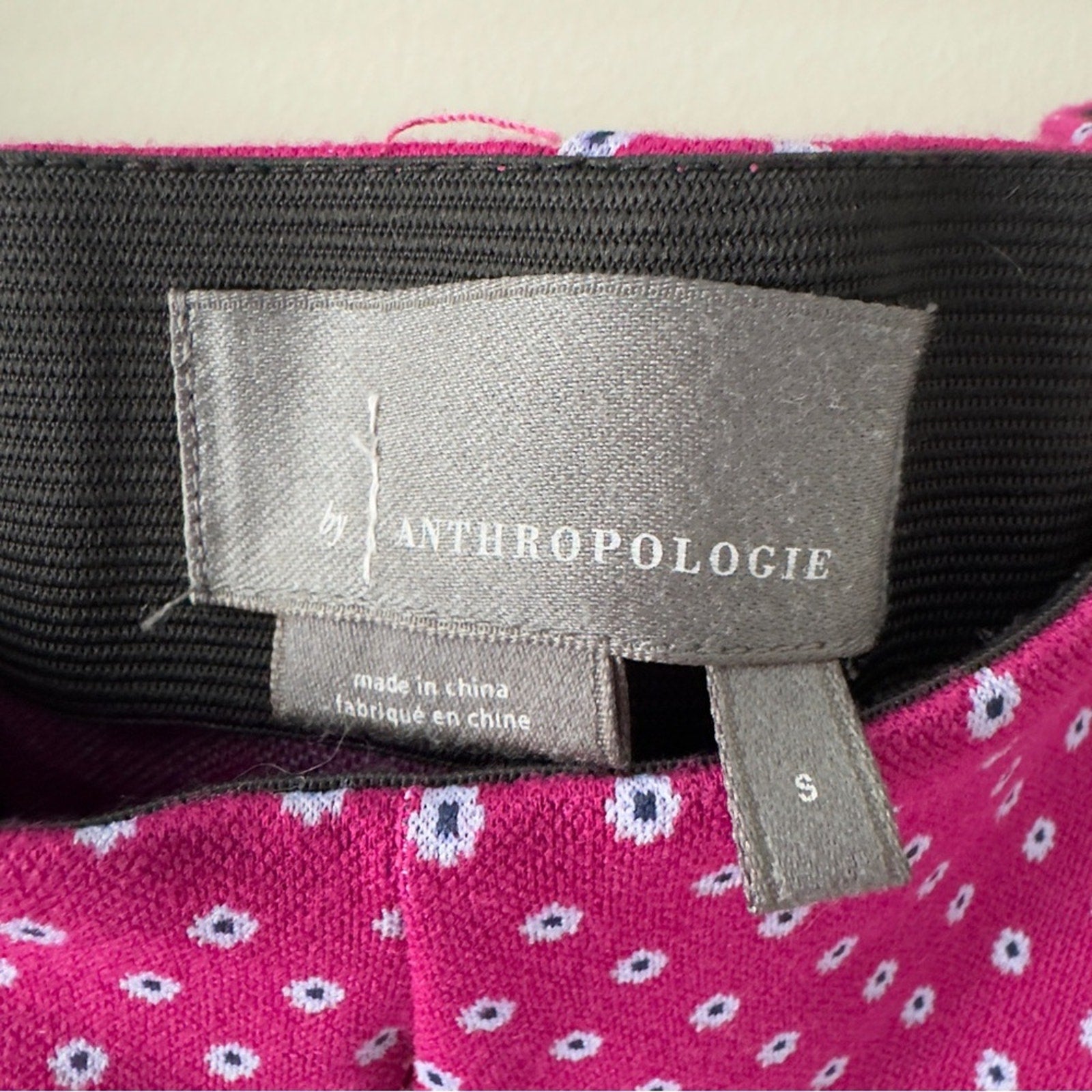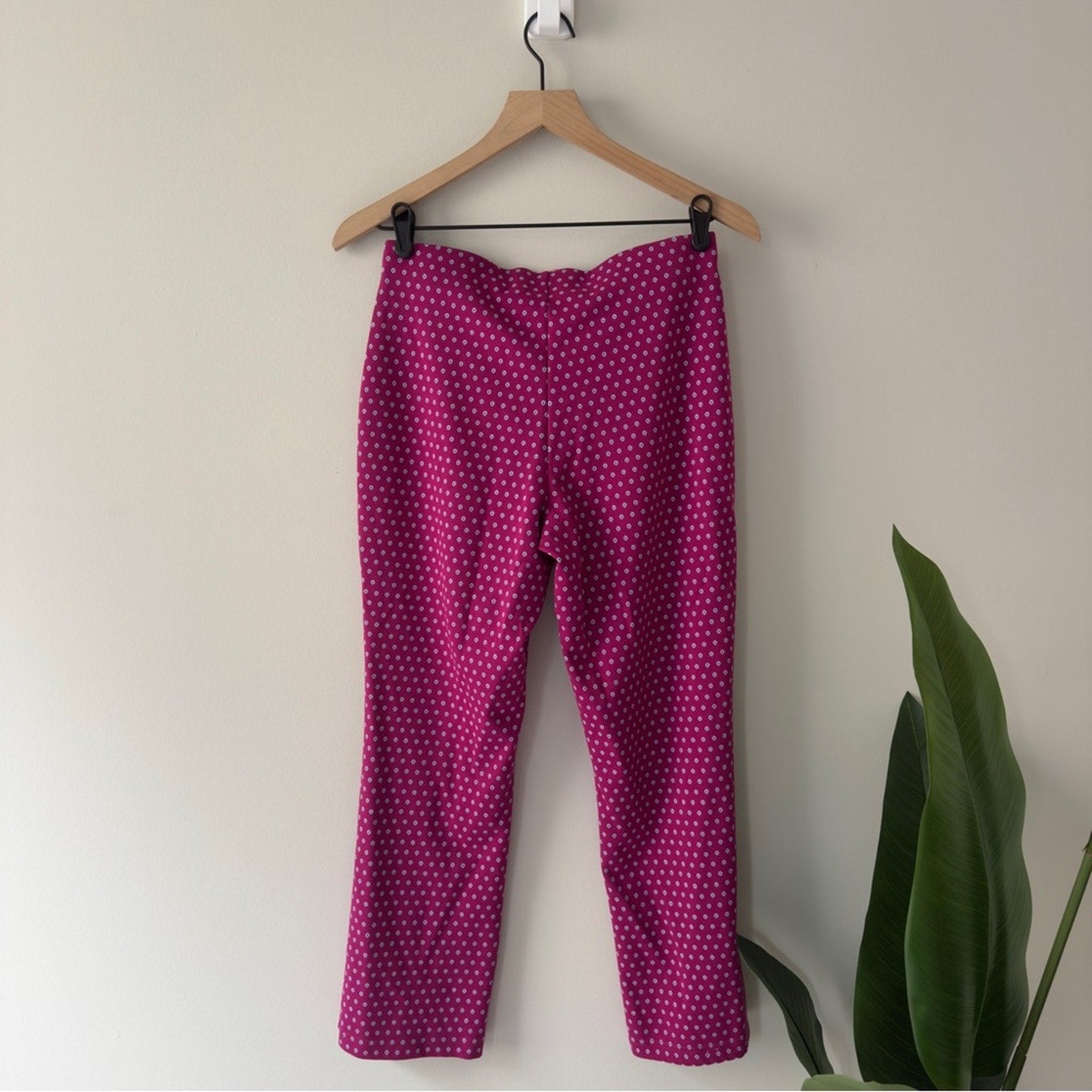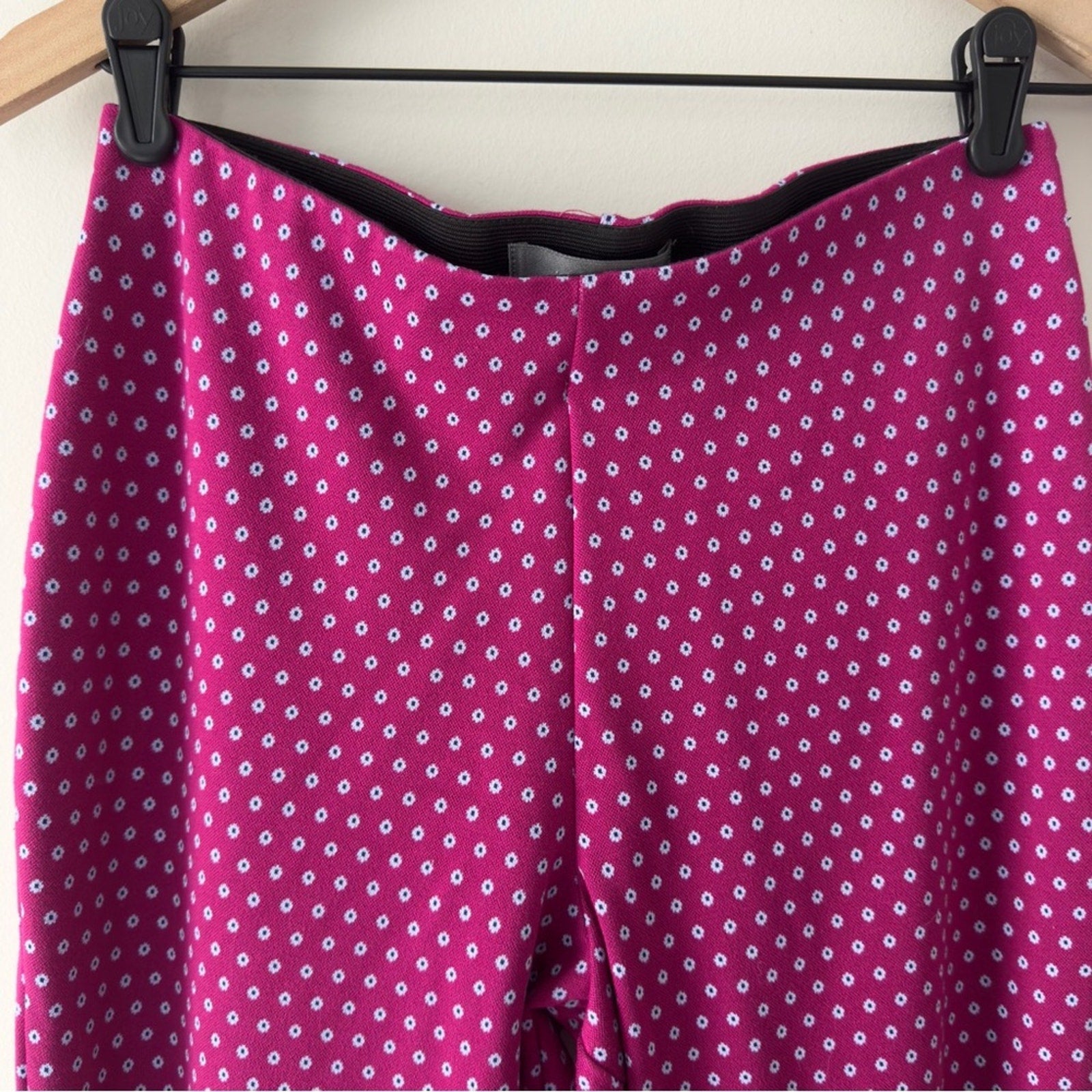 Anthropologie Fuchsia Pants White Flower Pattern stretch elastic waist floral S