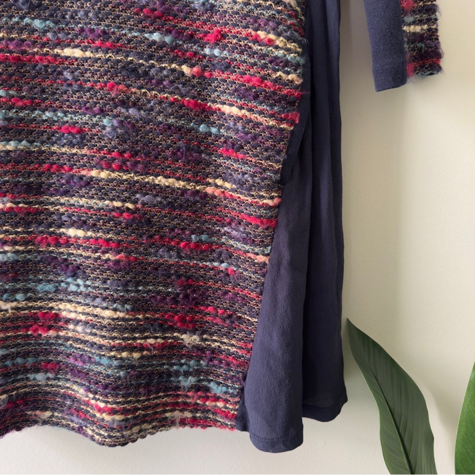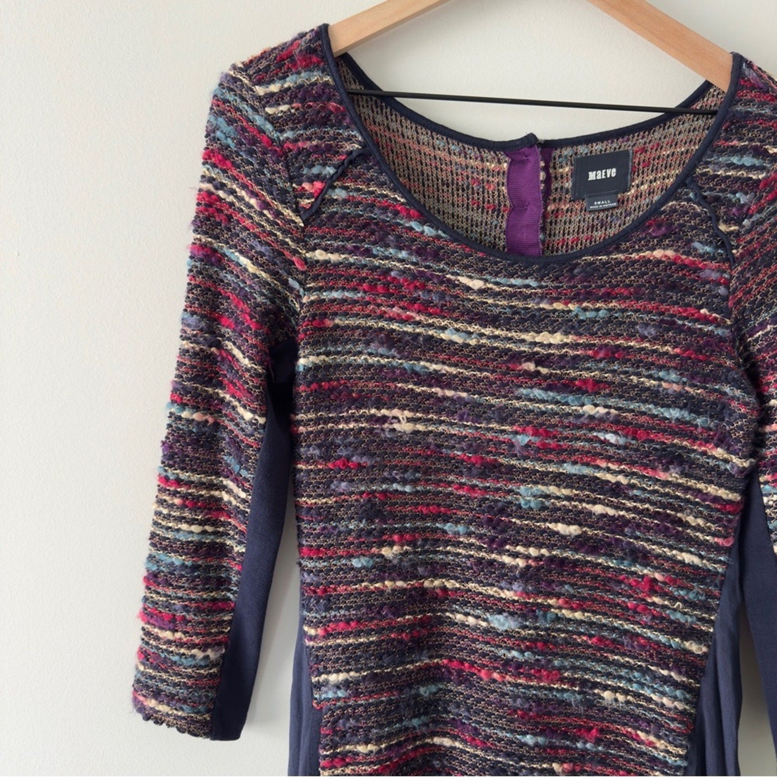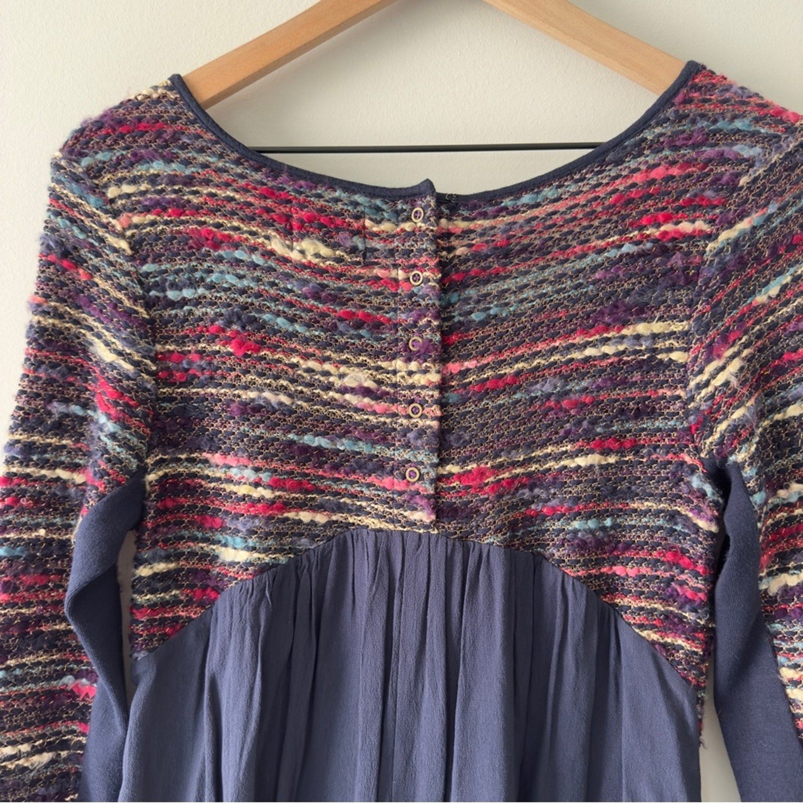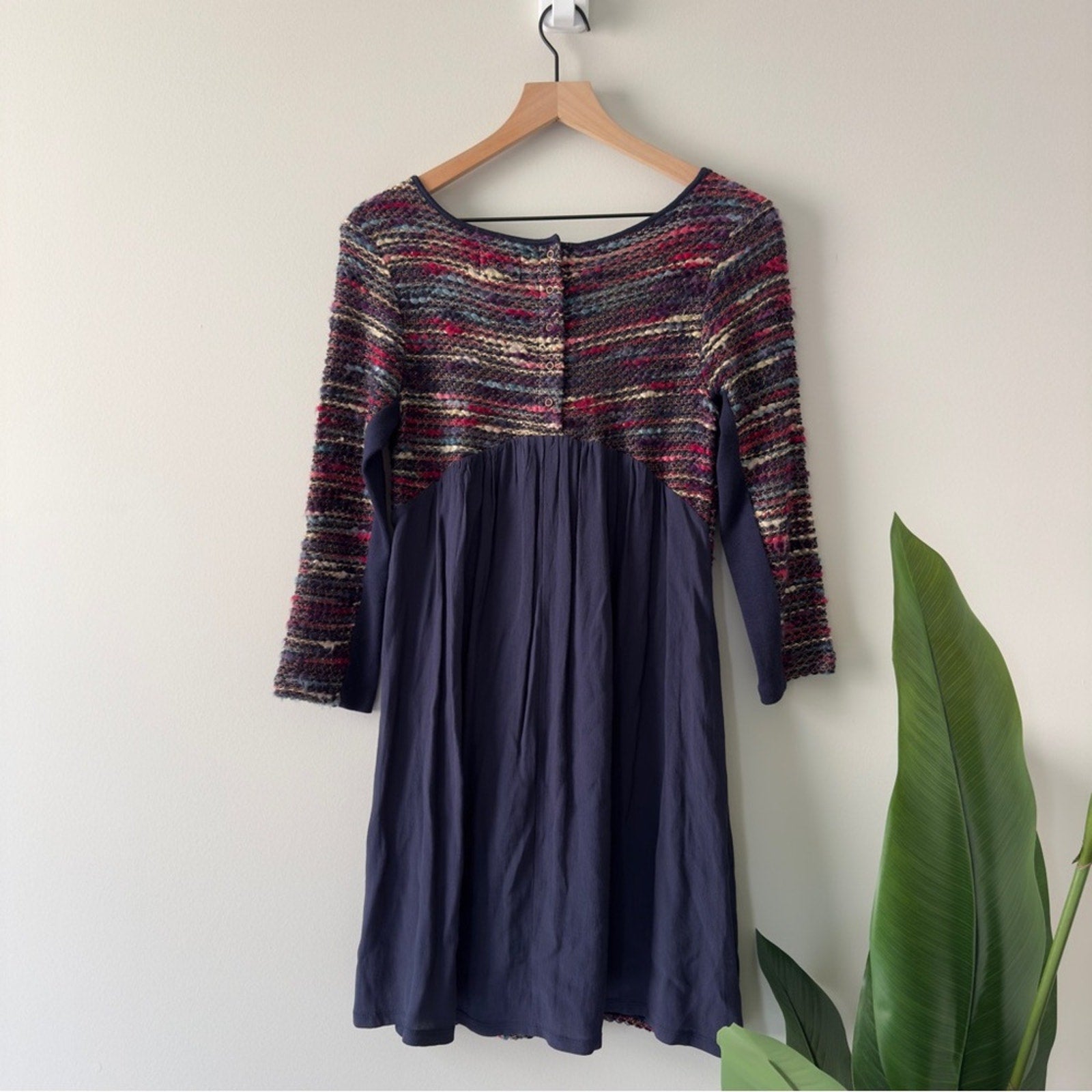 Anthropologie Maeve Multicolor Knit Dress 3/4 Sleeve button up back A-Line lined