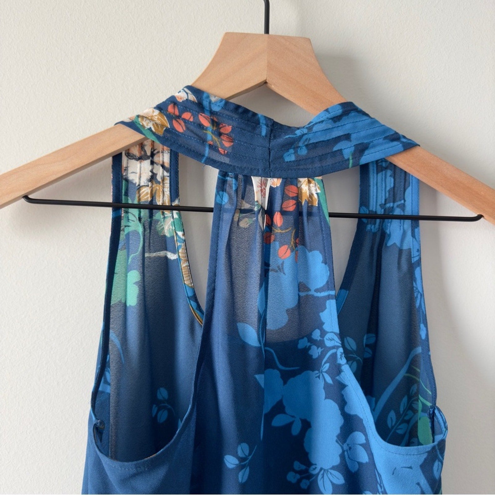 Anthropologie Maeve Sleeveless floral A-Line mini dress Racerback lined cut out