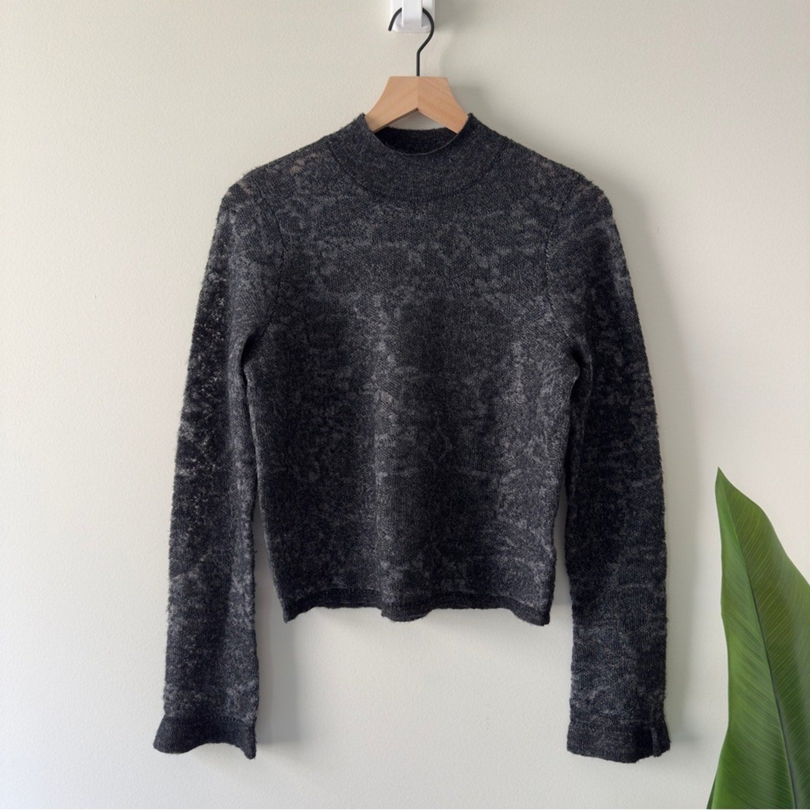 Anthropologie Merino Wool Stylish Gray Sweater textured long sleeve mock neck S