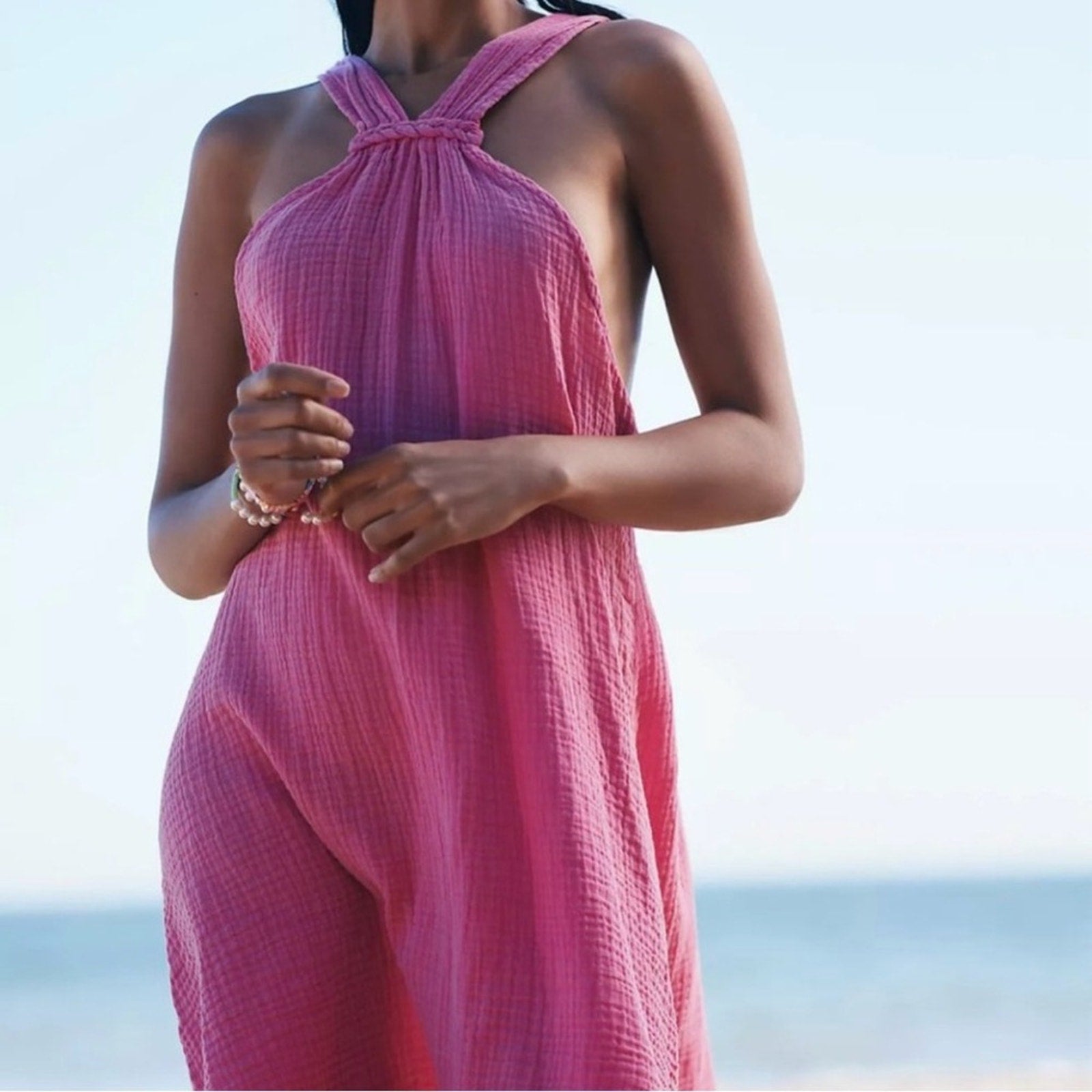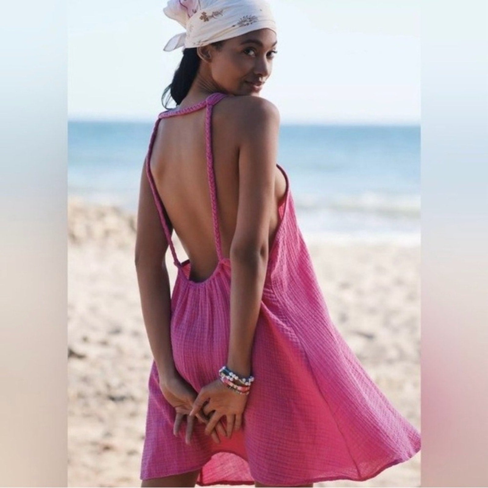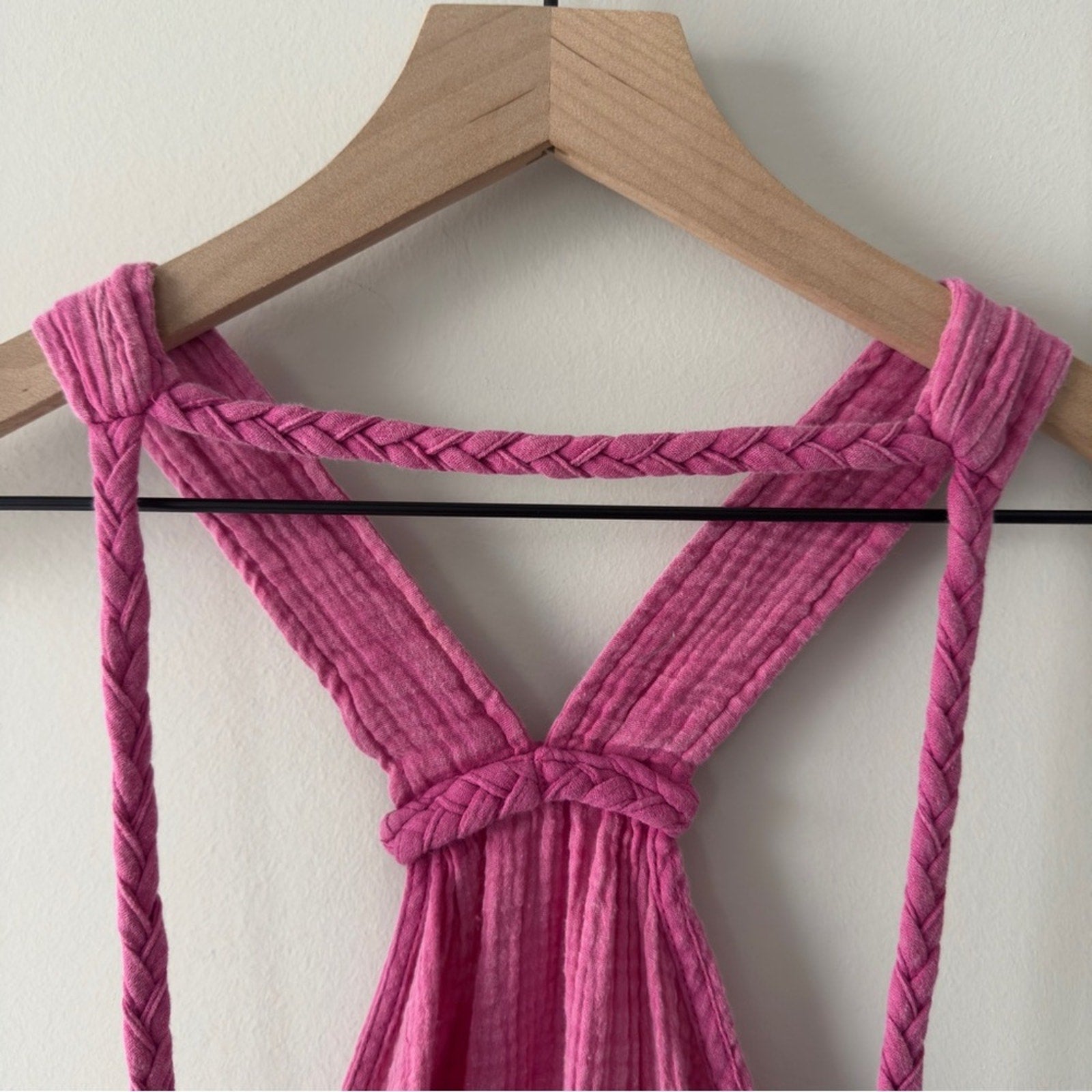 Anthropologie Pink gauze fabric braided strap mini dress halter 100% cotton NWT