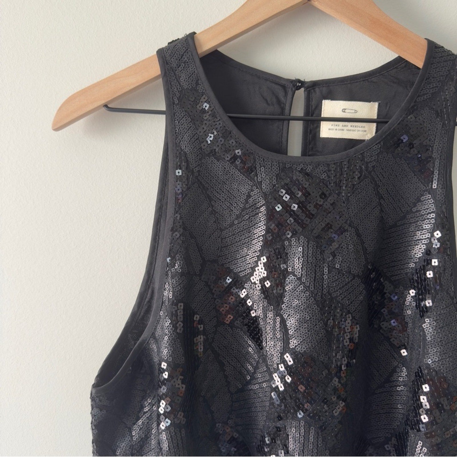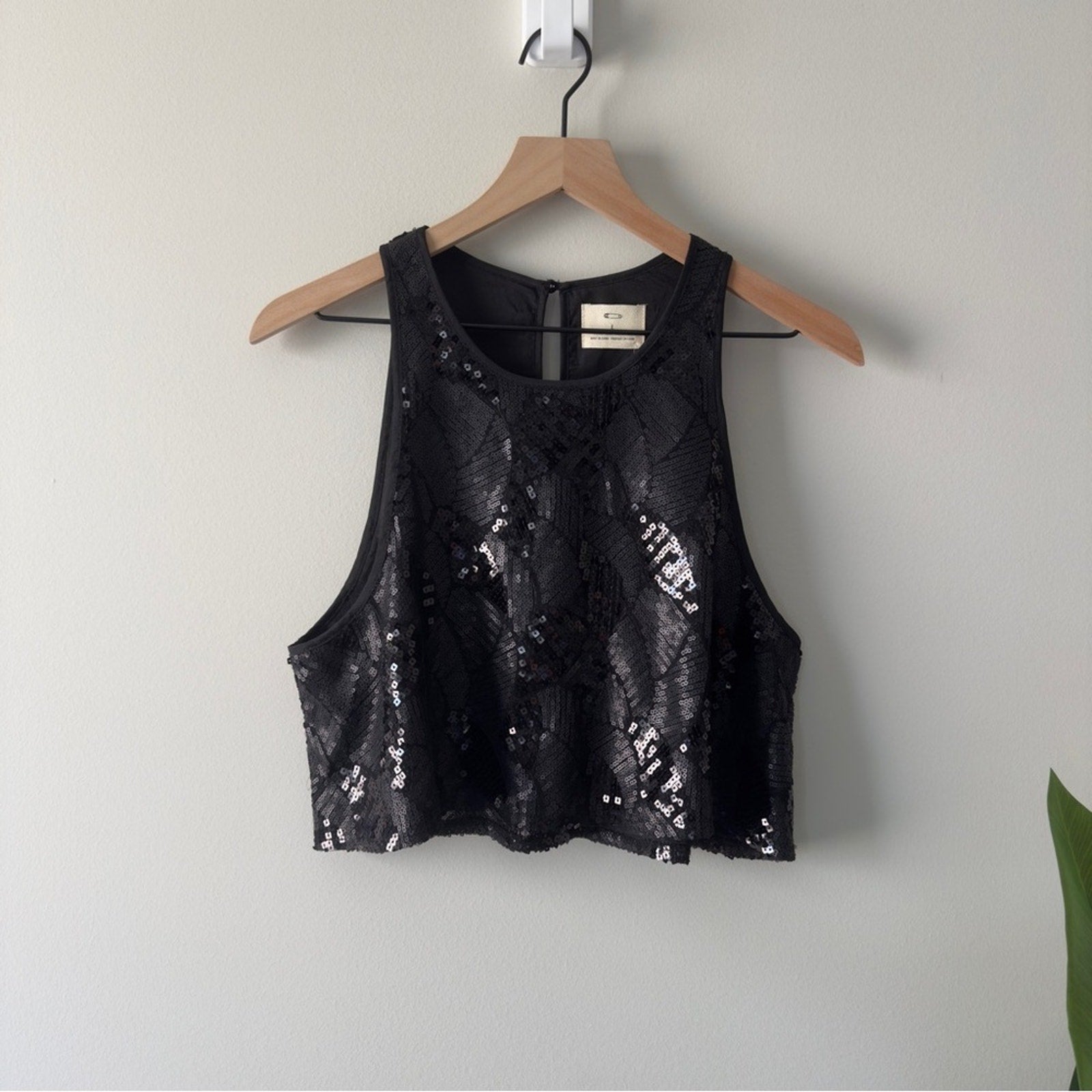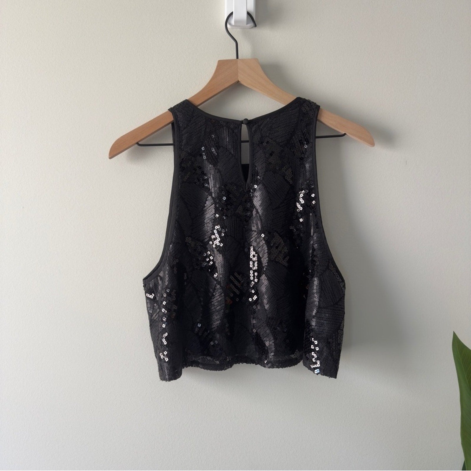 Anthropologie Pins and Needles Black Sequin Crop Tank Top sleeveless cropped NWT