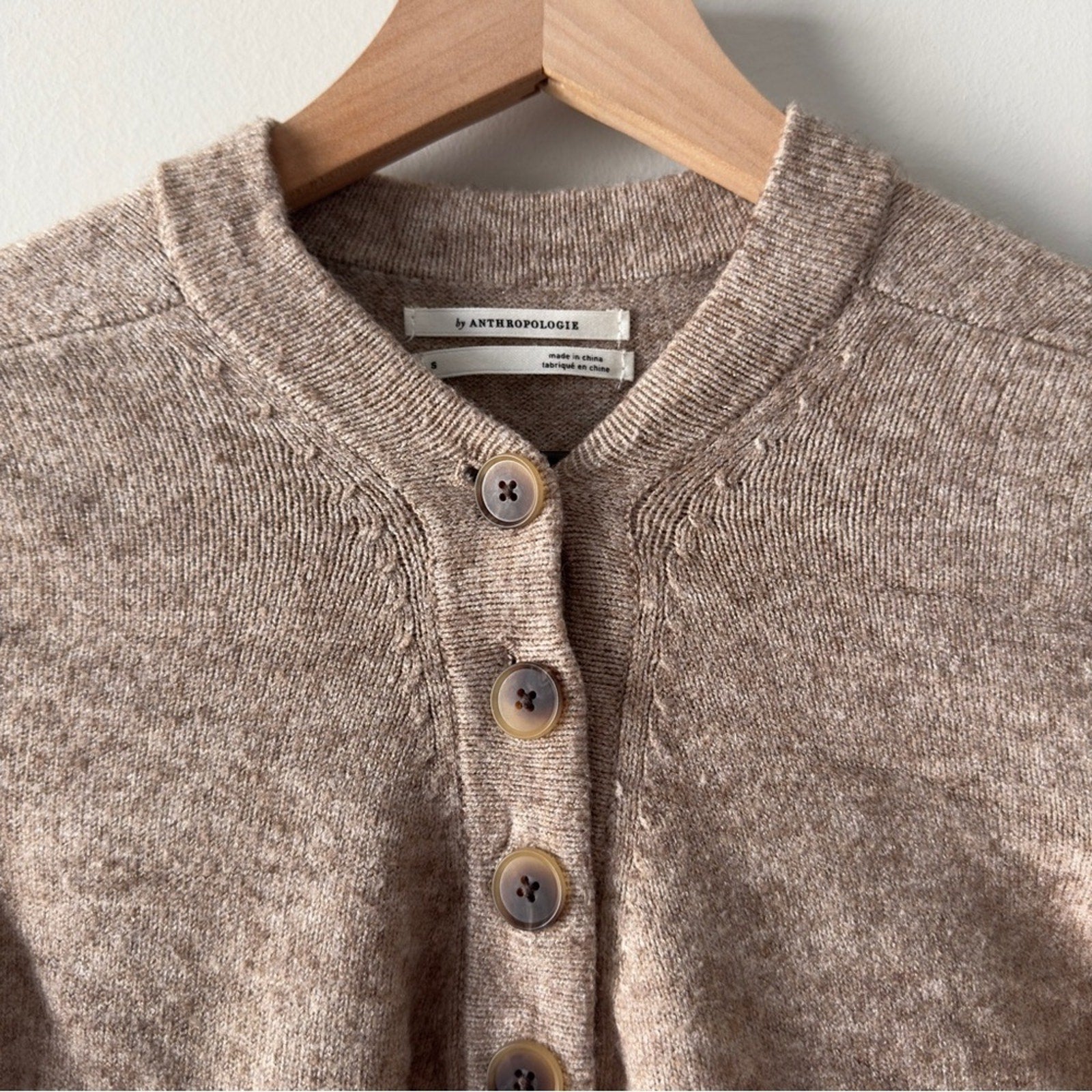 Anthropologie Serena button v-neck sweater ribbed edge long sleeve soft knit S