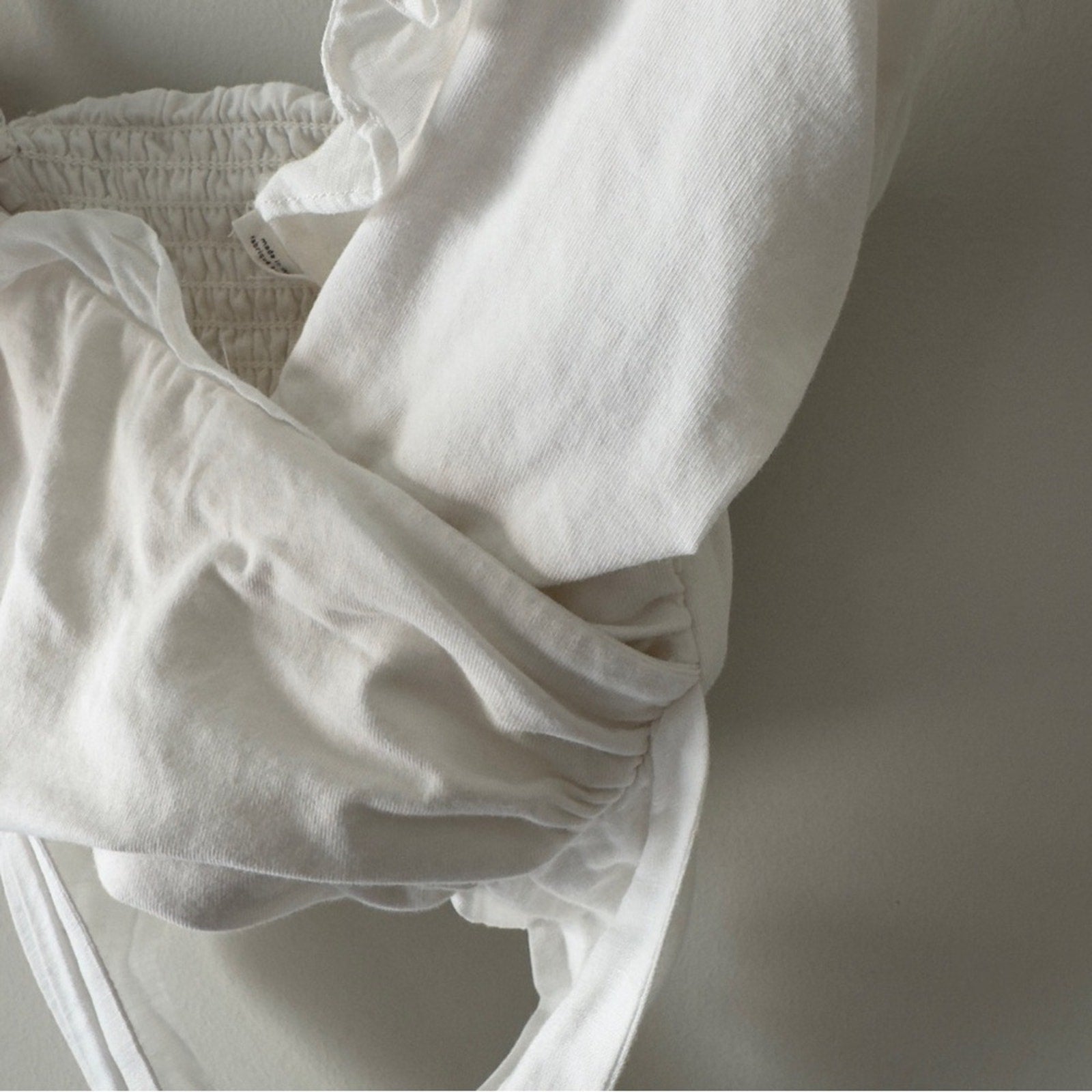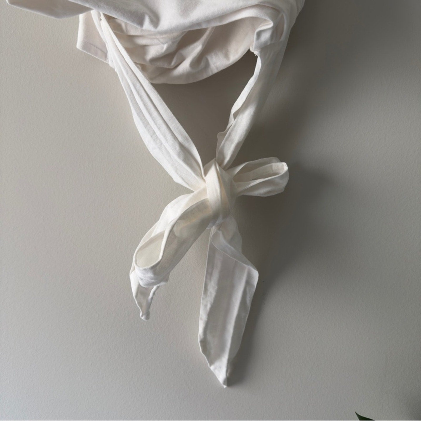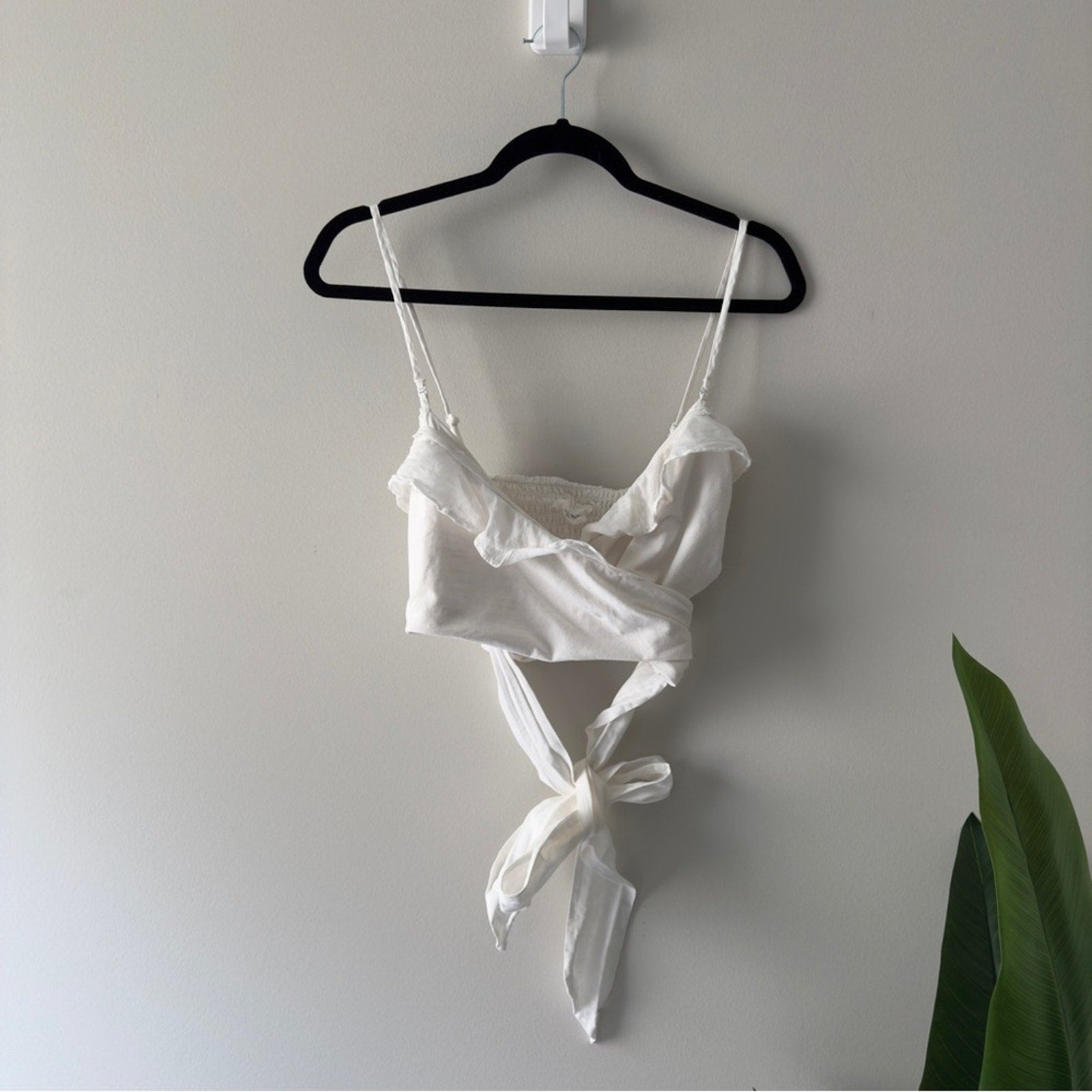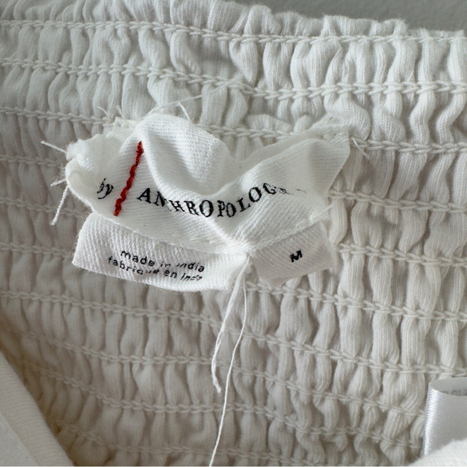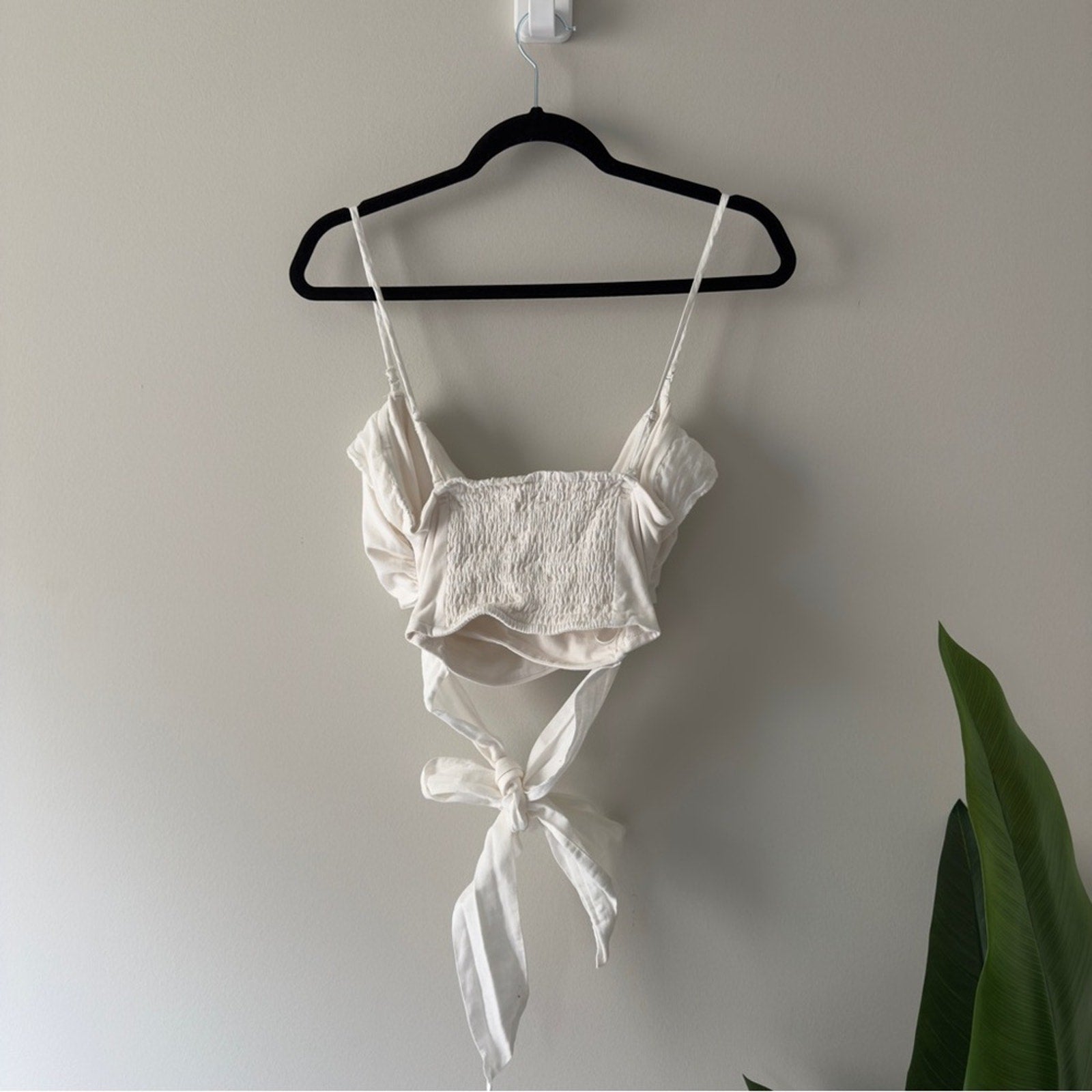 Anthropologie White tie wrap Smocked back crop Top adjustable spaghetti straps M