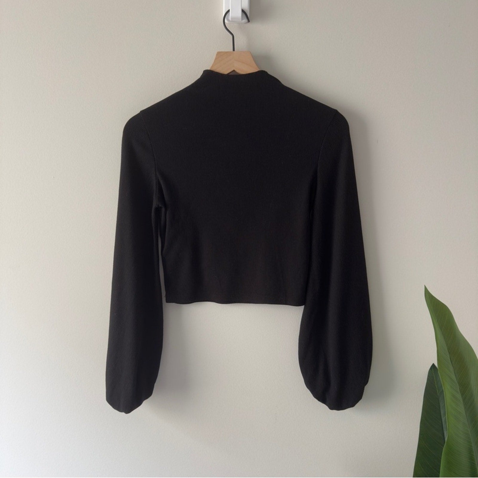 Balloon Sleeve Turtleneck Black Crop Top Long Sleeve Solid Ribbed Casual Minimal
