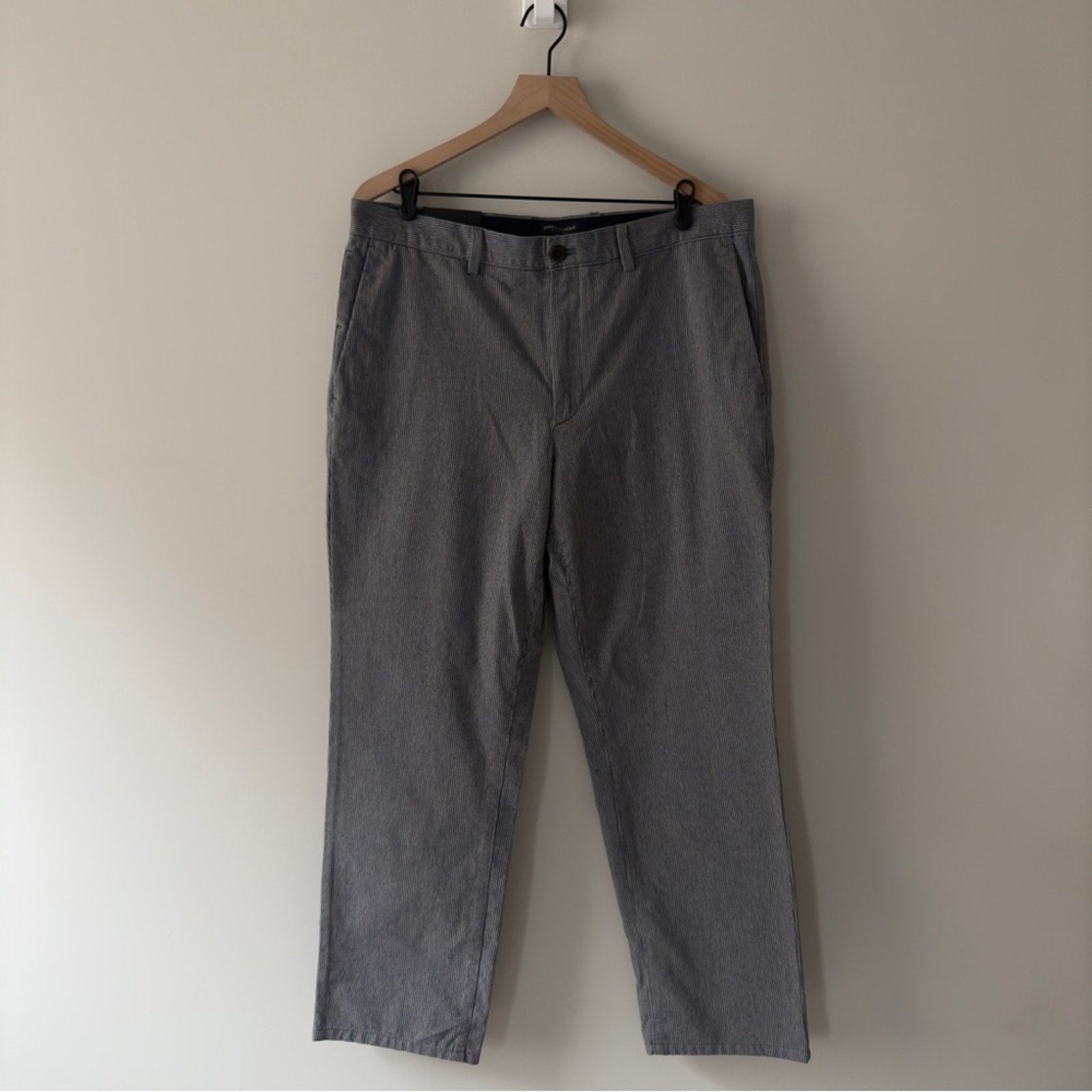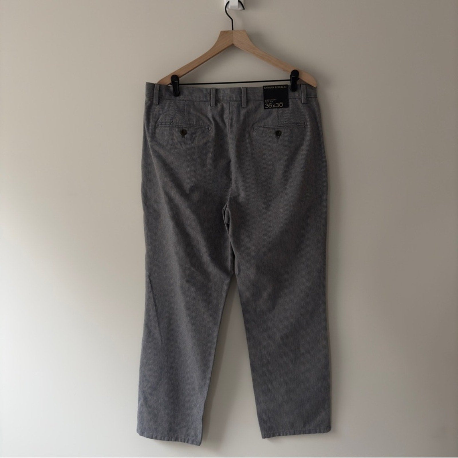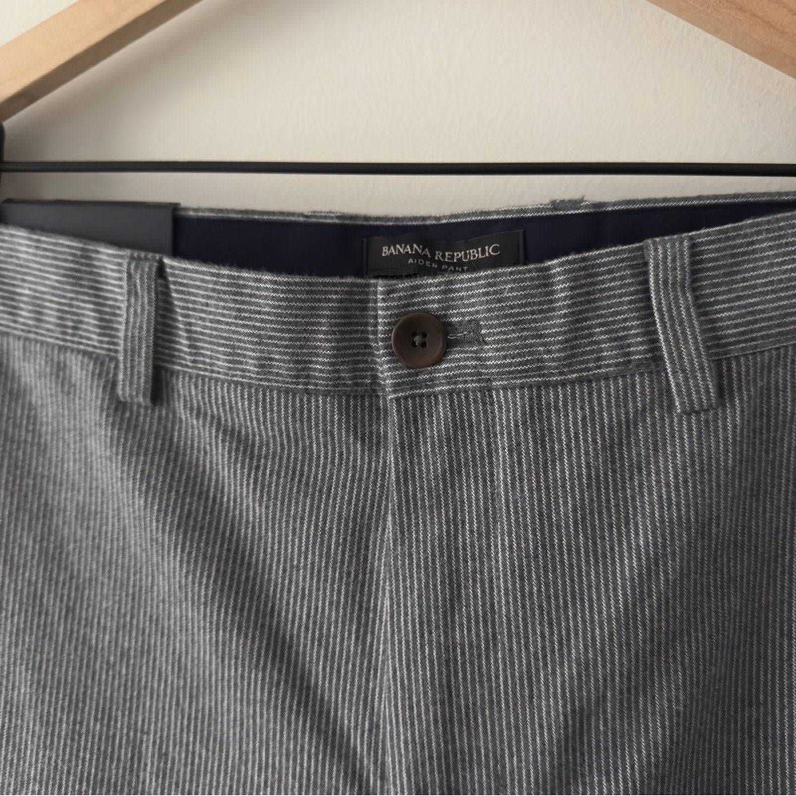 Banana Republic Aiden Pant Slim Fit Men's Gray Pants white pinstripe zip button