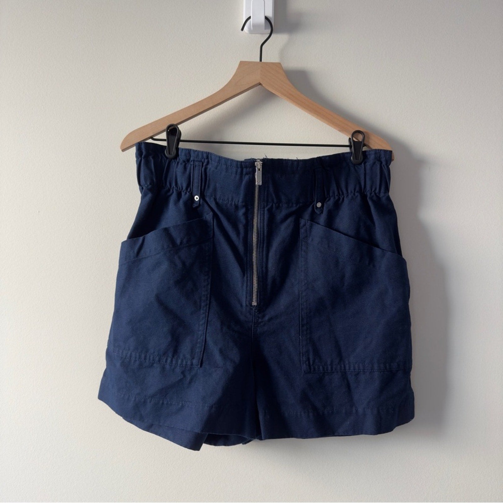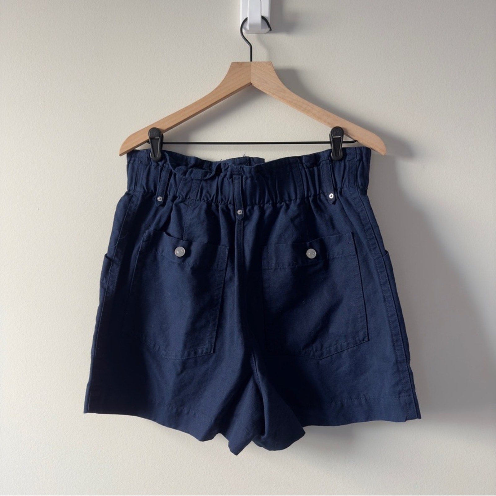 Banana Republic cotton/linen navy Blue Shorts paperbag waist zip up zipper front