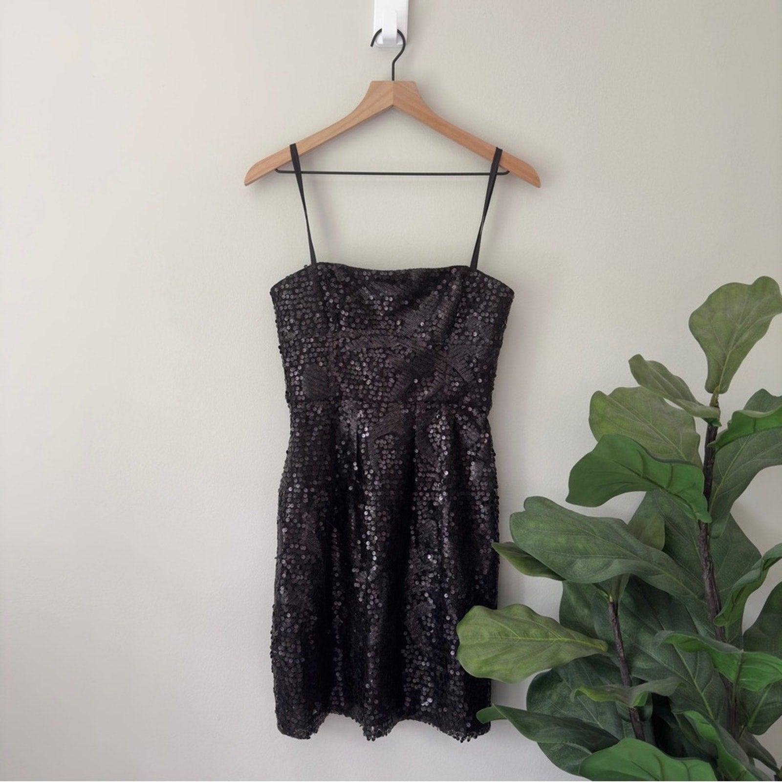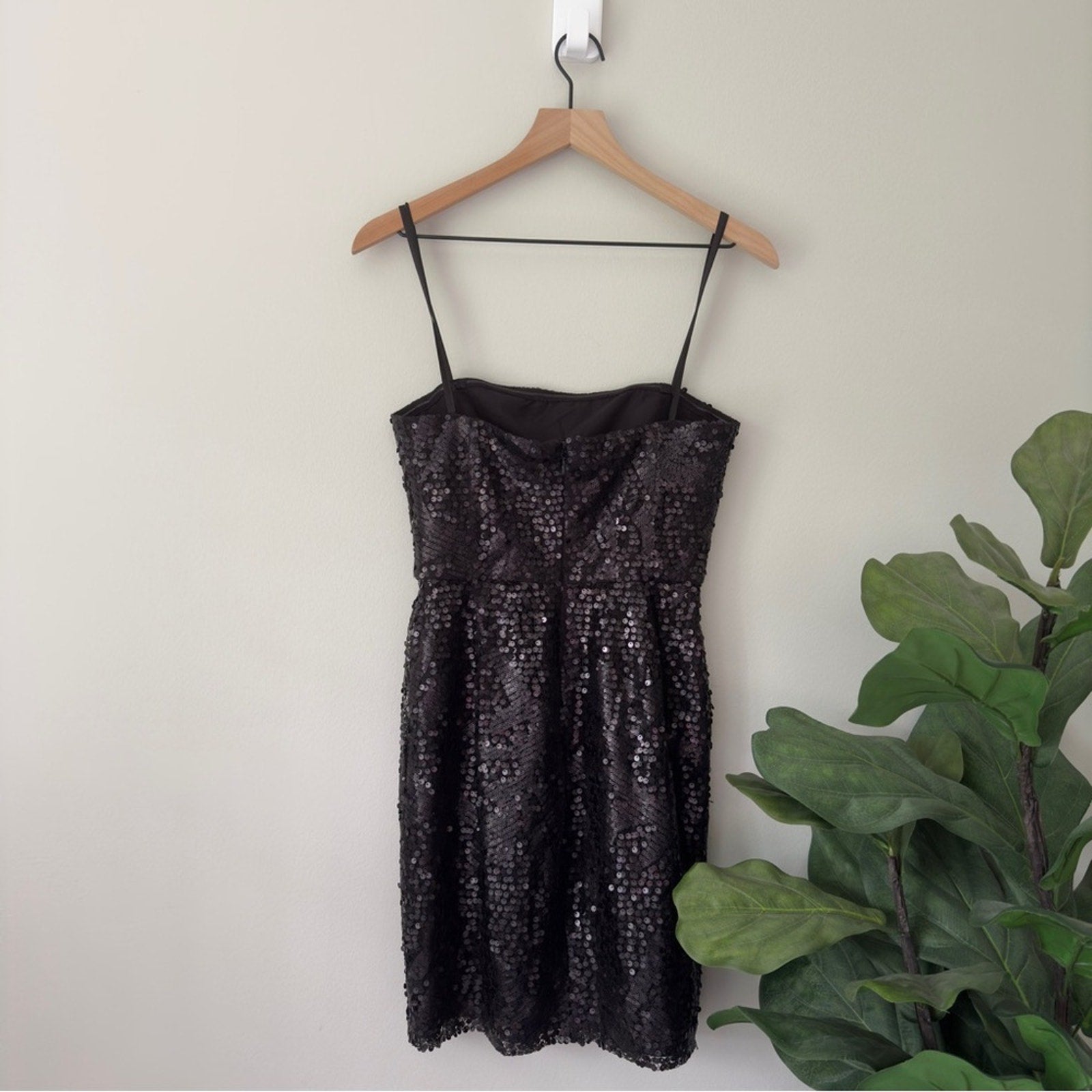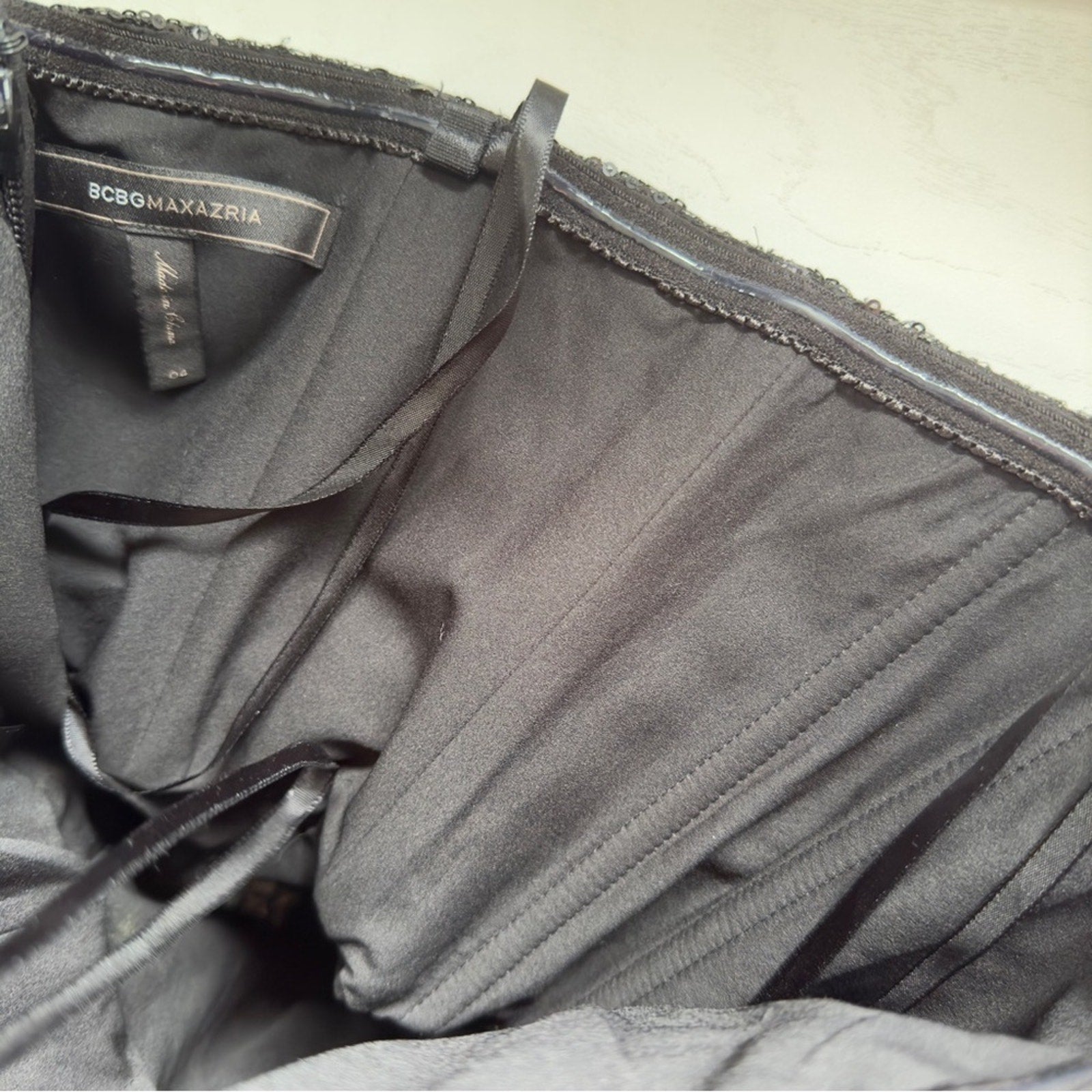 BCBGMaxAzria Carole Strapless Black Sequin Mini Dress Lined Zipper Back Party 4