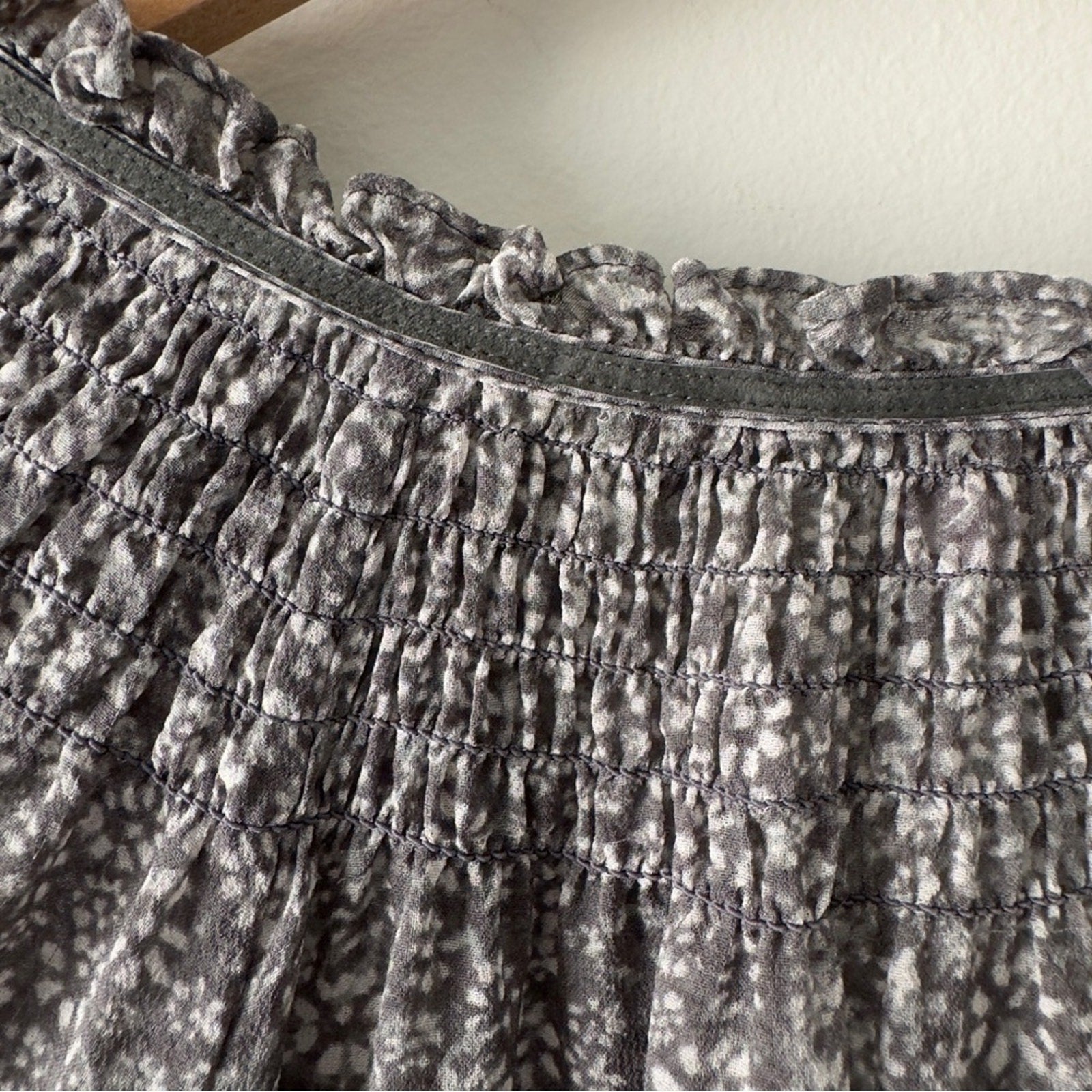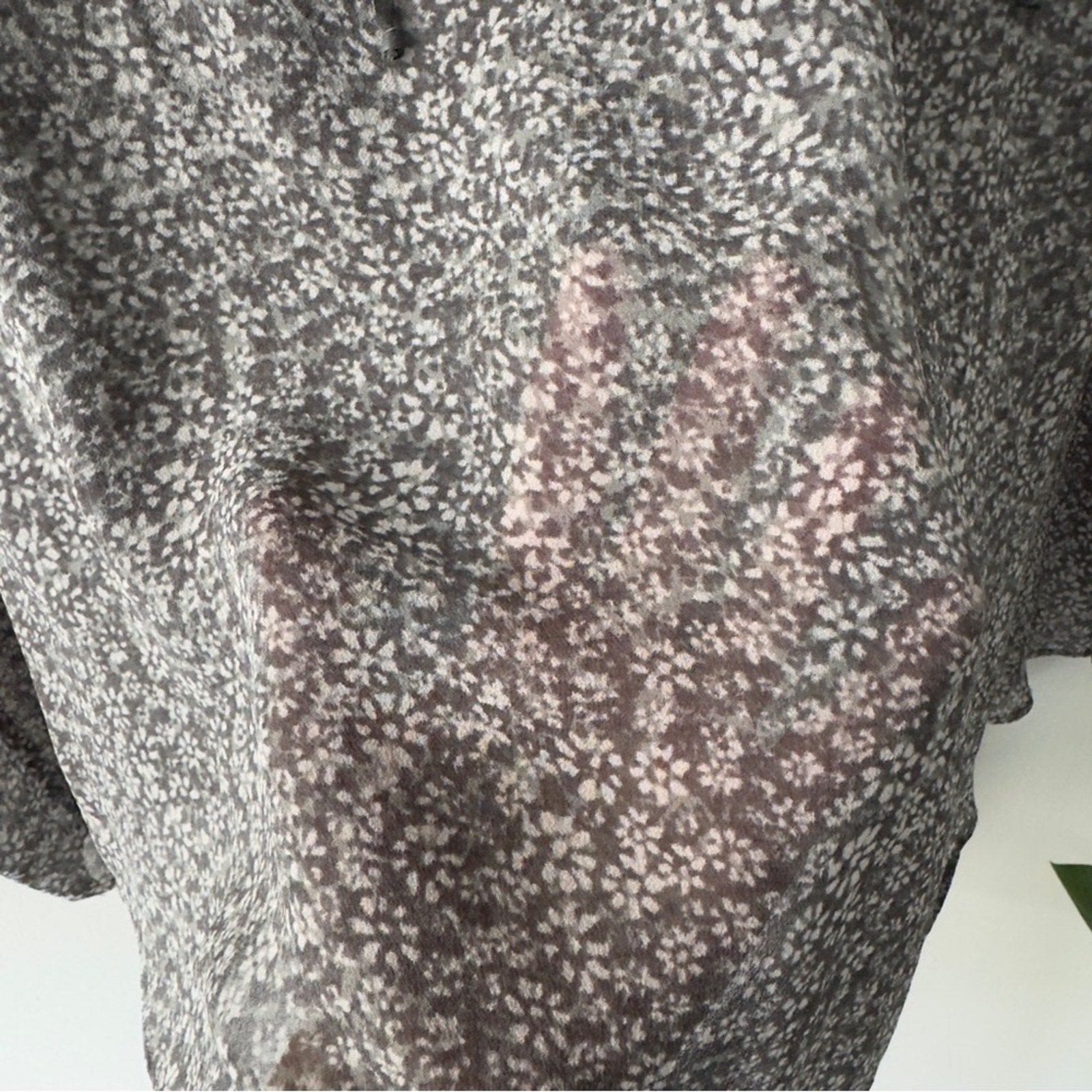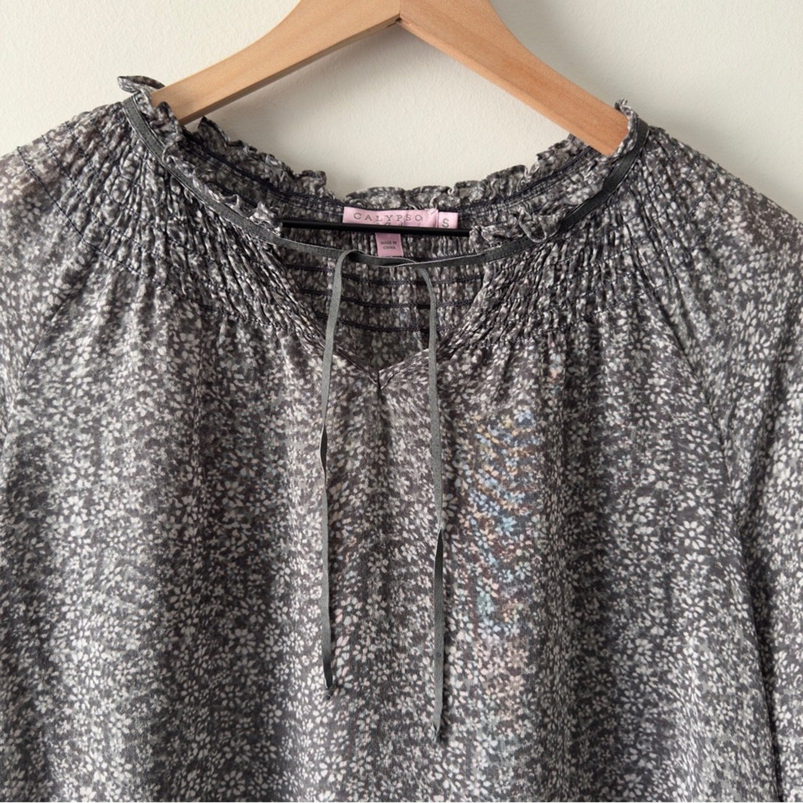 Calypso St. Barth 100% Silk Gray and white Blouse long sleeve sheer floral smock