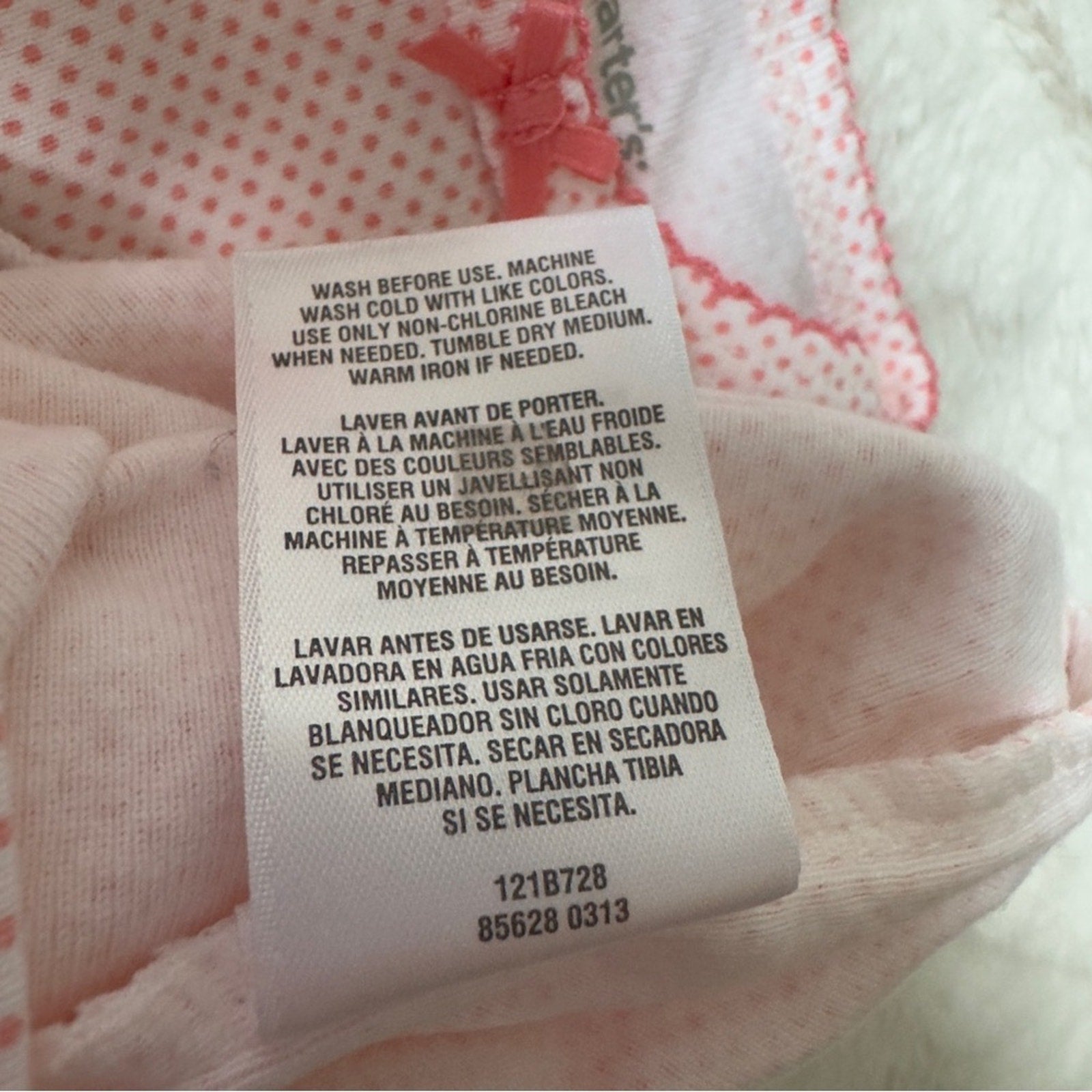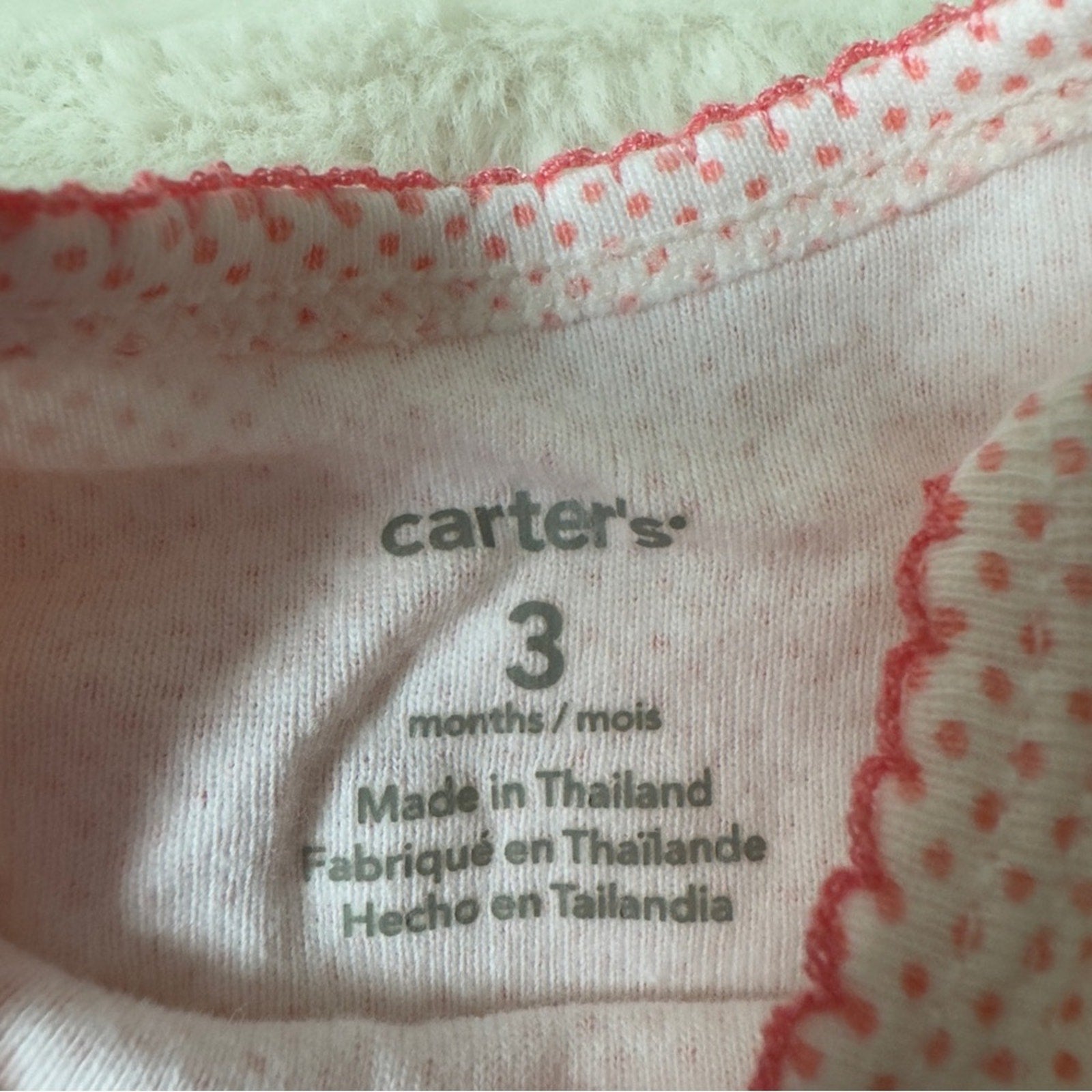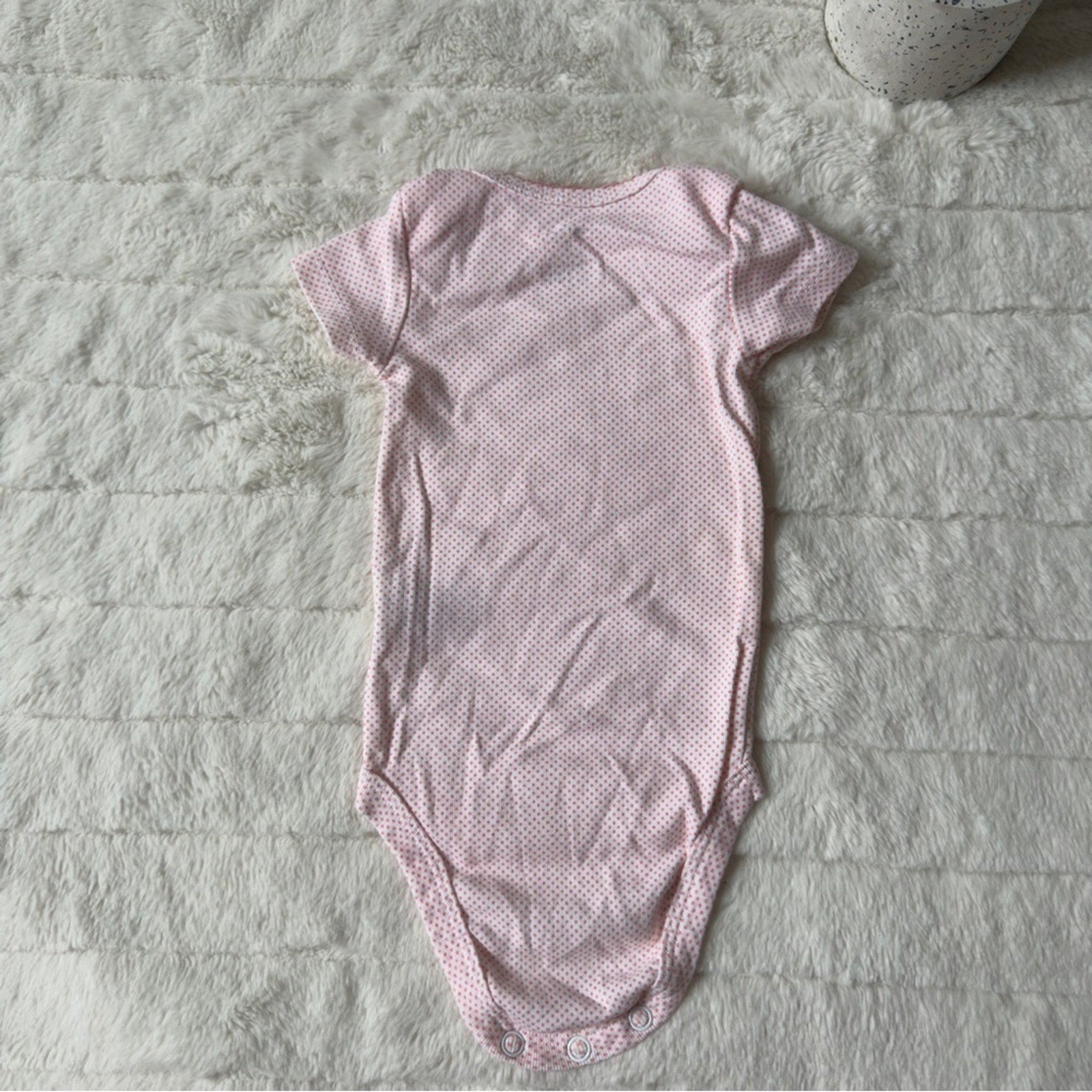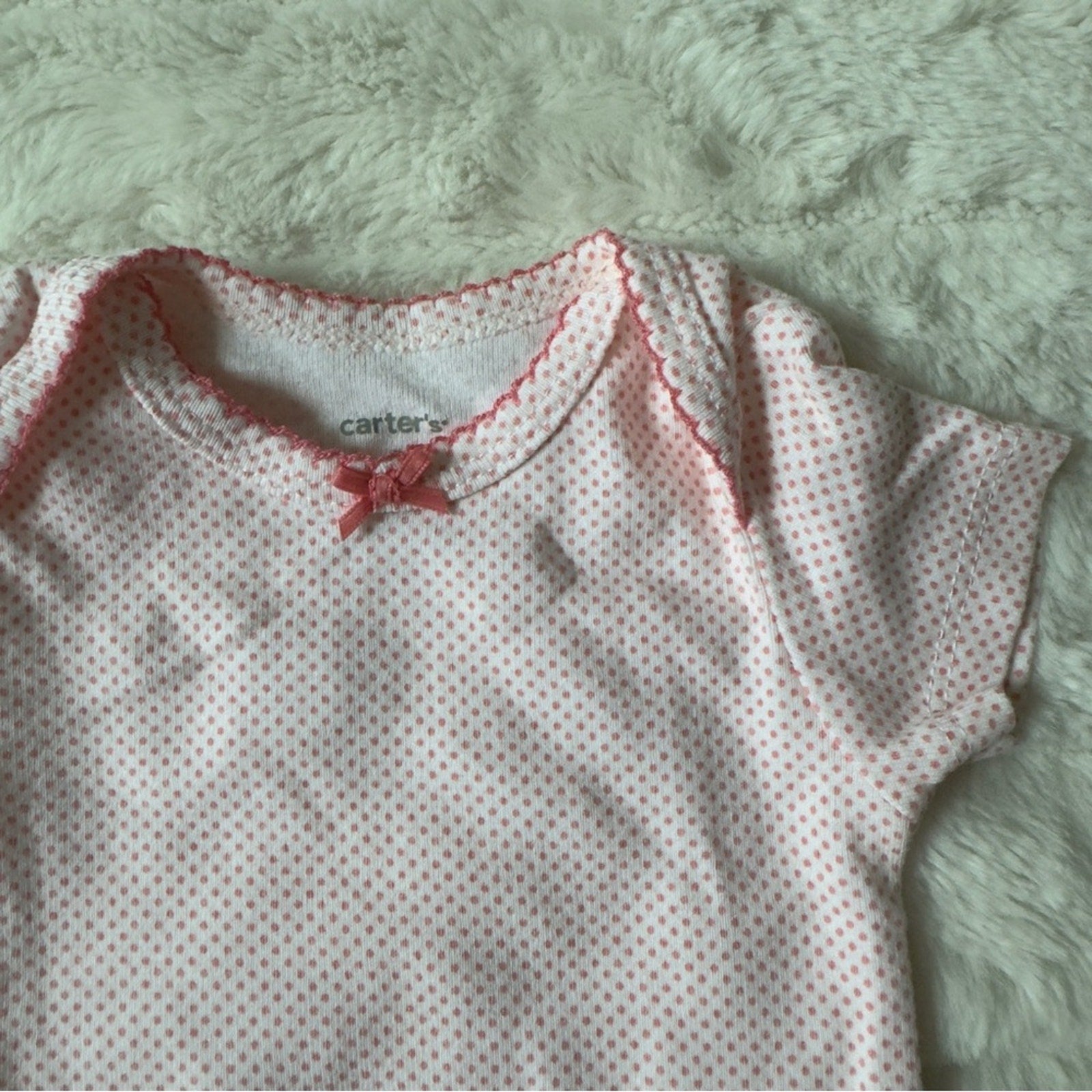 Carter's Pink Polka Dot Baby onesie one piece short sleeve bow snaps 3 months 3m