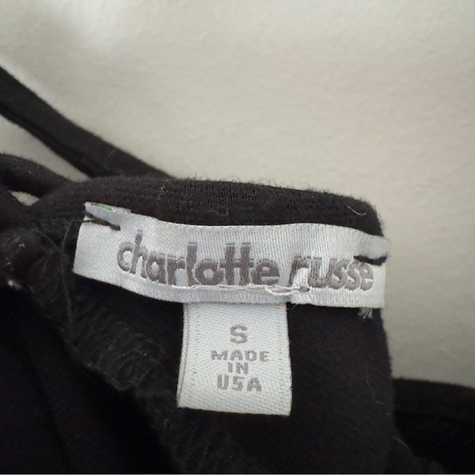 Charlotte Russe Black Strappy Bodysuit Tie Back One Piece Spaghetti Strap Solid