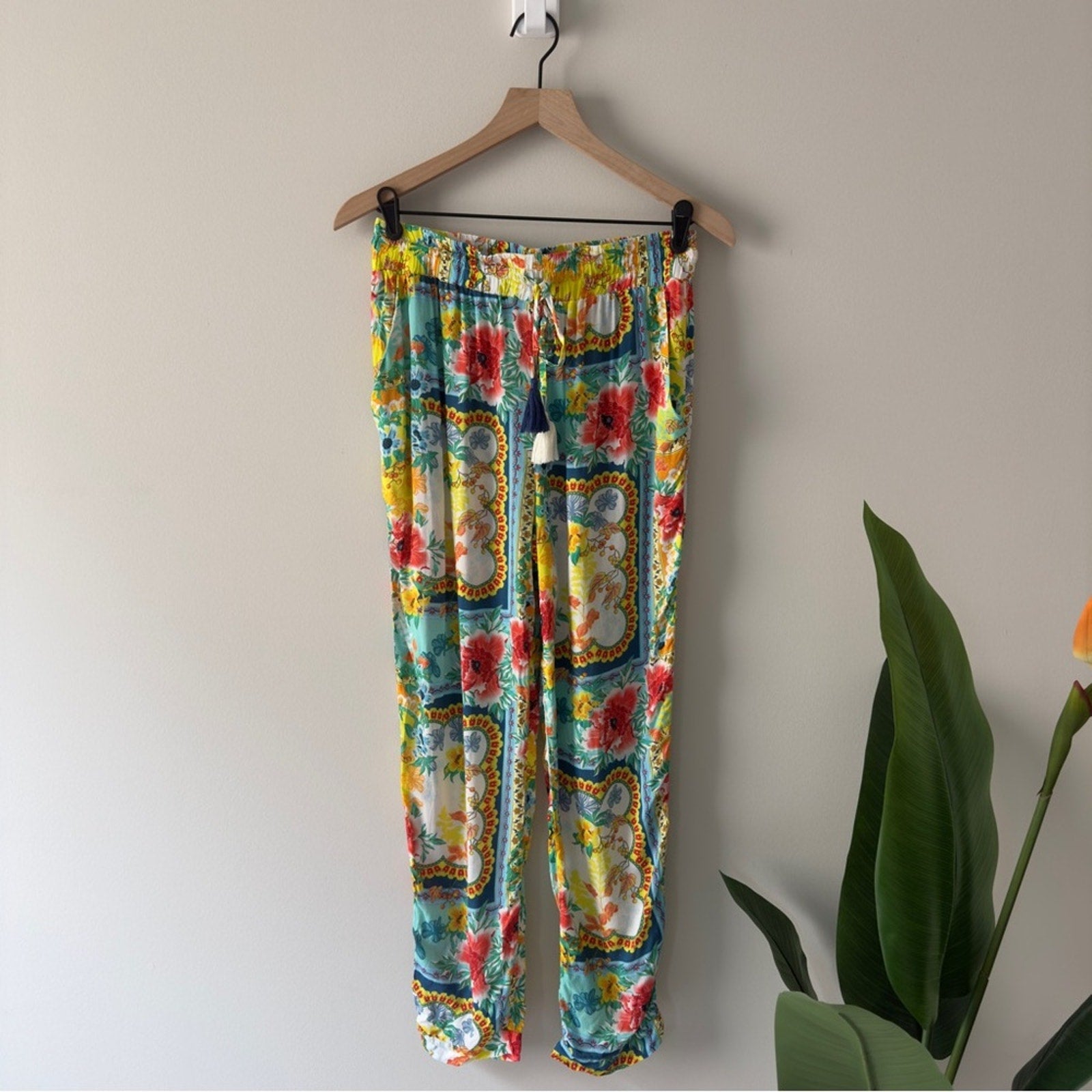 Cia. Maritima Floral Print Women's Pants Boho Bohemian Hippie Tassel Drawstring