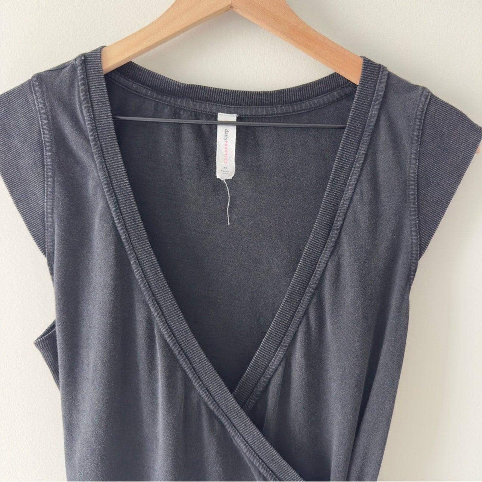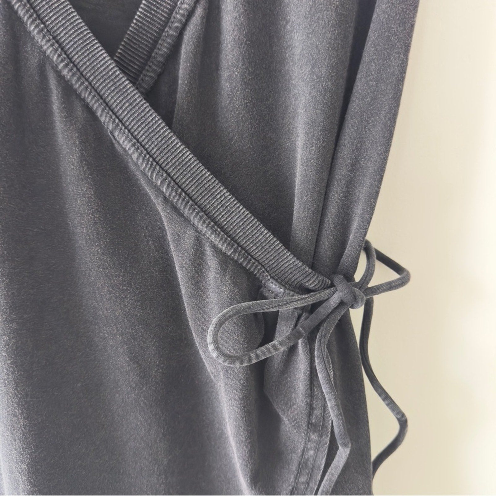Daily Practice by Anthropologie Montauk V-Neck Dress Black Wrap Mini Cotton Tie