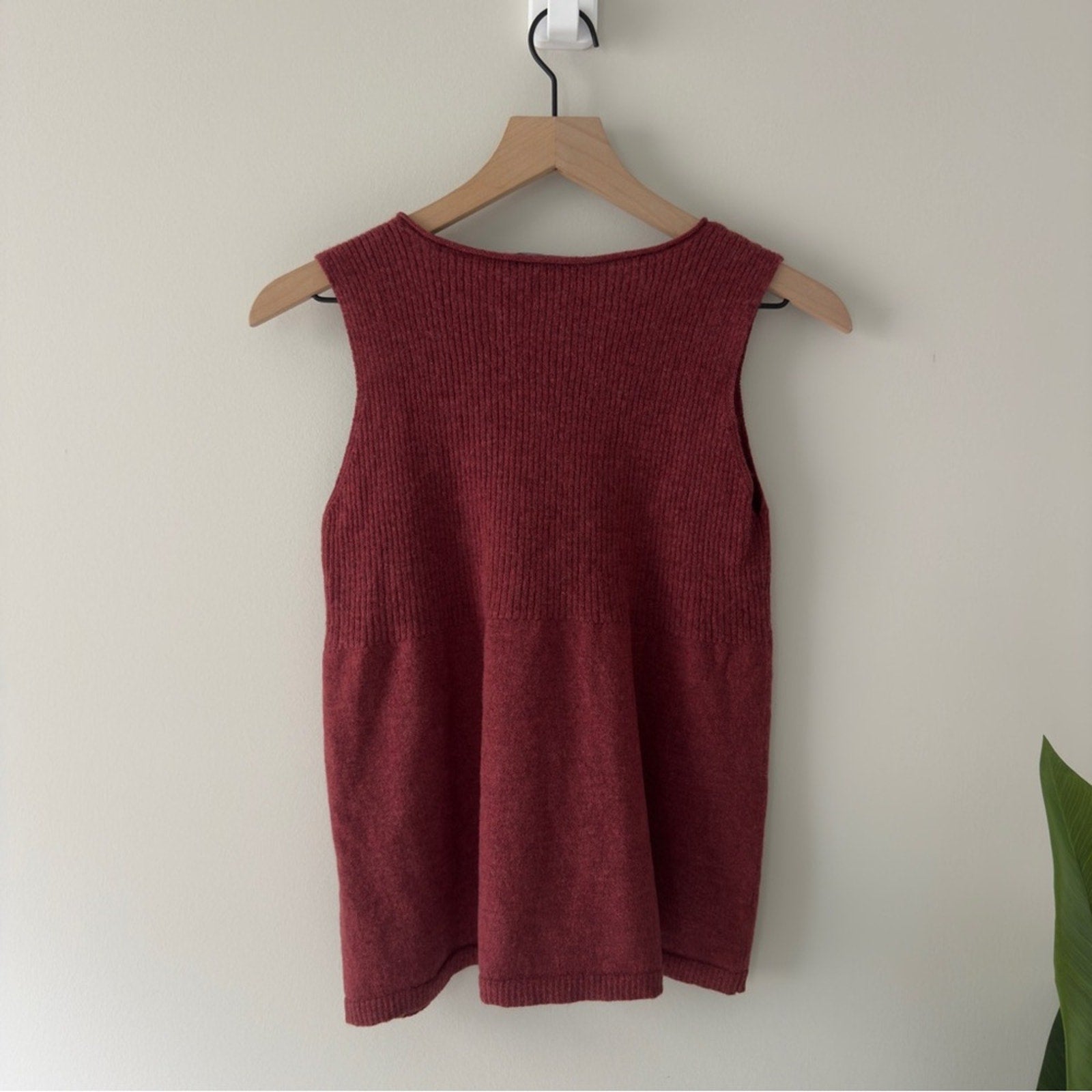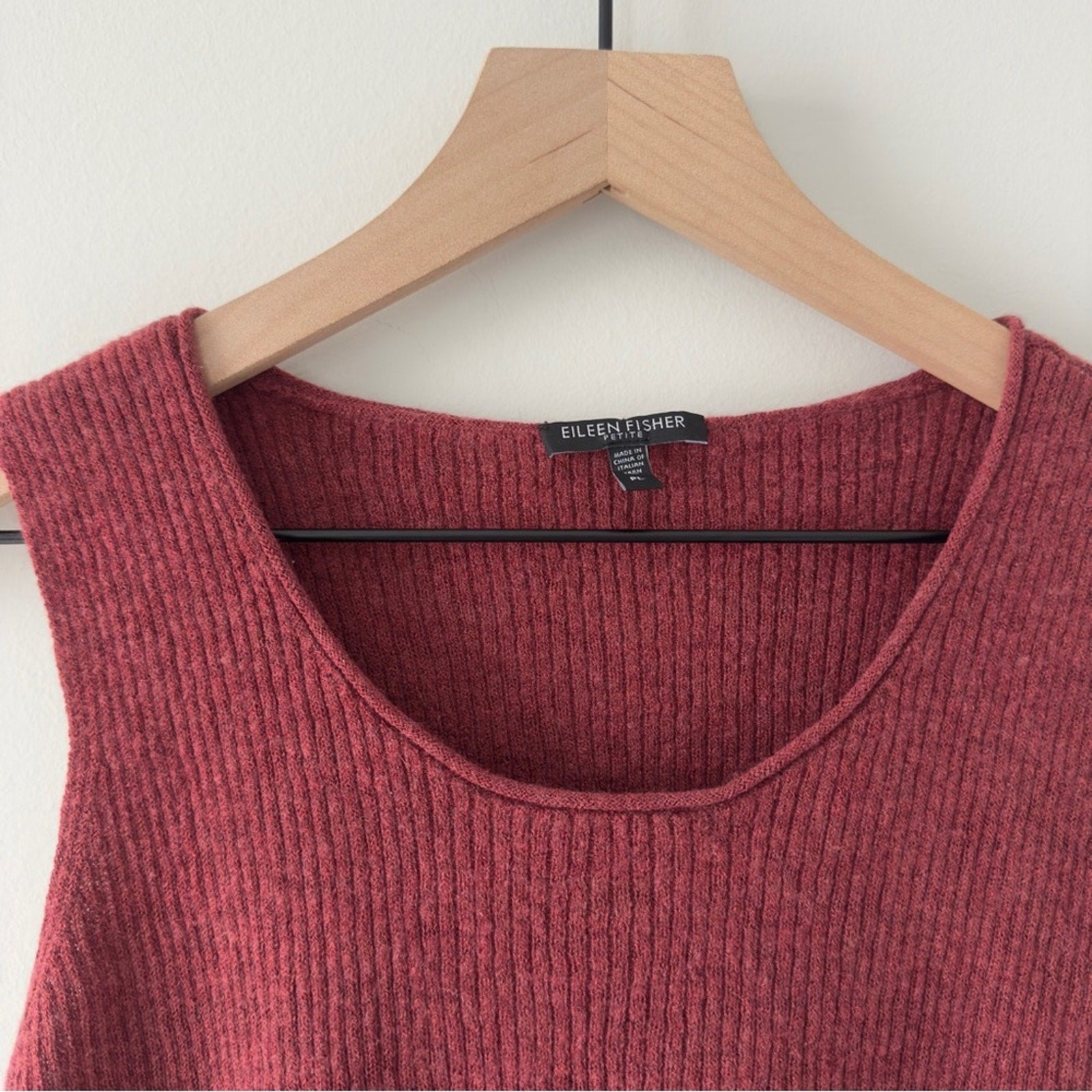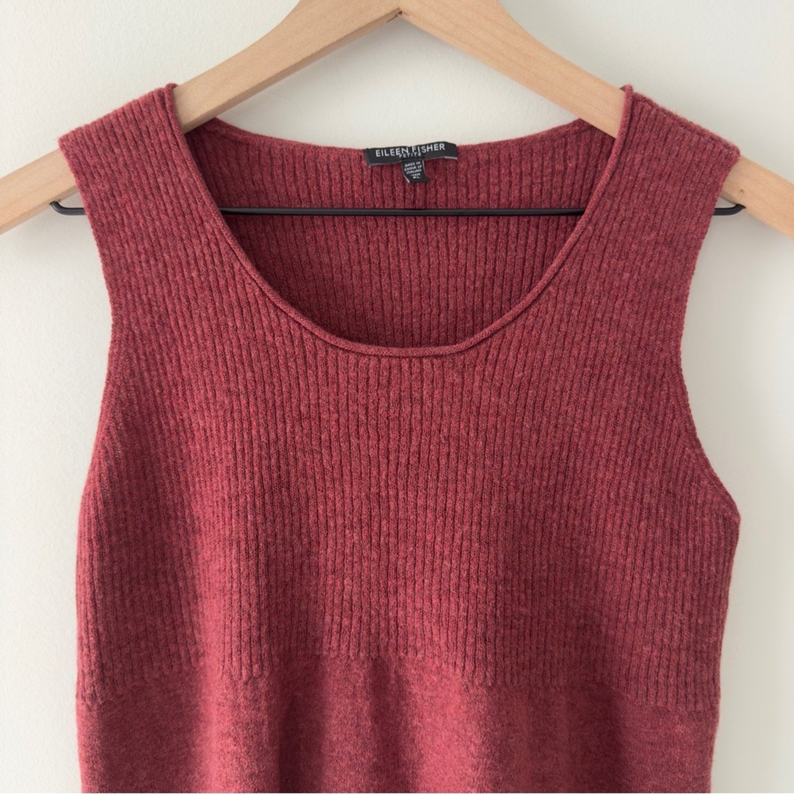Eileen Fisher 100% Wool Red Fitted Sleeveless Tank Top ribbed round neck solid