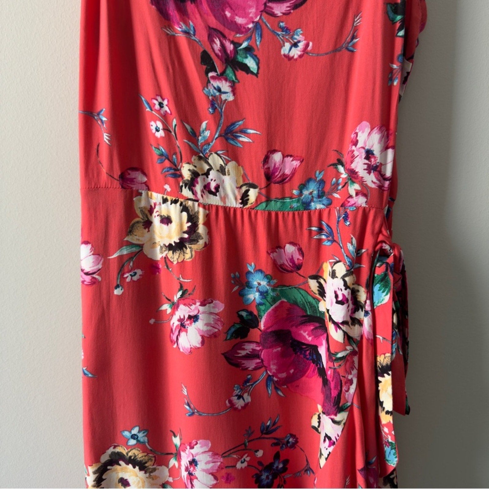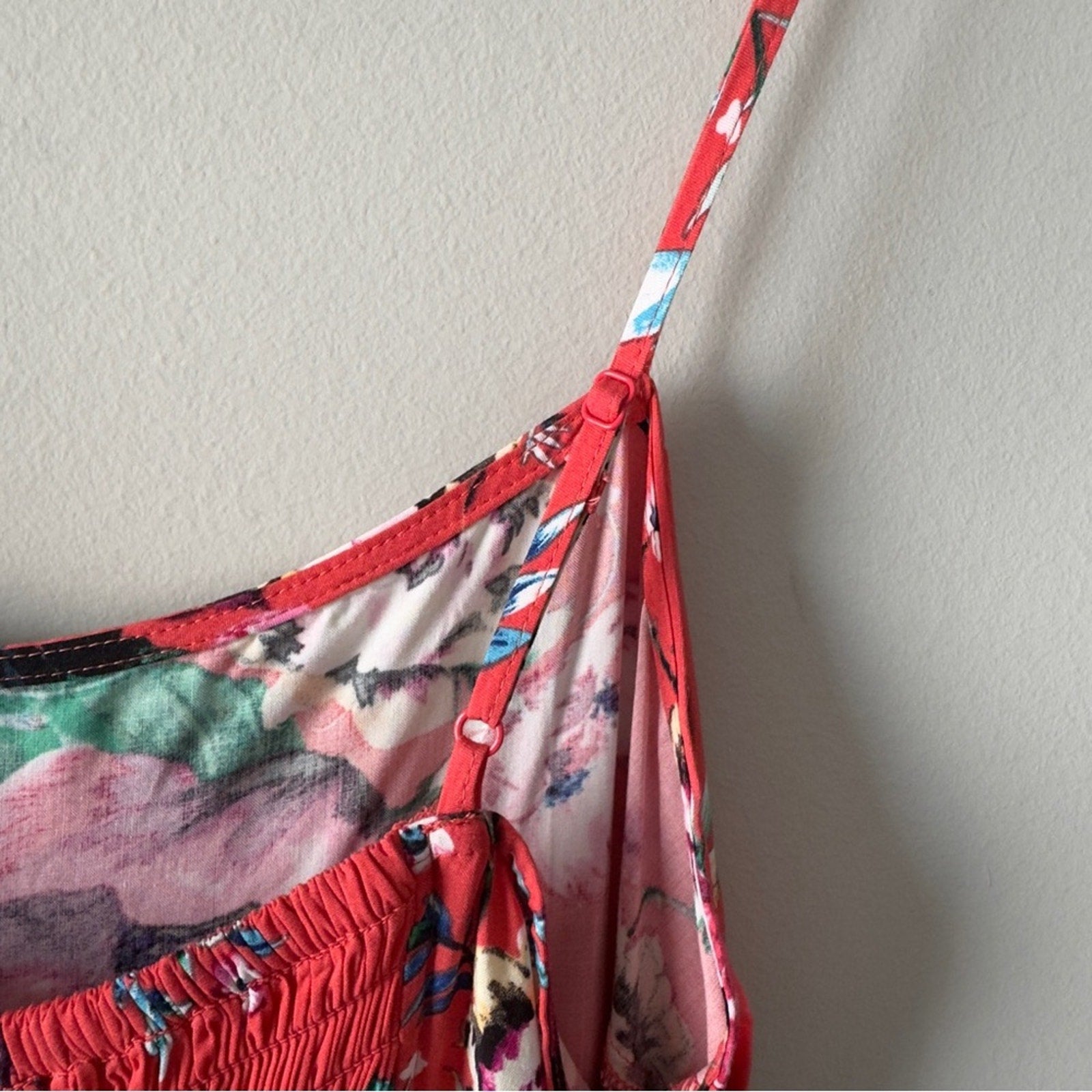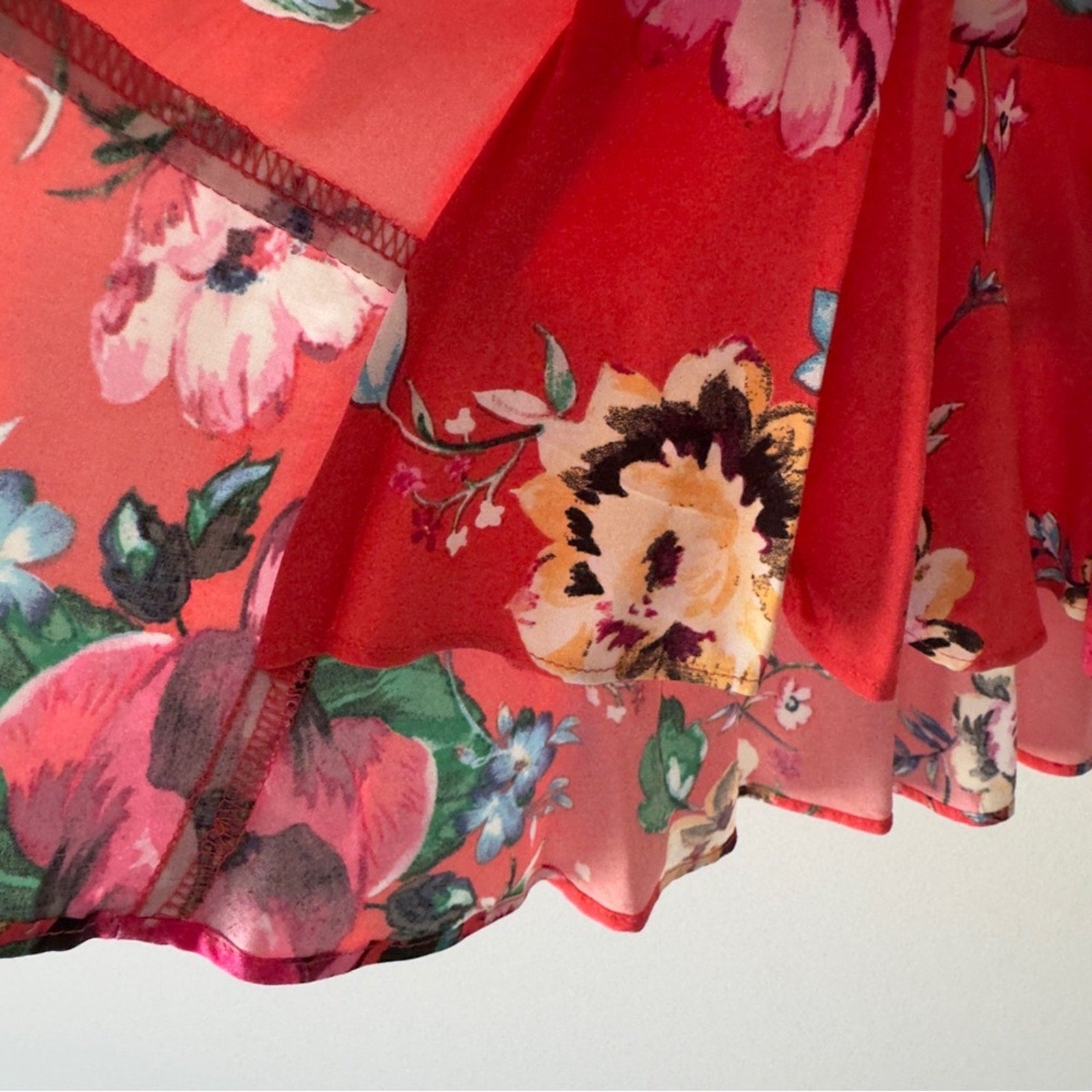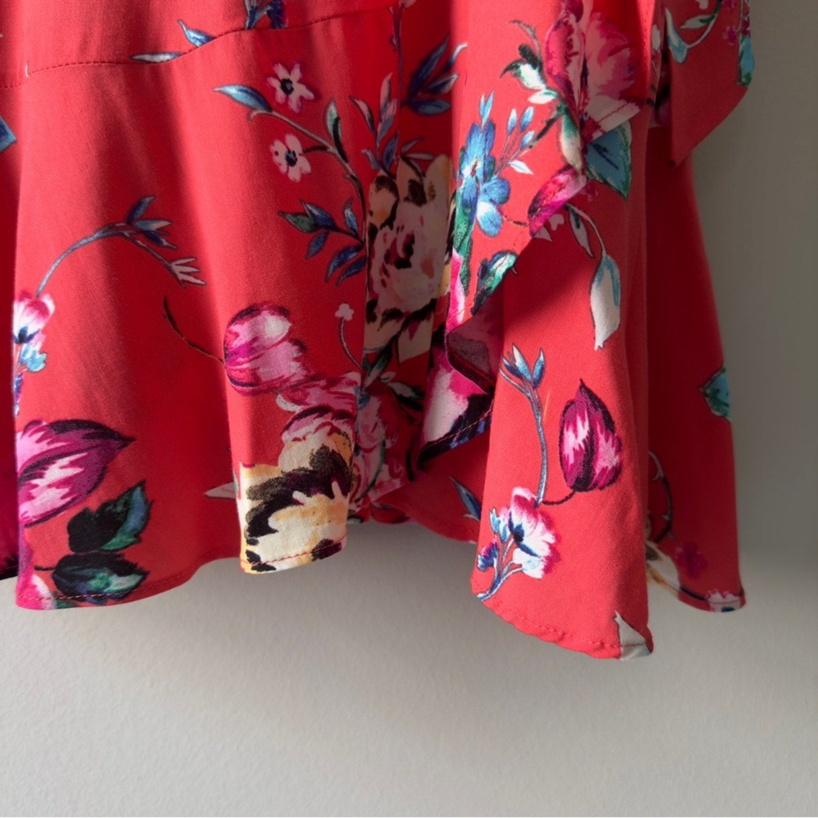 Express Floral Mini Faux Rap Dress adjustable spaghetti straps tropical ruffle M