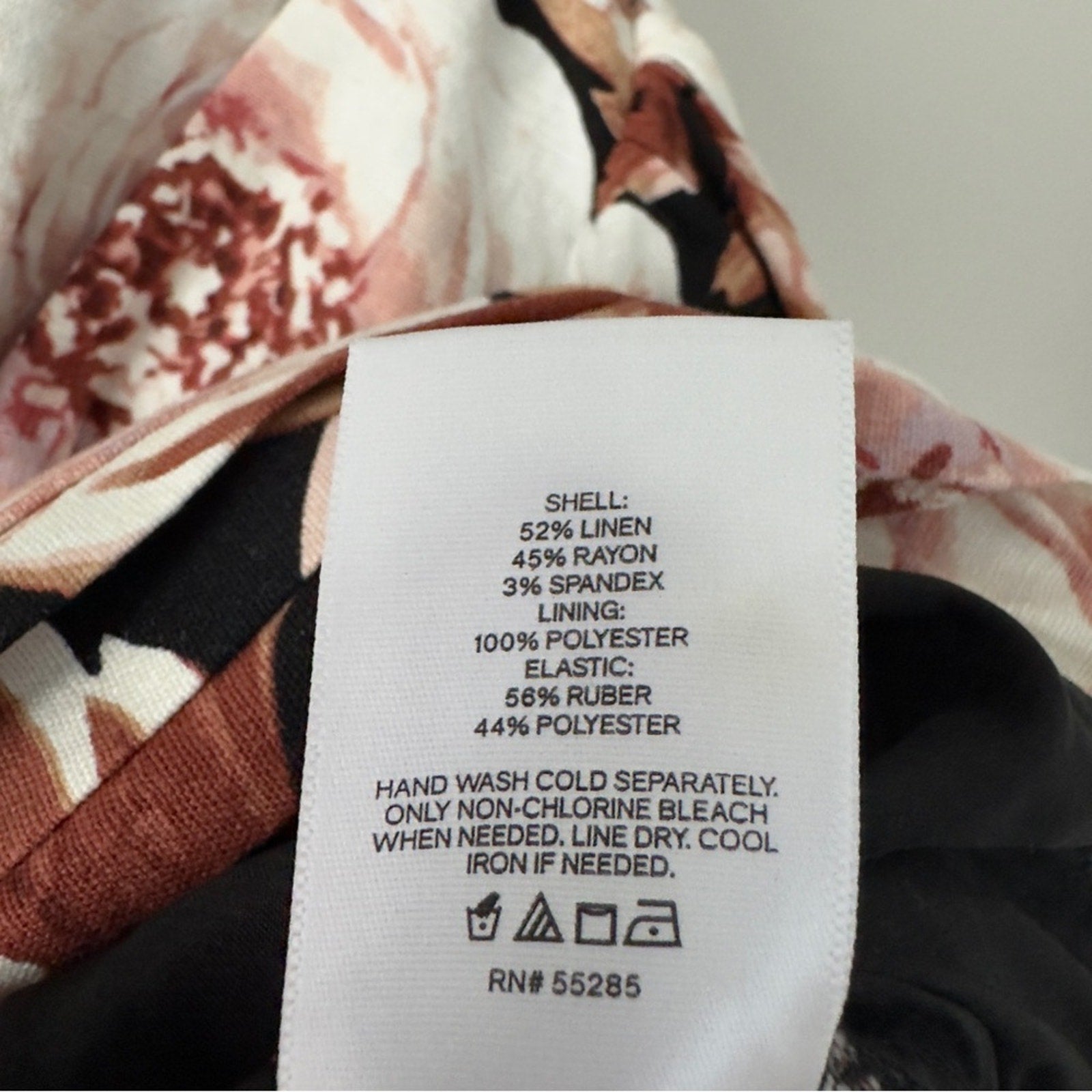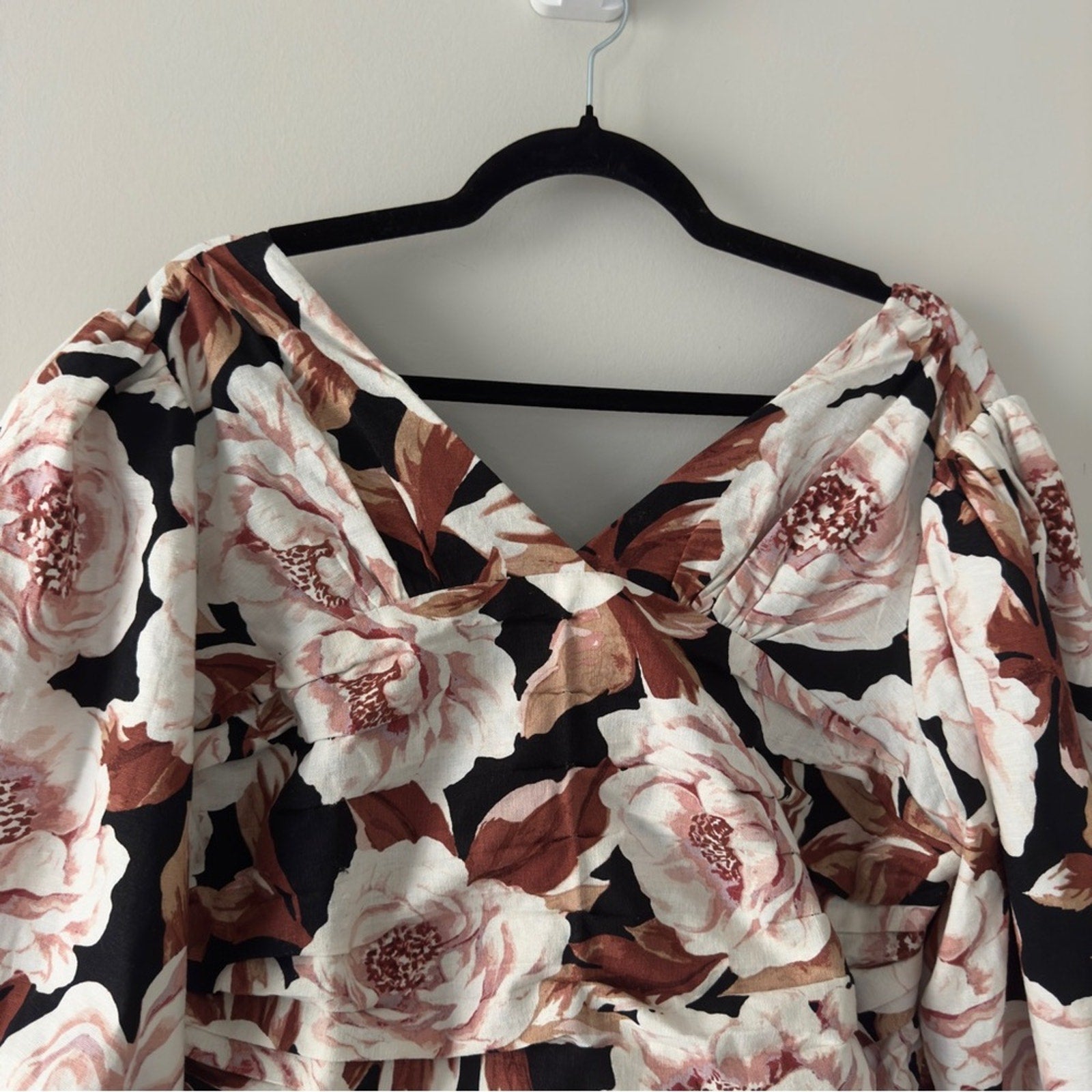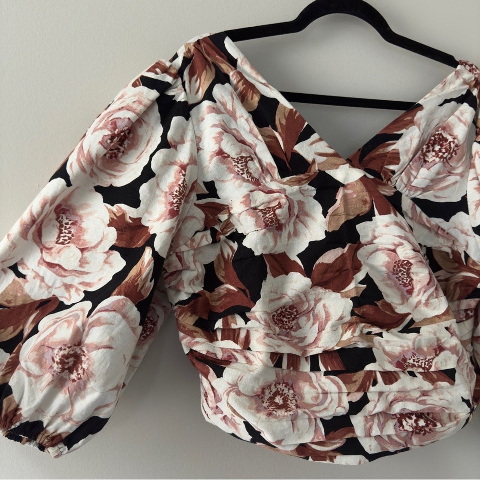 Express Floral Puff Sleeve Ruched pleated Crop top V-neck linen blend stretch XL