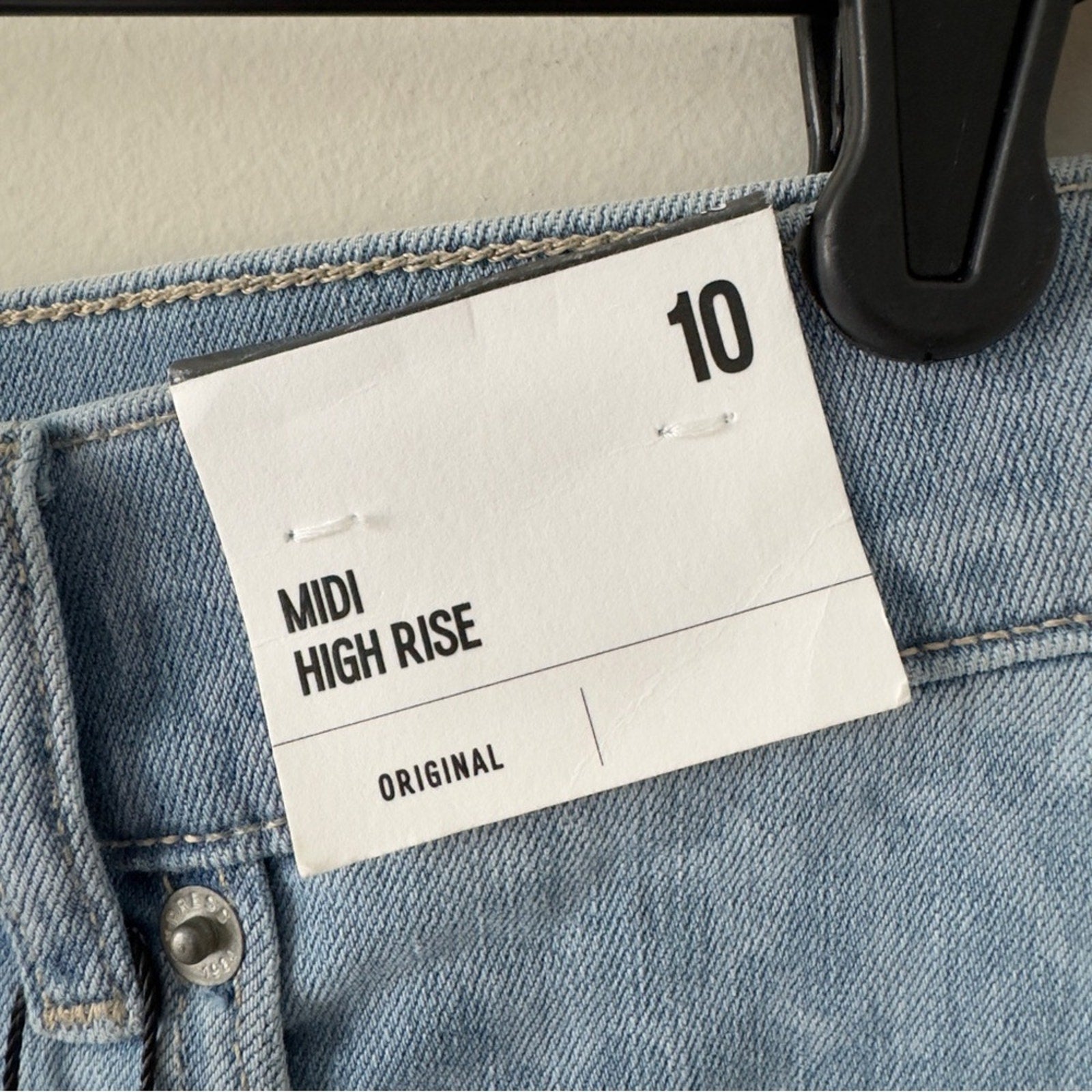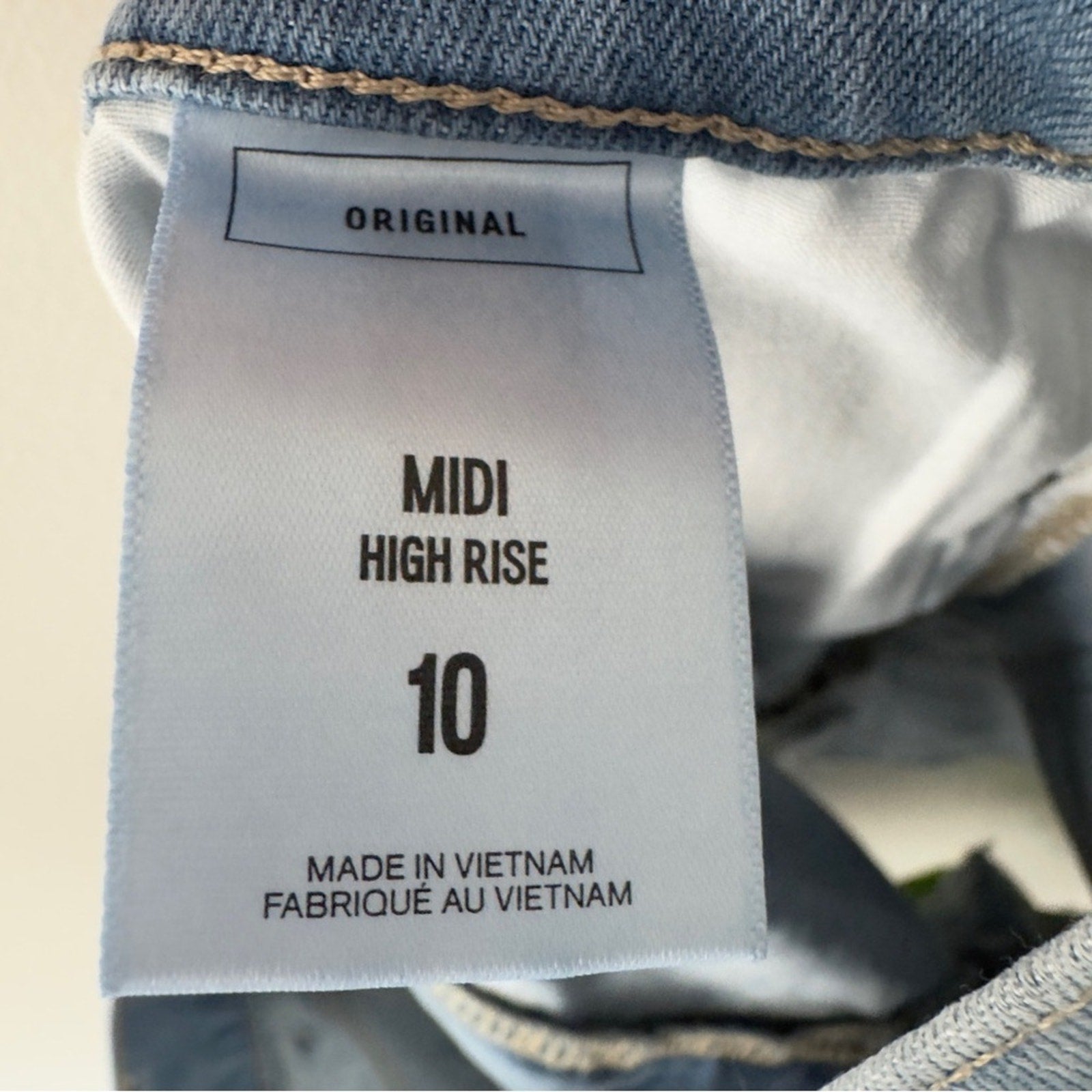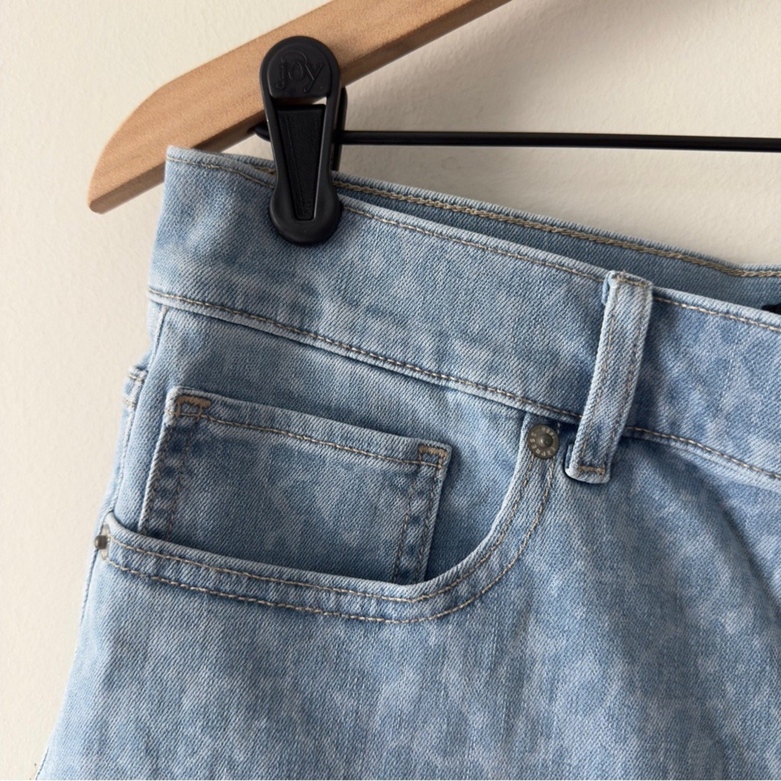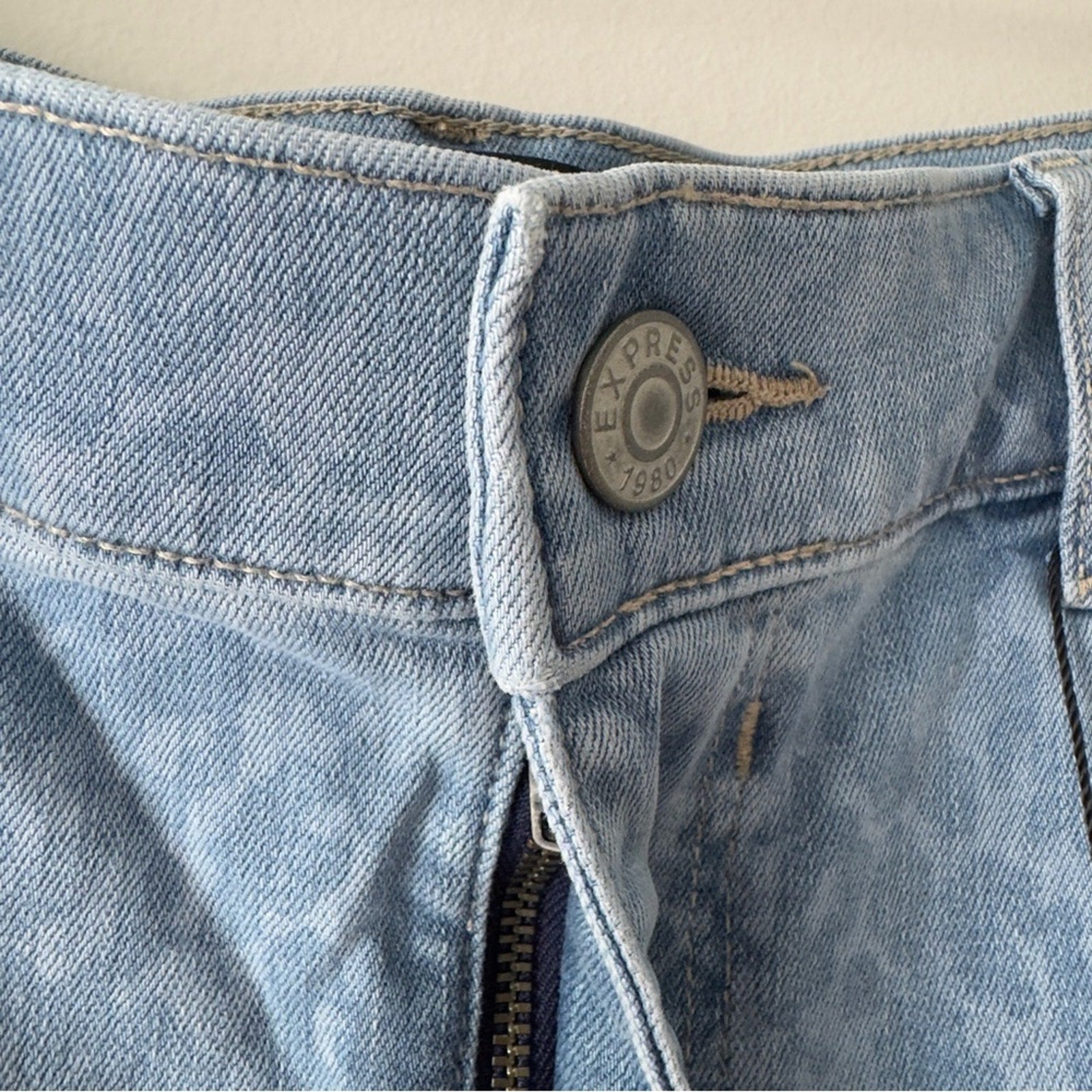 Express Midi High Rise Shorts Light Blue Leopard Print Jean Denim Zip Button NWT