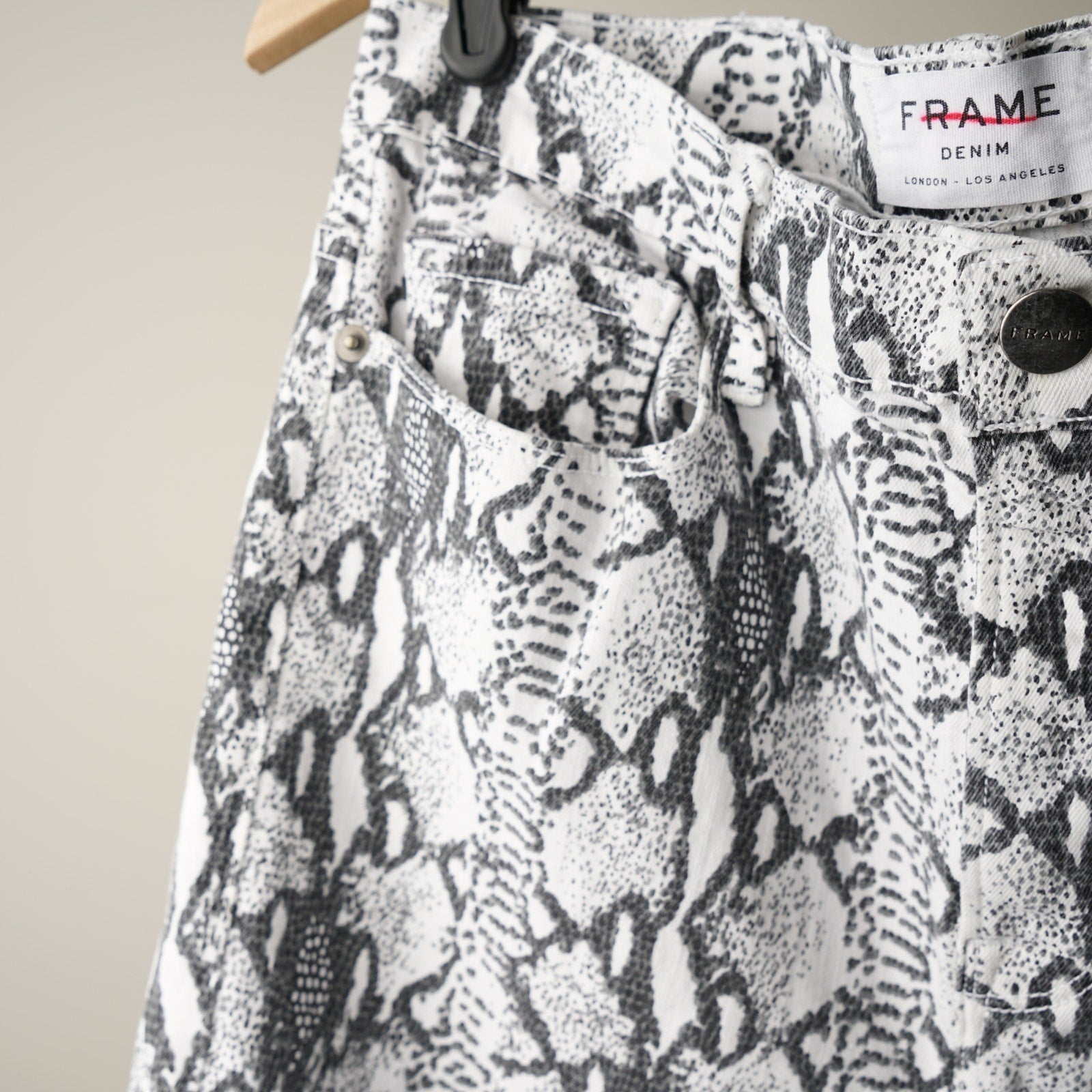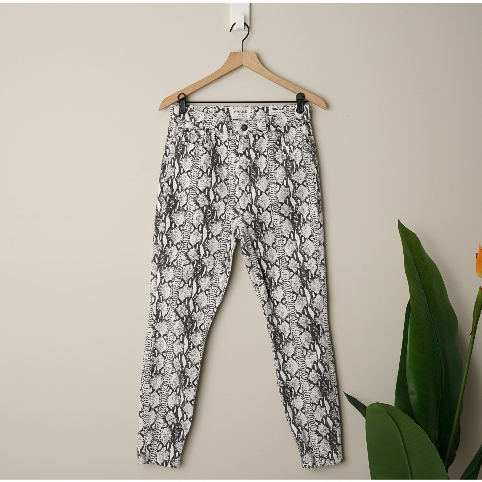 Frame Ali High Rise Cigarette Jeans in Gris Multi Python Snake Print Skinny EUC