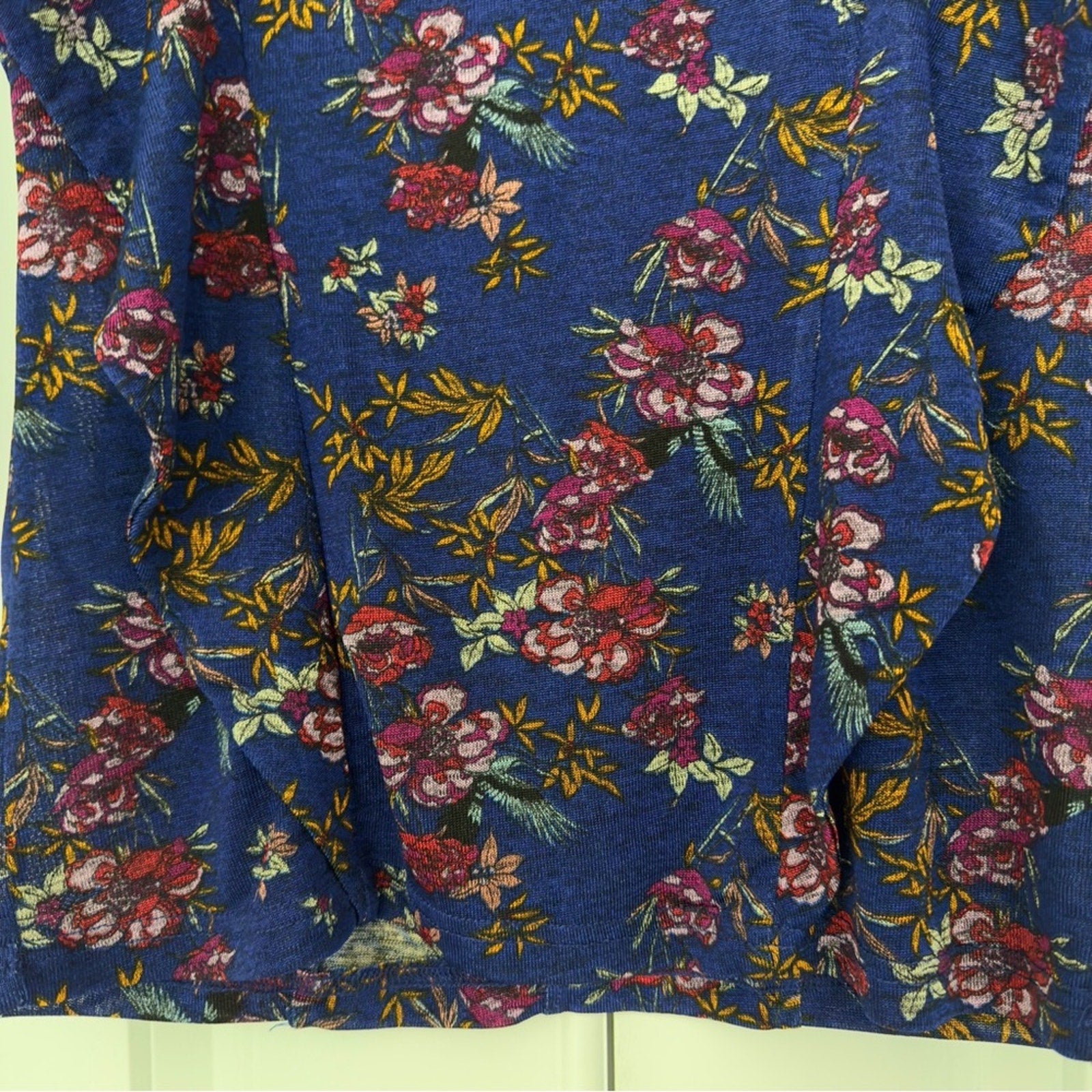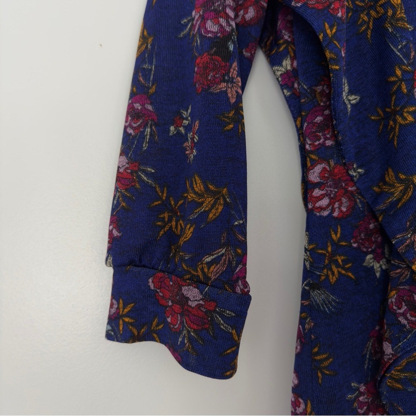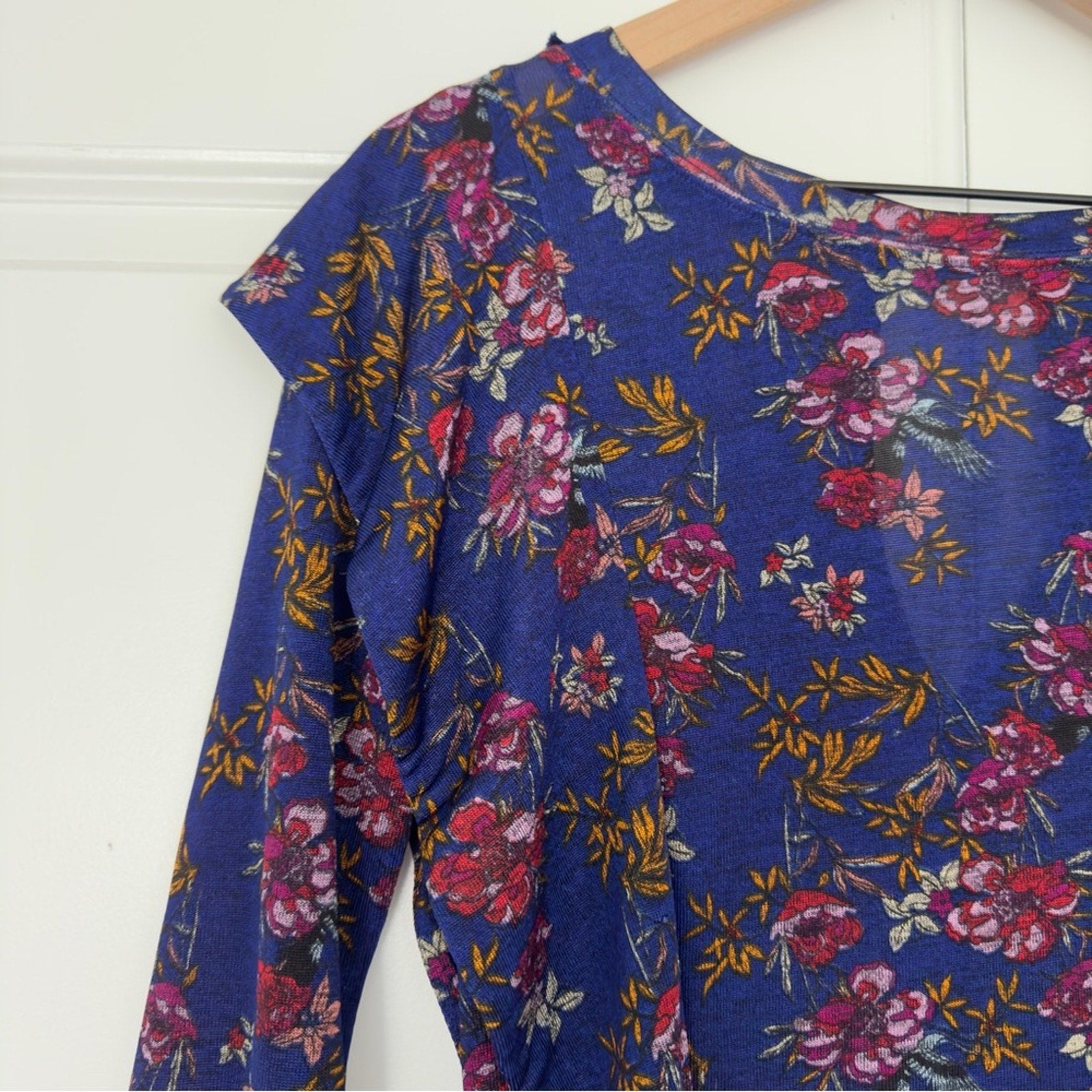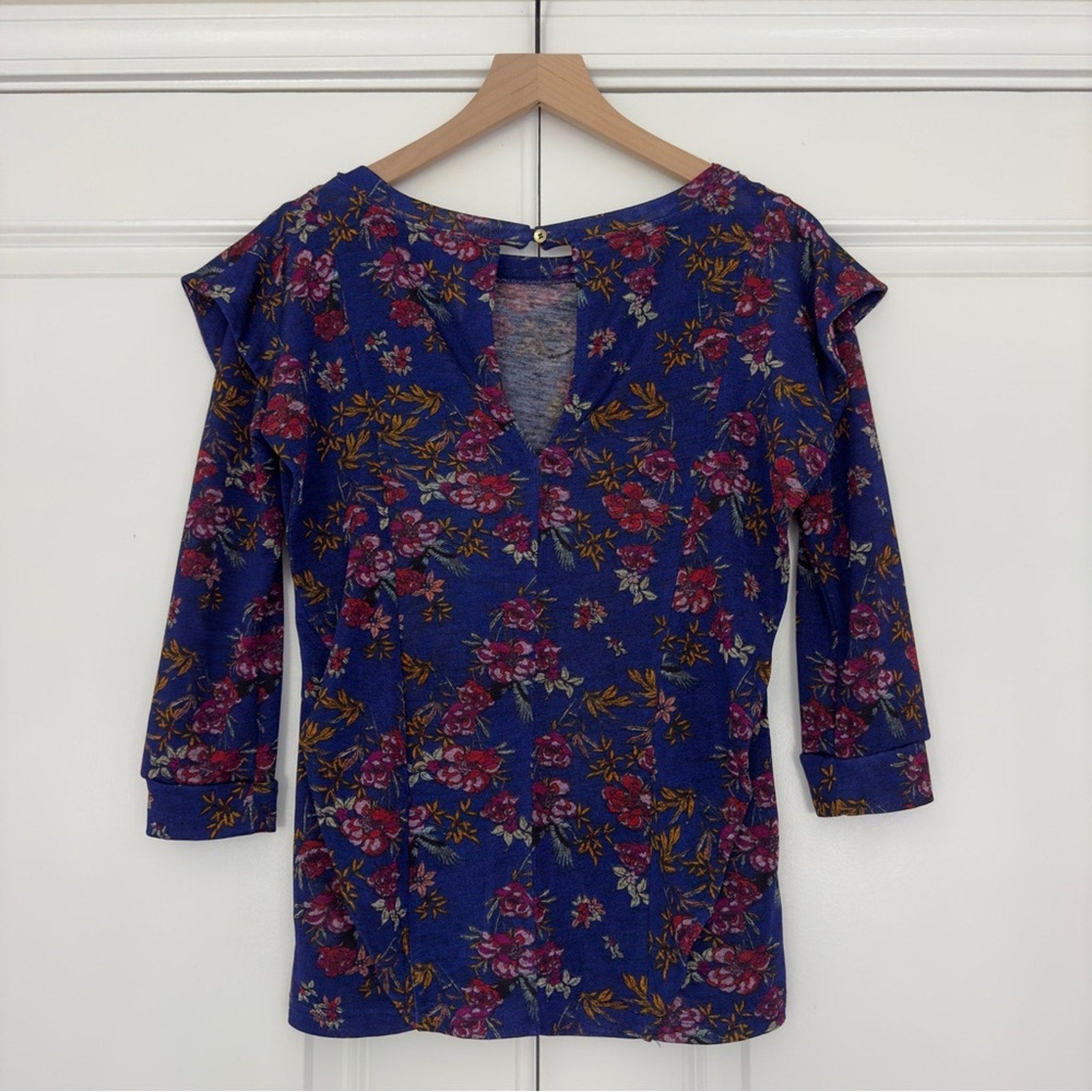 Free People Dock Street Top Ruffle Floral 3/4 Sleeve Top Button Keyhole Back XS