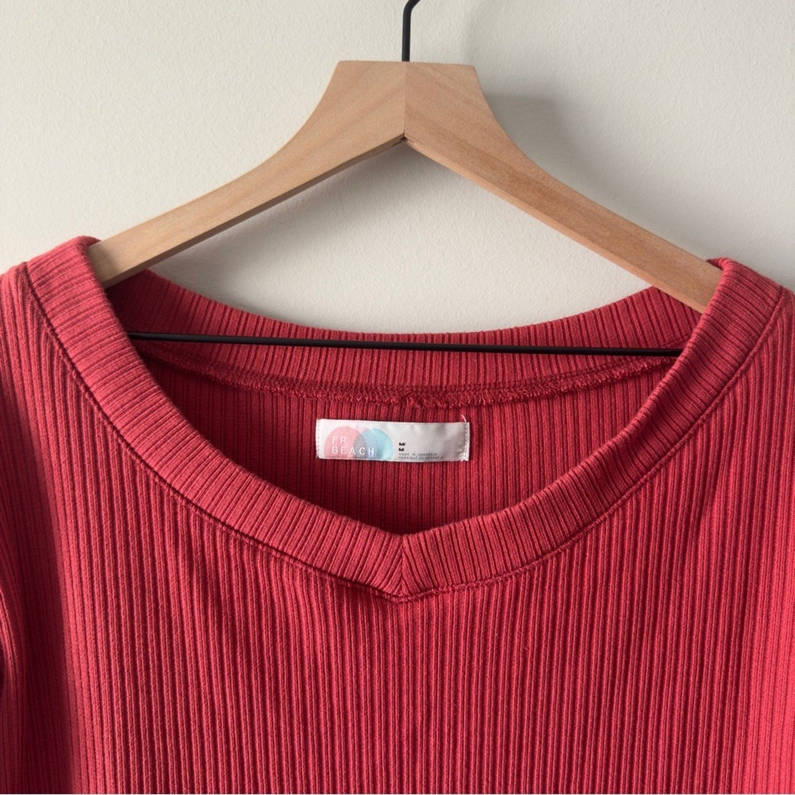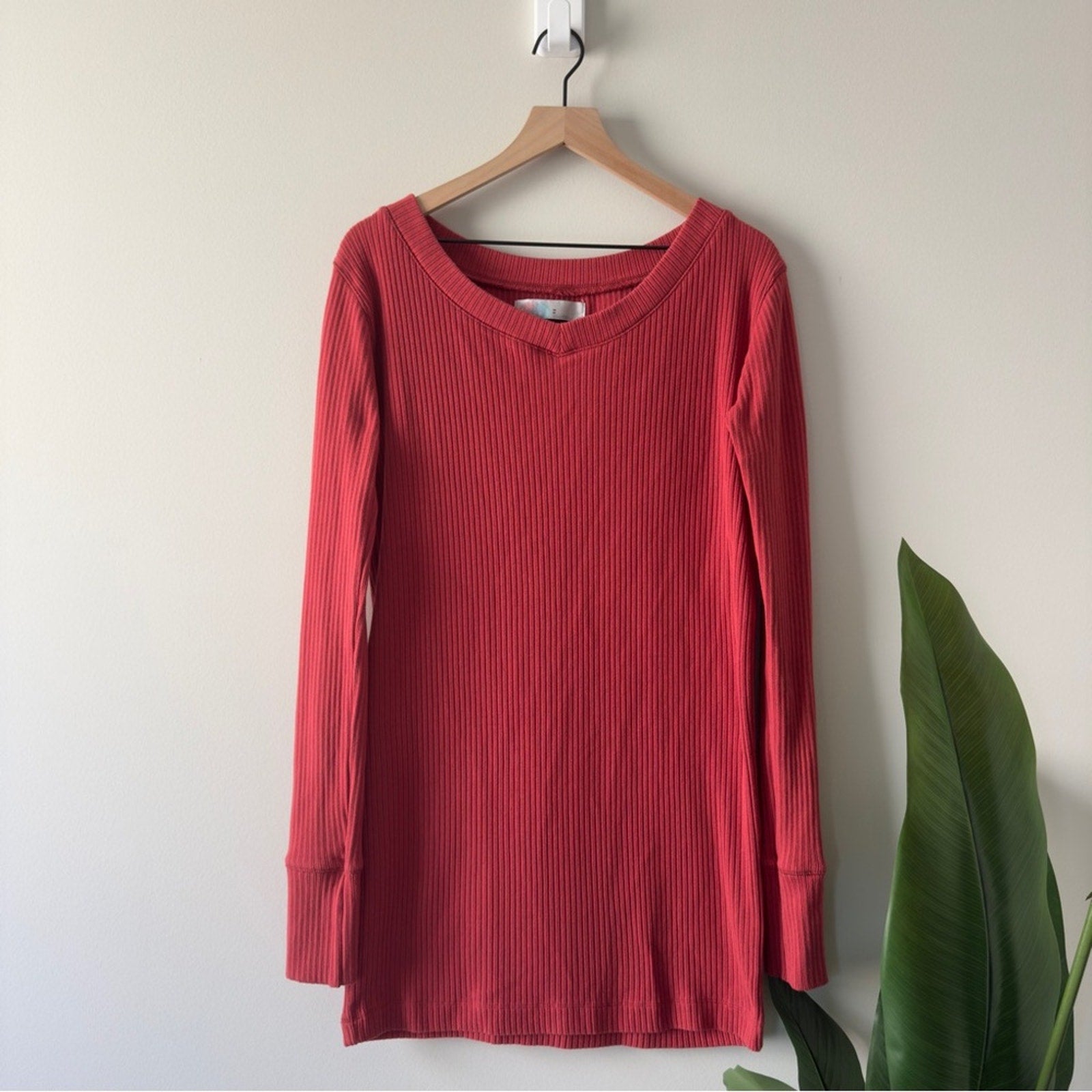 Free People FP Beach Ribbed Long Sleeve Tunic Cotton Stretch Casual oversized M