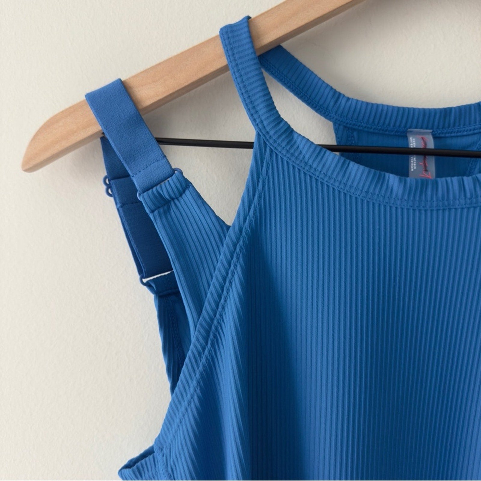 Vibrant blue racerback tank top. Ideal for active days.