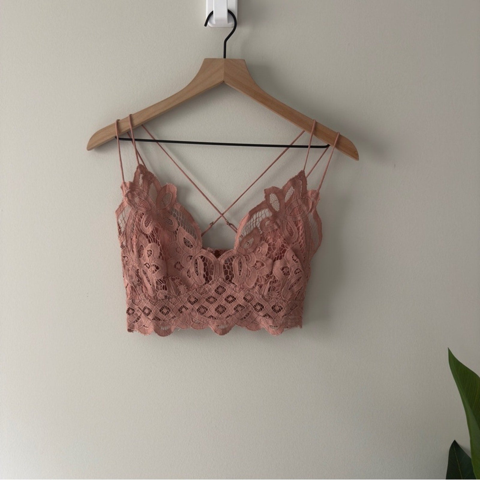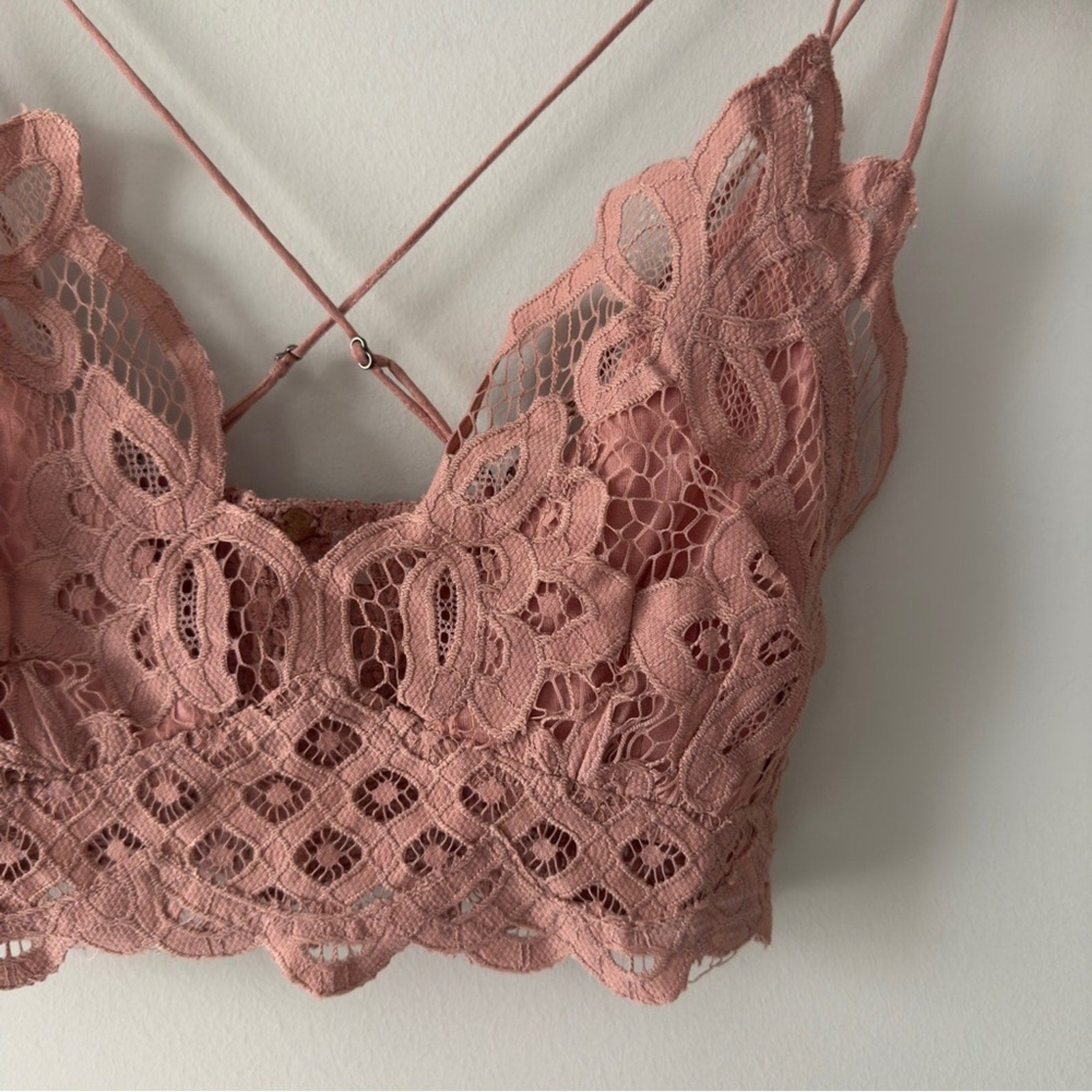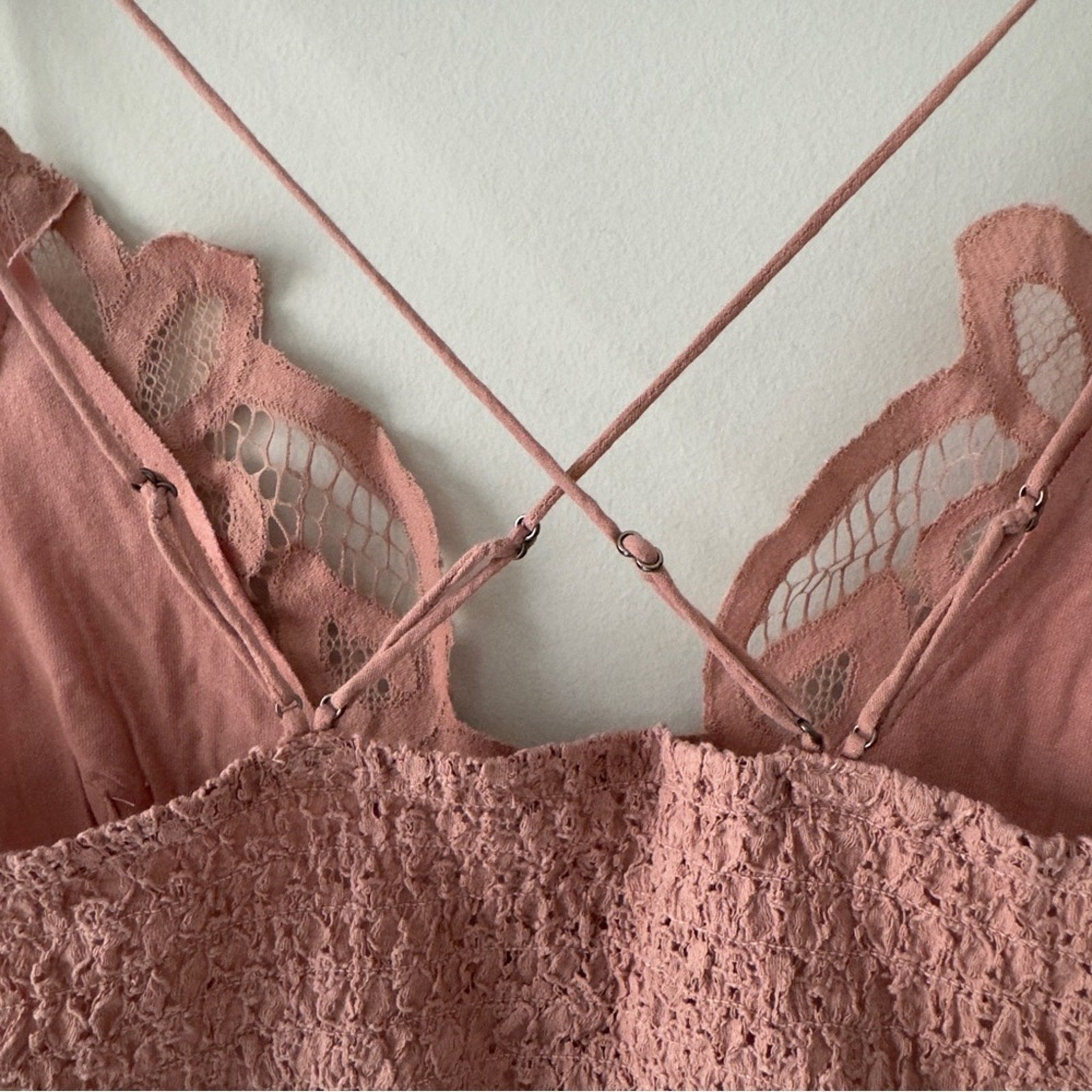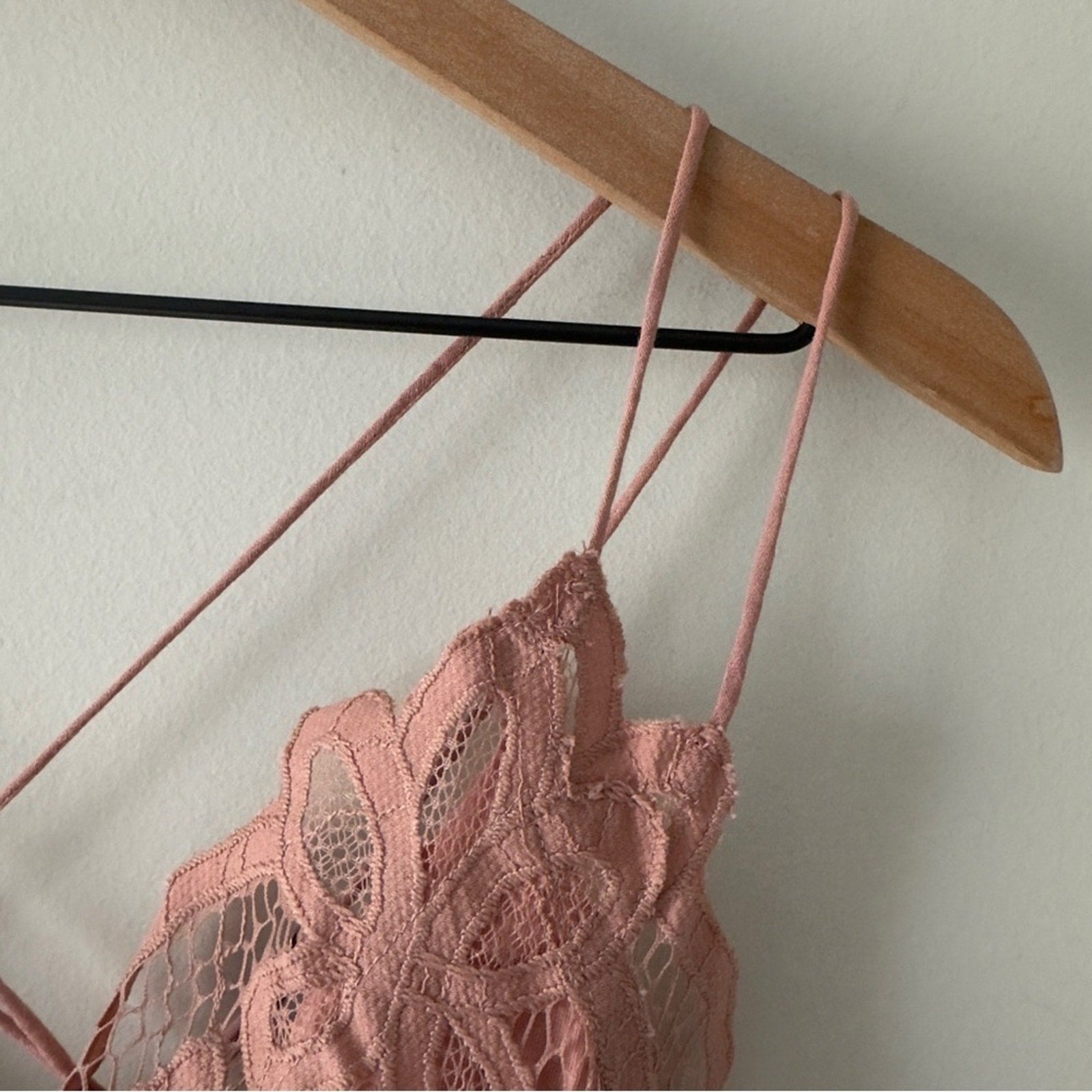 Free People FP One Adella Bralette Boho Lace Camisole Top Pink Rose bohemian M