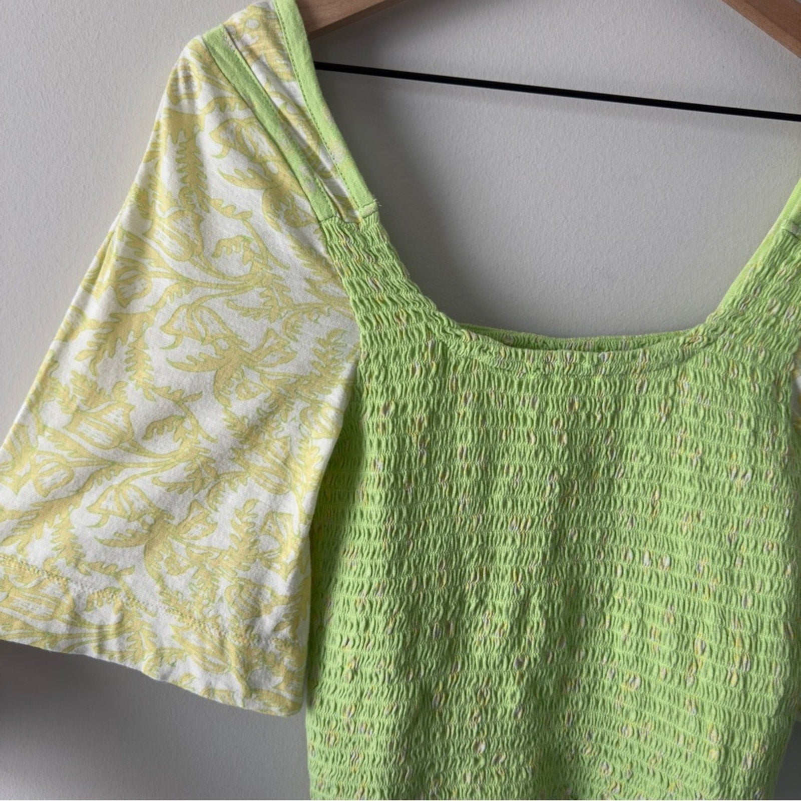 Free People Marigold Top in Key Lime Combo Smocked half Sleeve Cropped top green