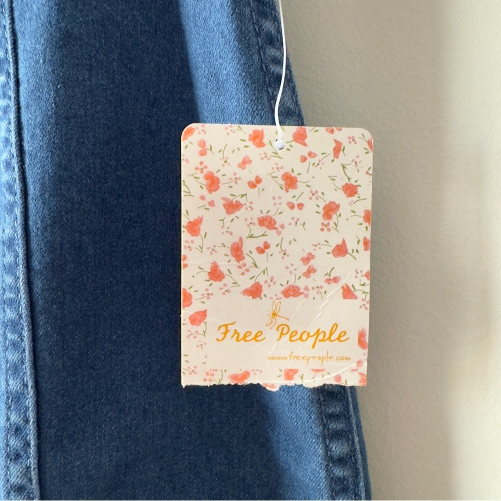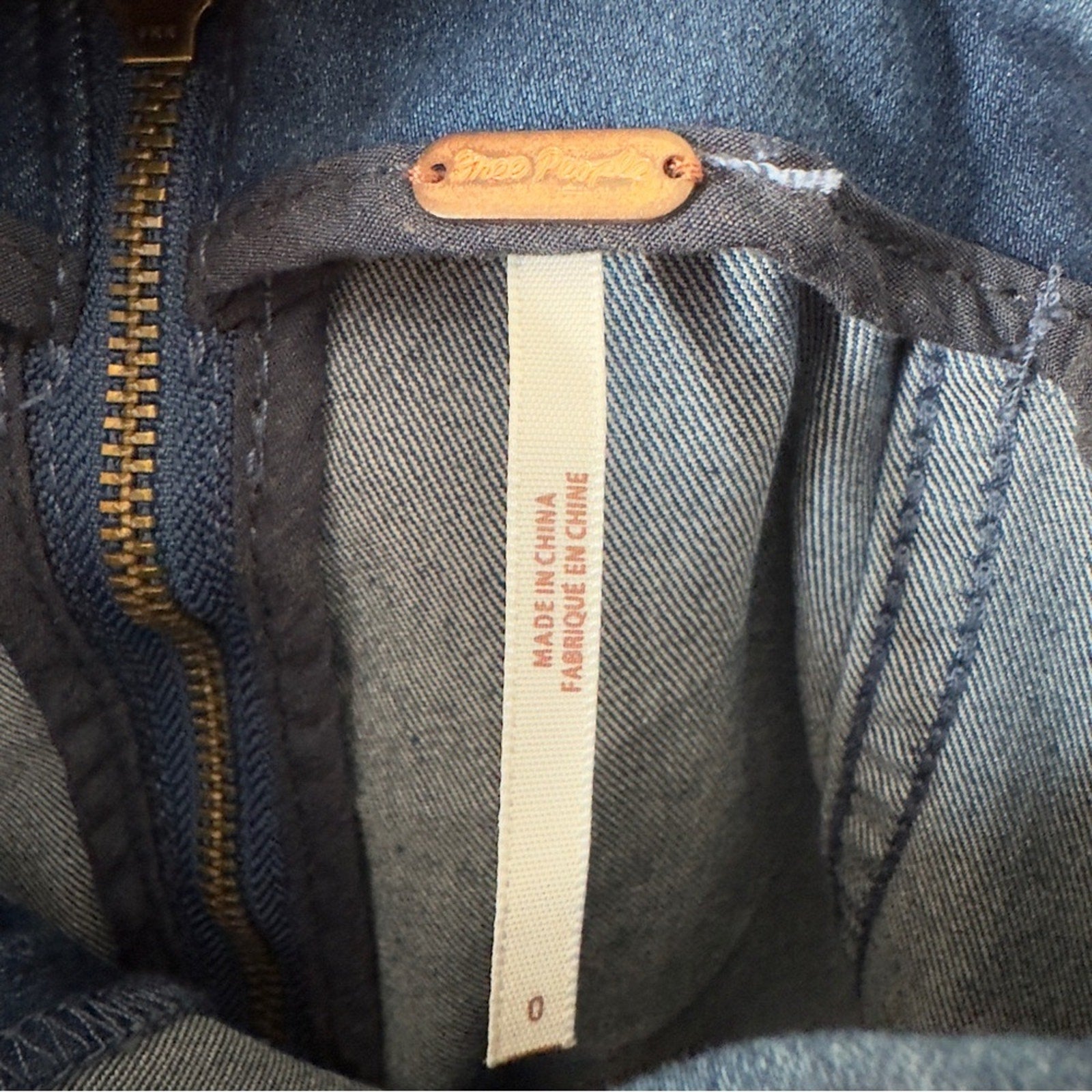 Free People Modern Femme Blue Denim Mini Skirt Dark Wash Zip Up Zipper Back Jean