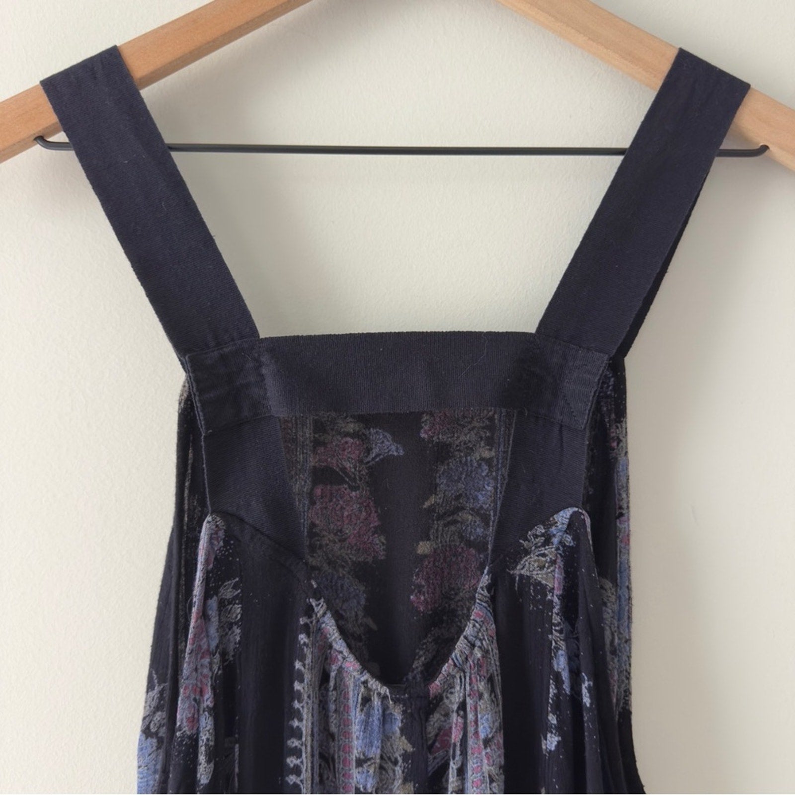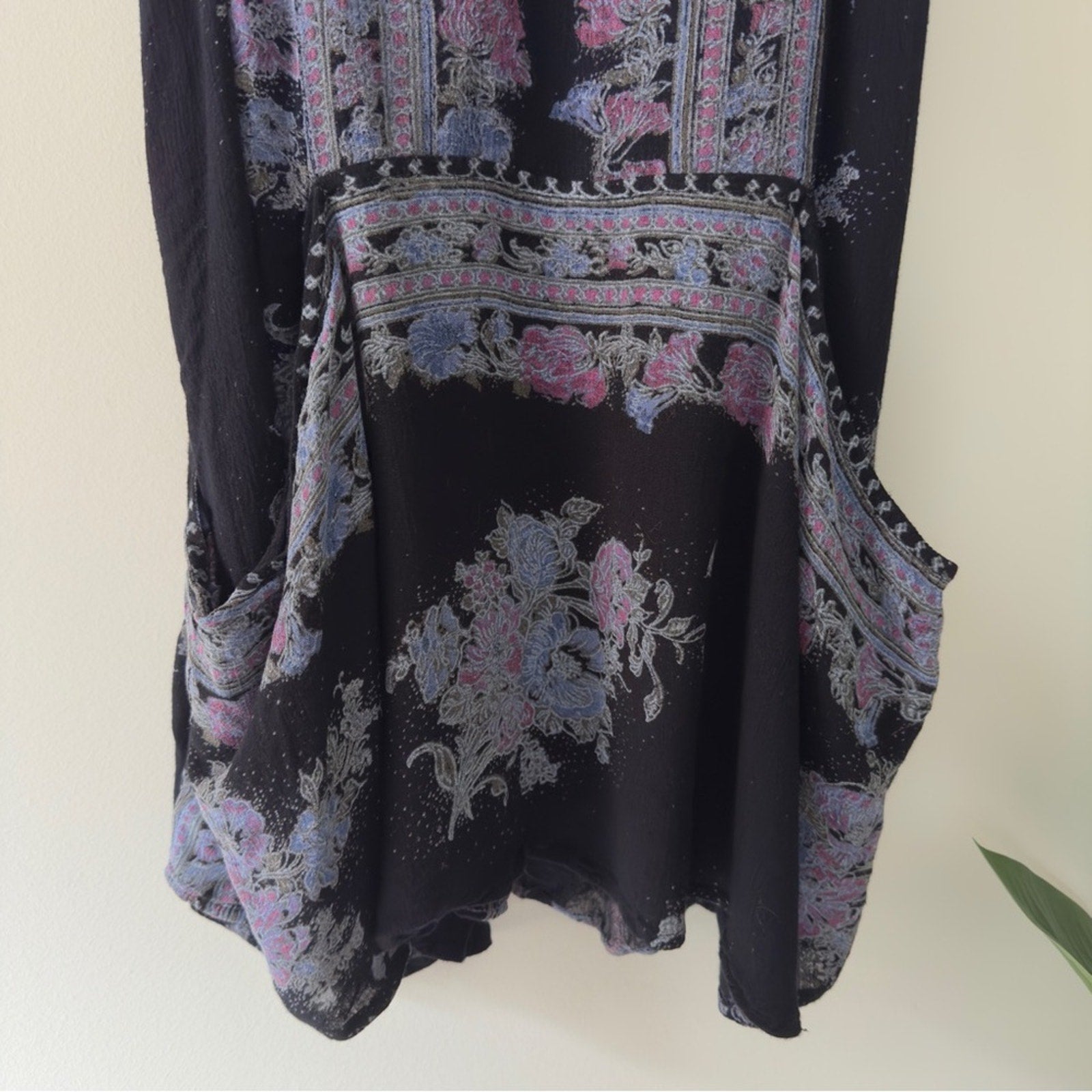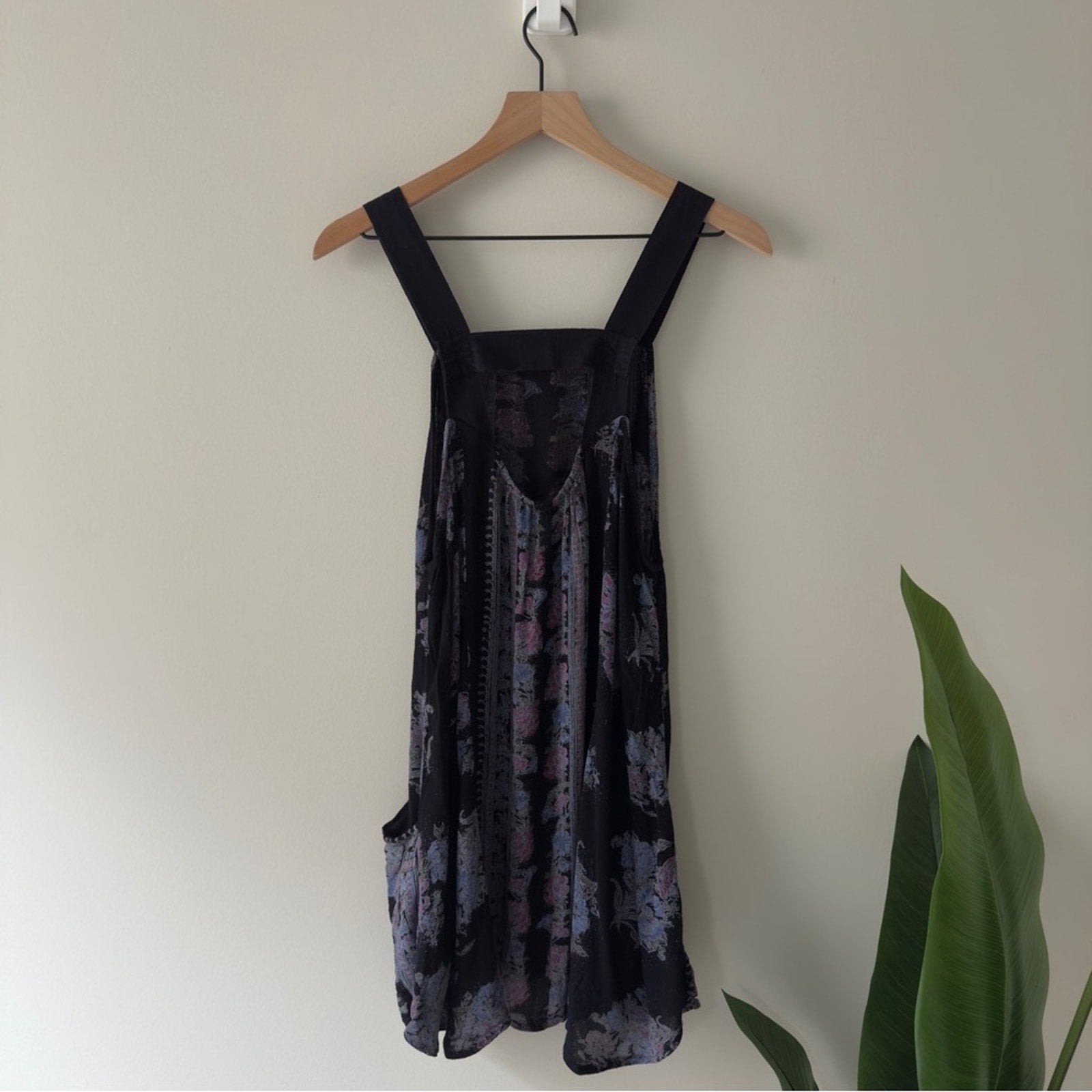 Free People Paradise Song Dress Black Floral Sleeveless mini pockets bohemian S