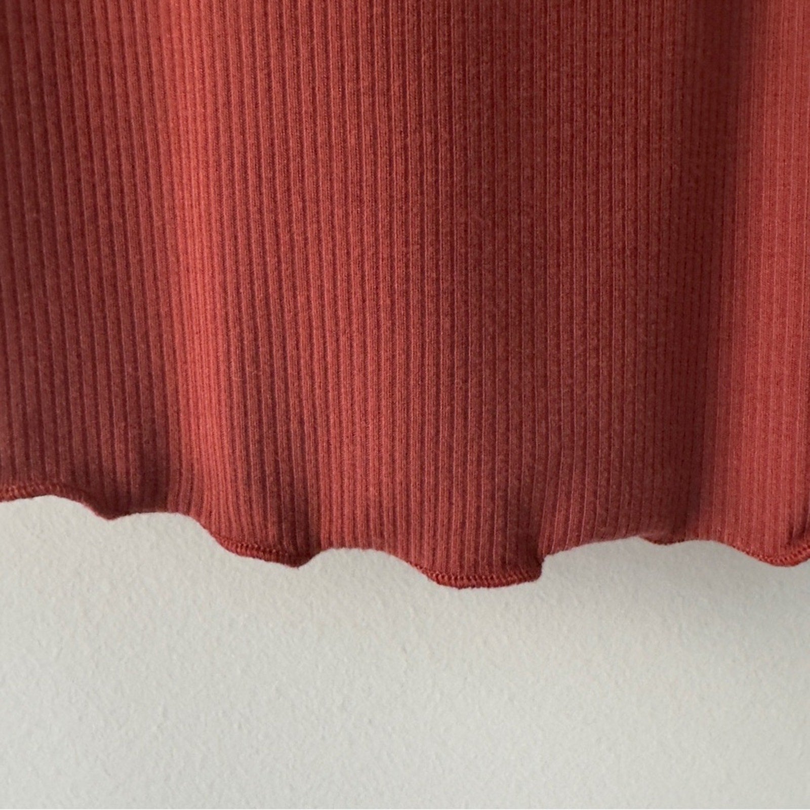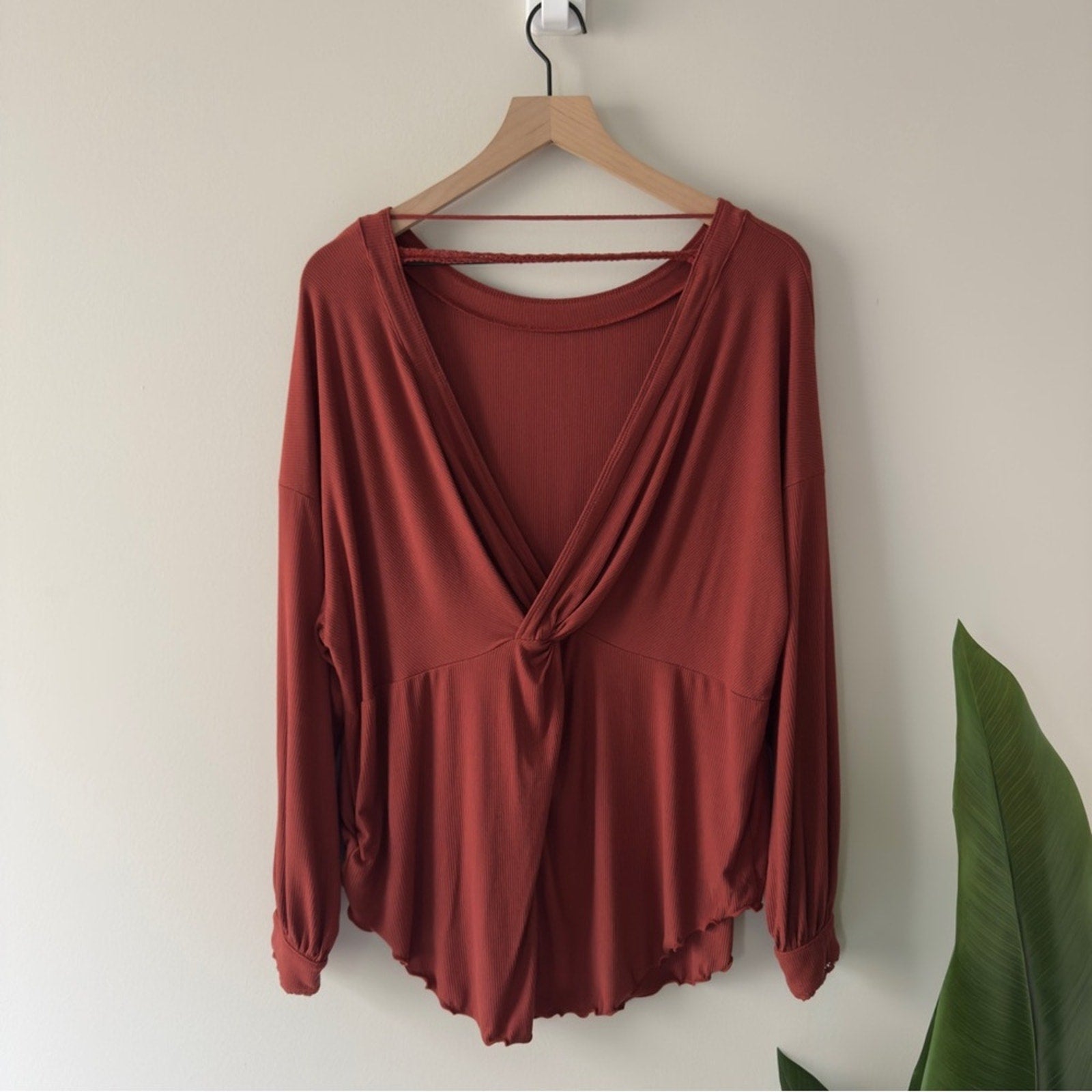 Free People Shimmy Shake Top Oversized Rust Long Sleeve Blouse scalloped hem EUC