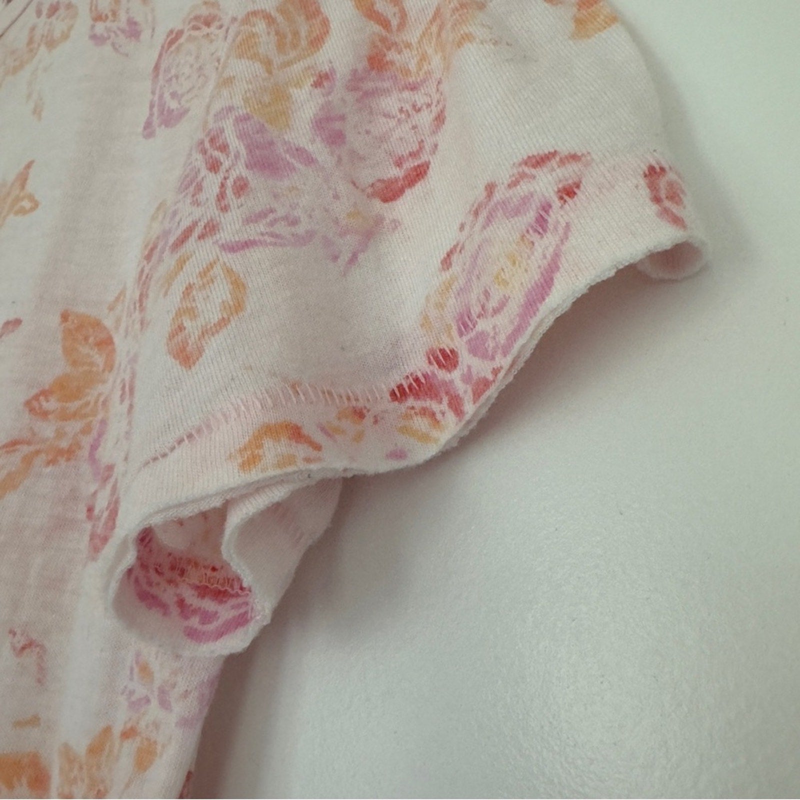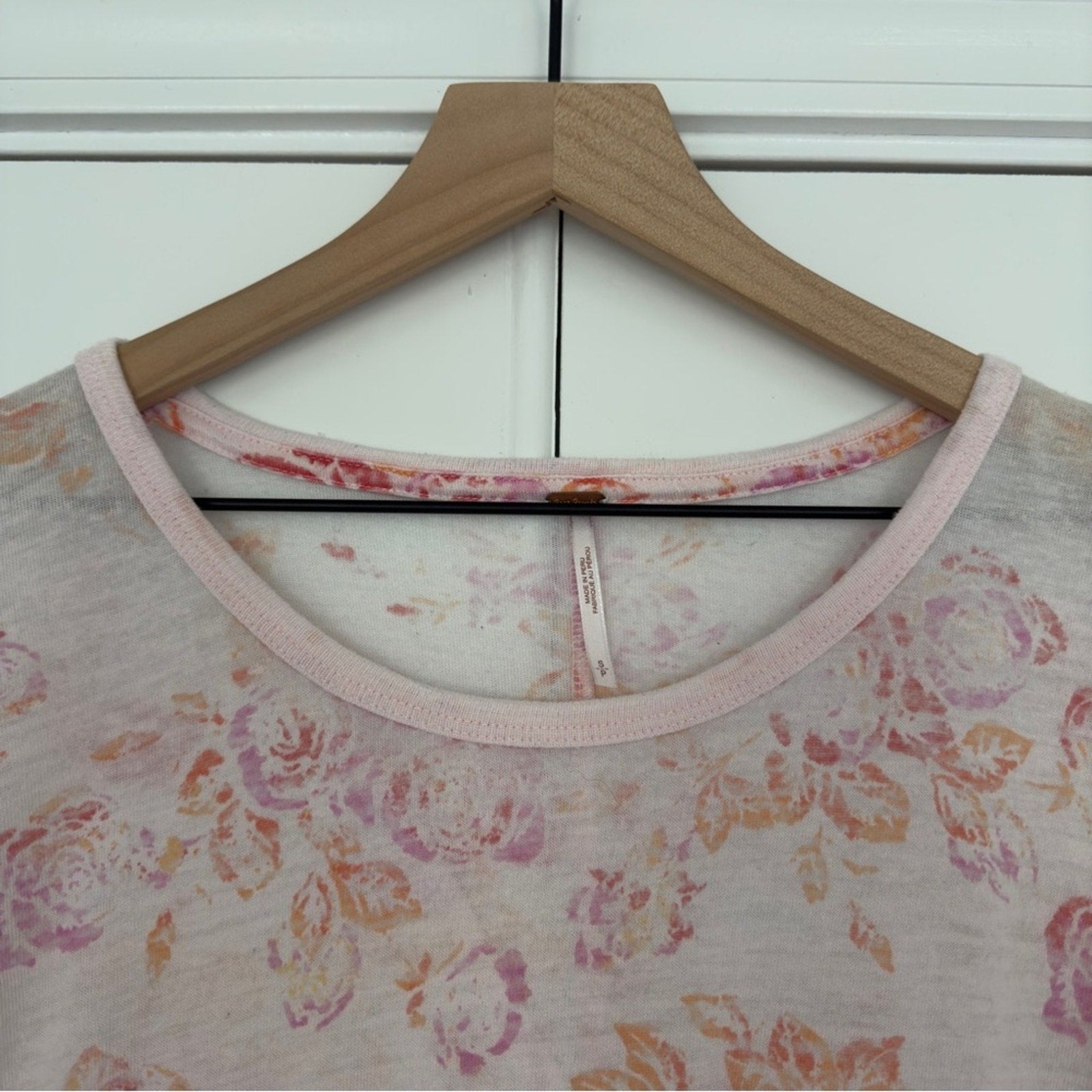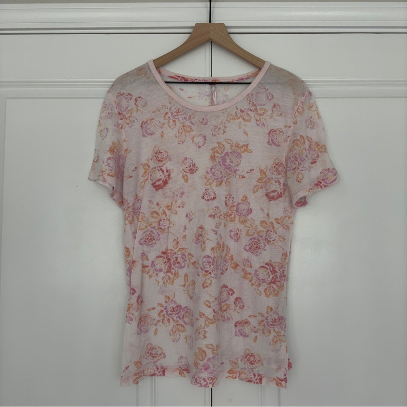 Free People Tourist Tee Floral Short Sleeve T-Shirt Top Crew Neck Slit Hem Light