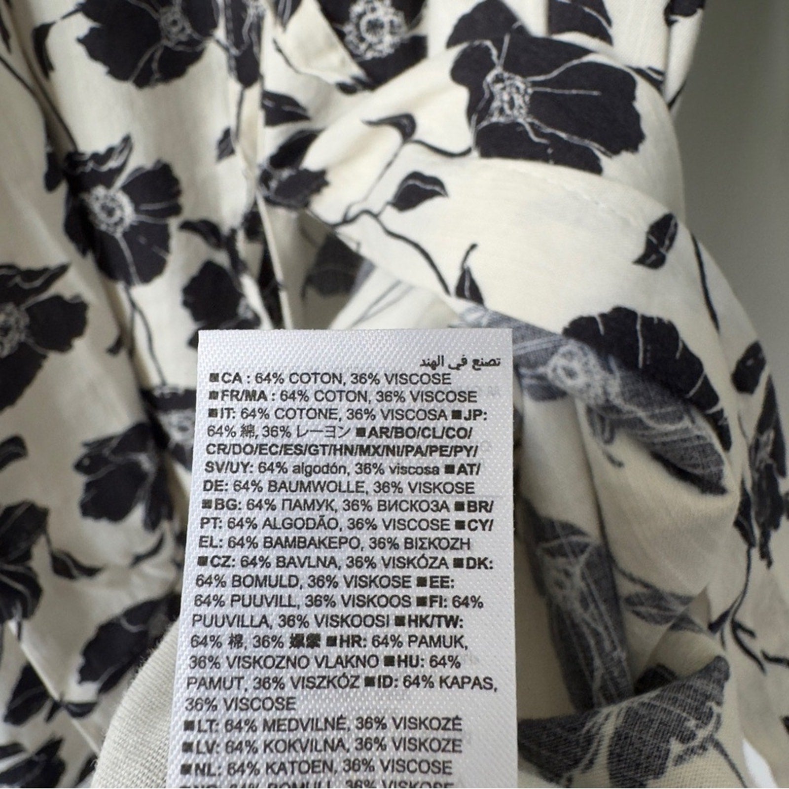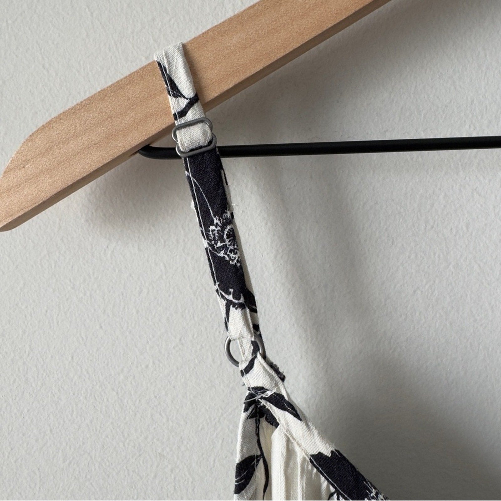 GAP Tie-Waist Scoopneck Midi Dress in White Black Floral Button Down Front M NWT