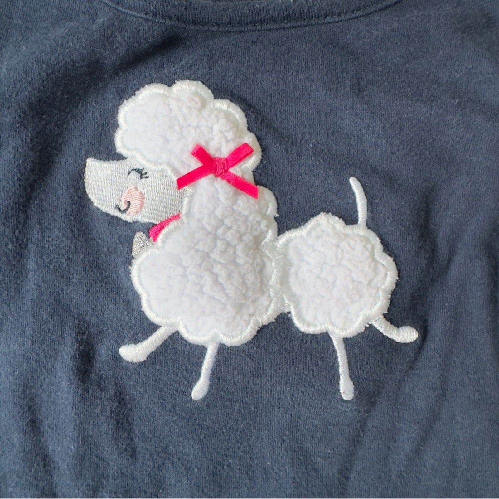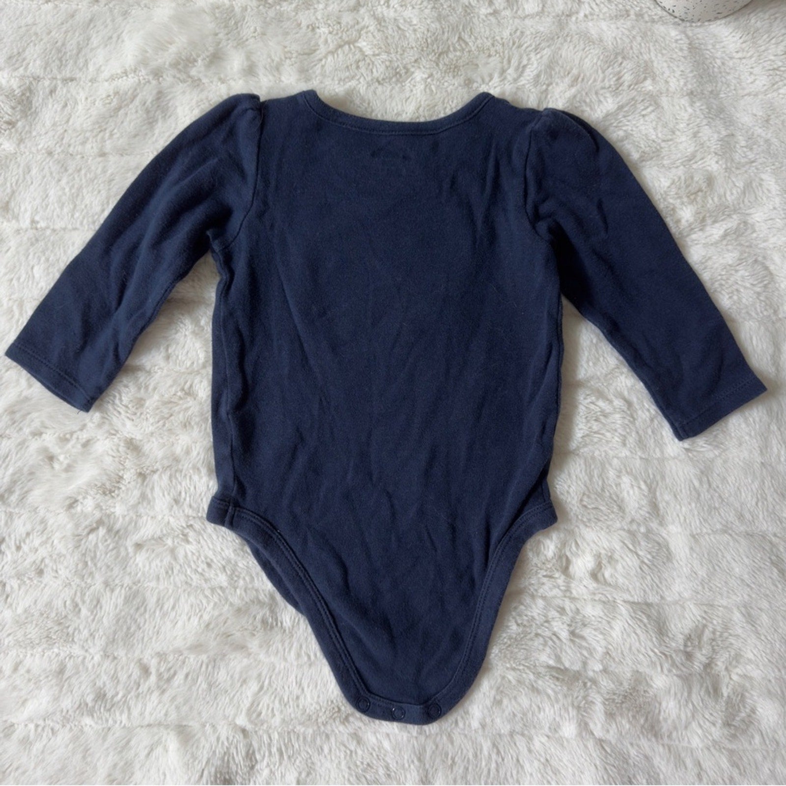Cute bodysuits with playful designs. Includes navy with poodle, purple stripes, and mustard with bunny.
