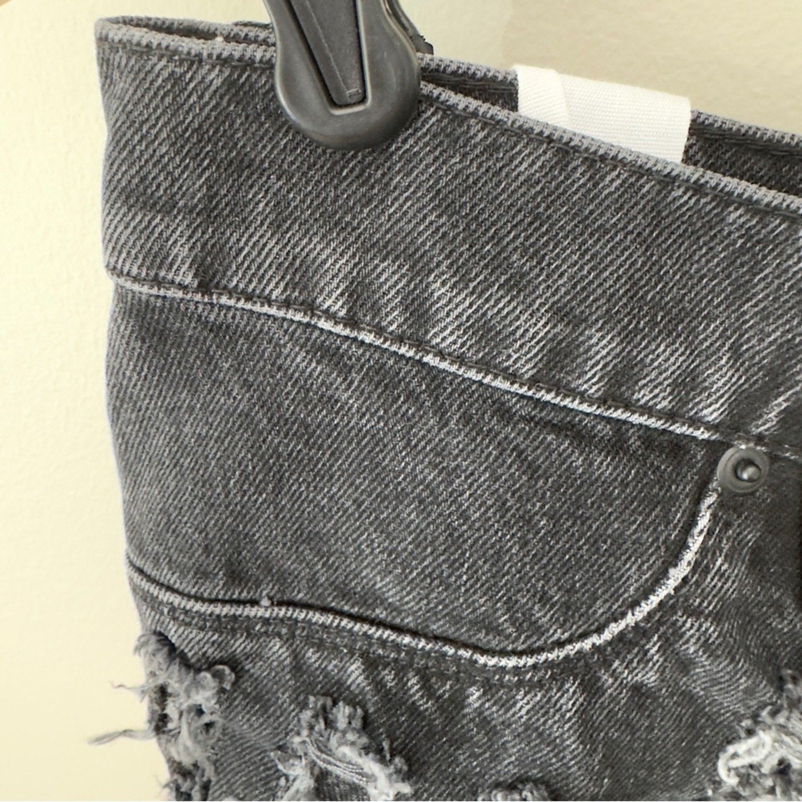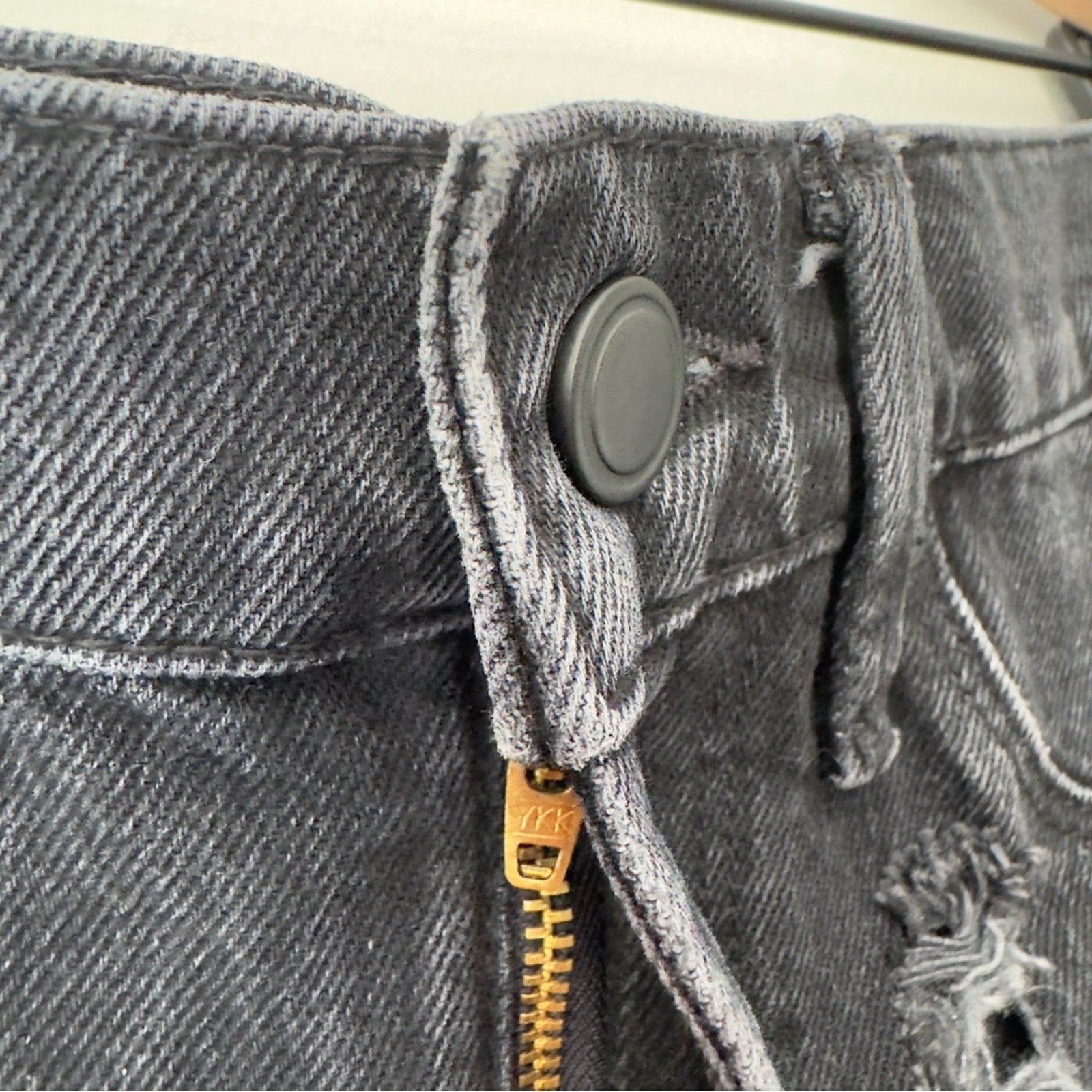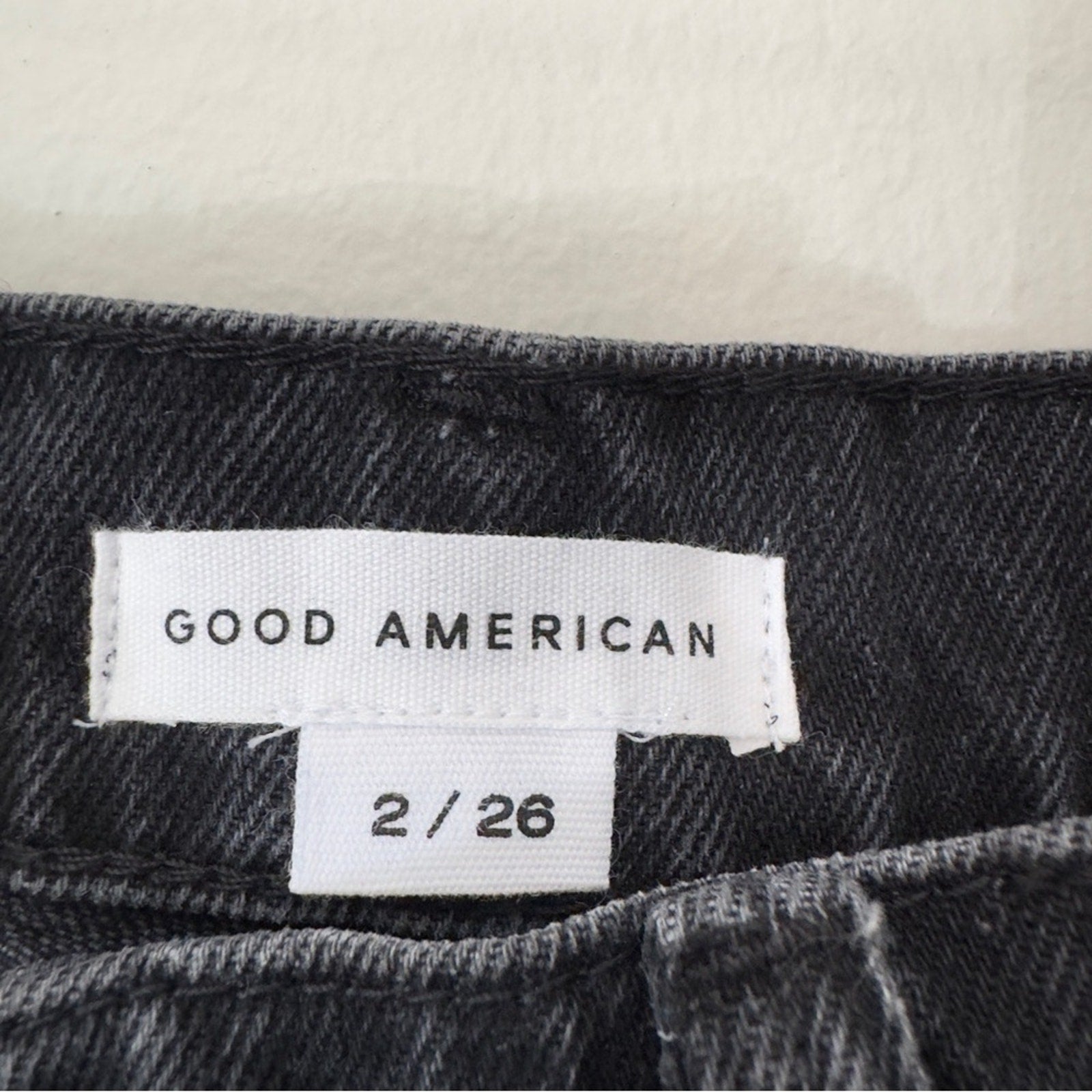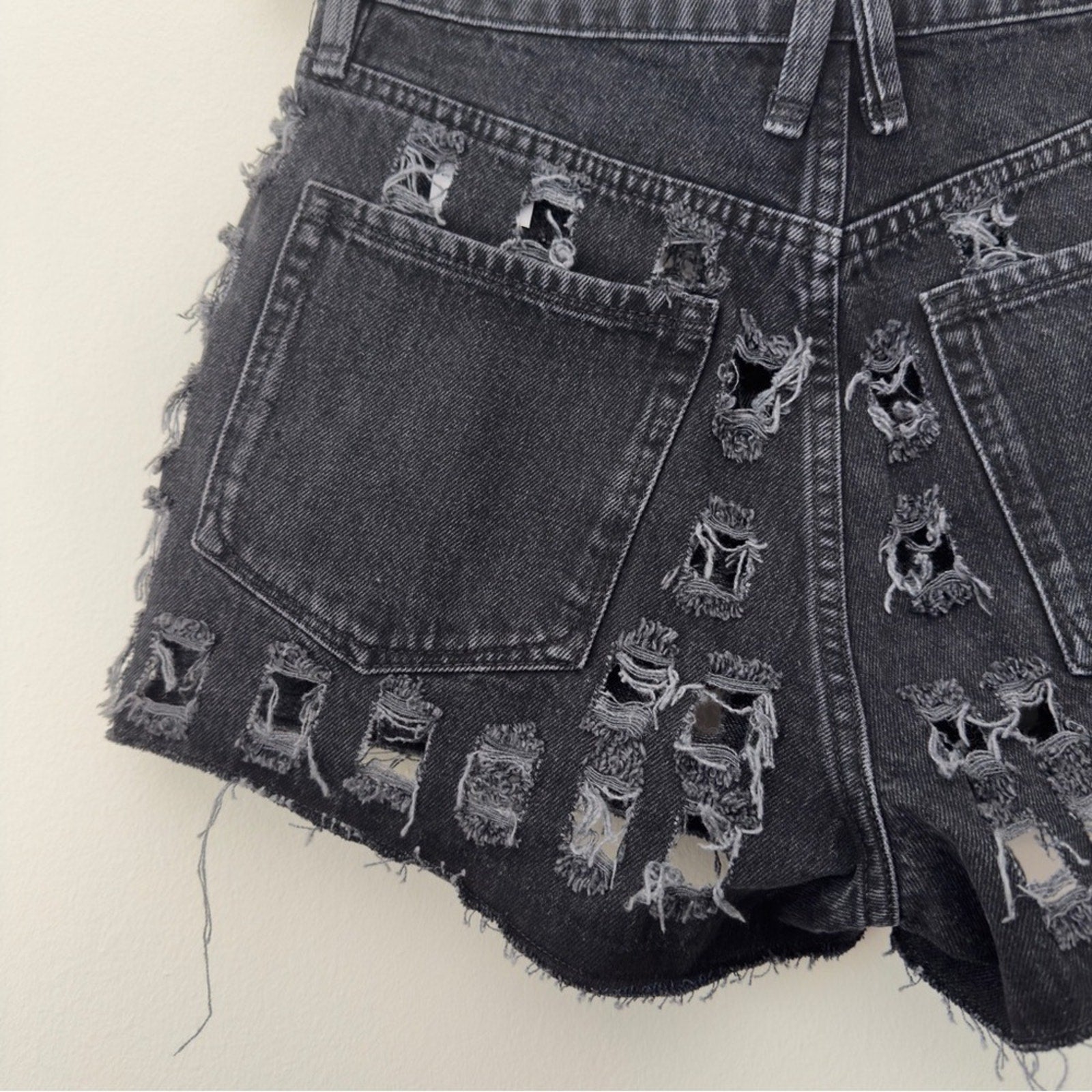 Good American Distressed Cut Off Jean Shorts Cutout Recycled Cotton Pockets Zip