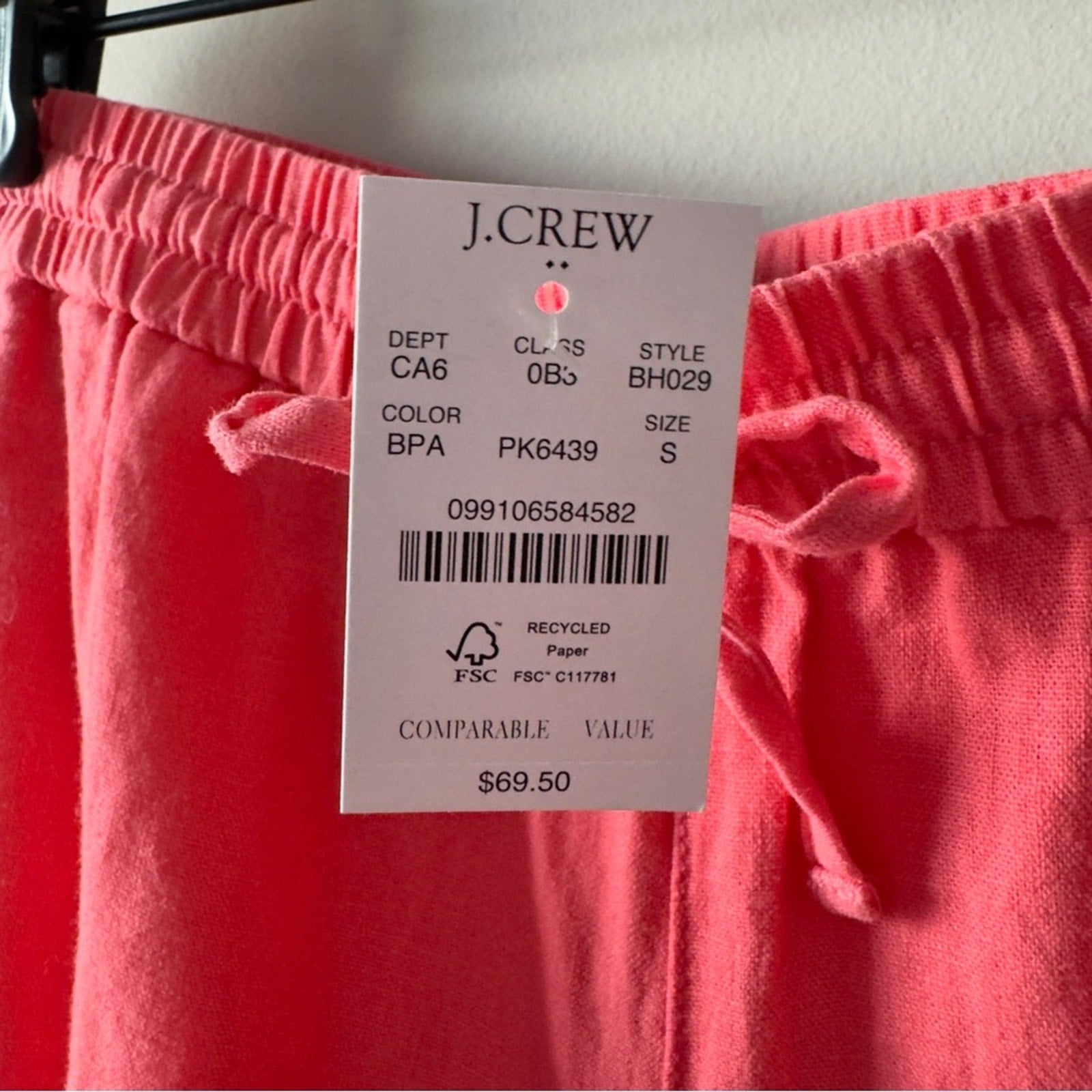J. Crew Pink White Floral Embroidered Shorts Scalloped Hem Pull On Drawstring S